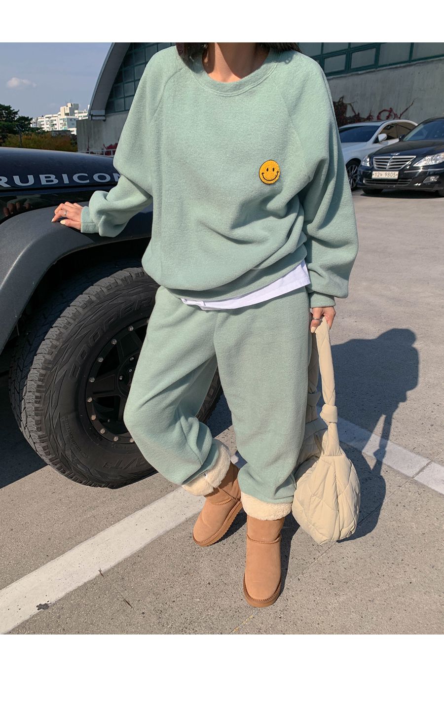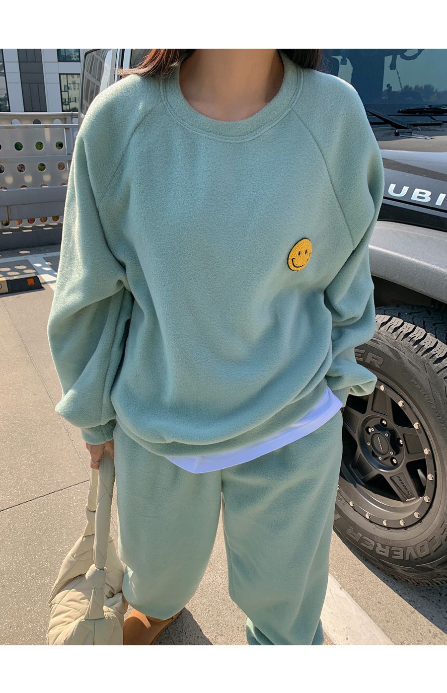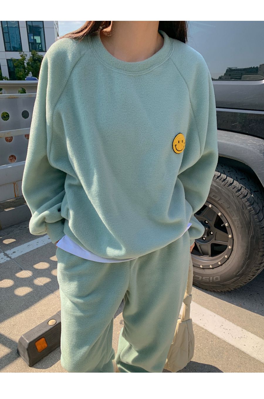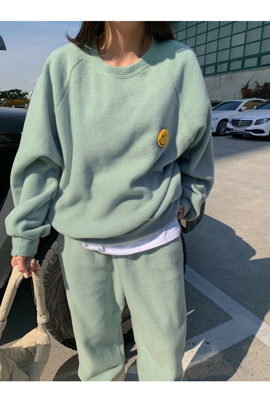 ★限時24H優惠★【C55709】韓國LLN 笑臉印花套裝-毛呢長版長袖上衣+好氣色束口長褲