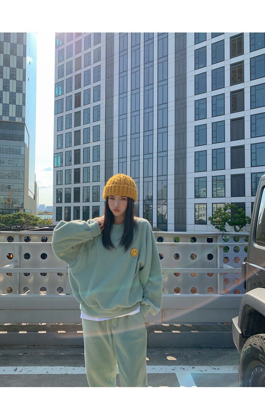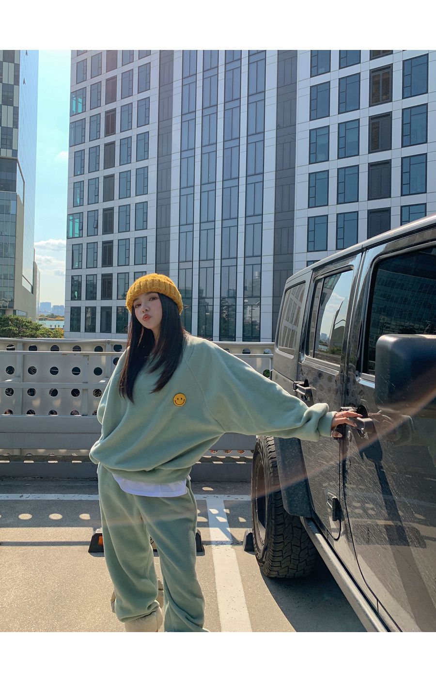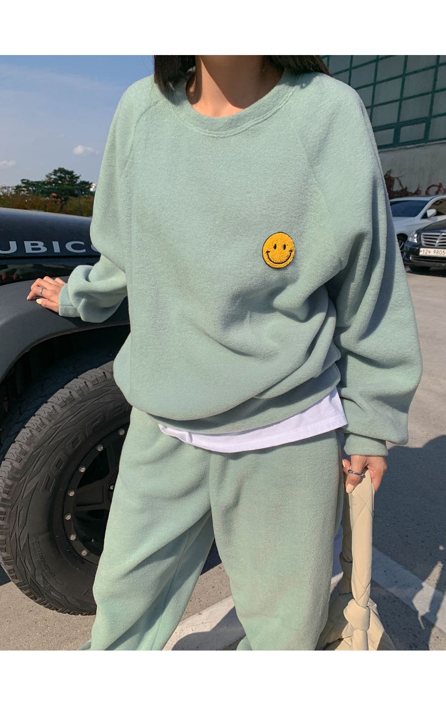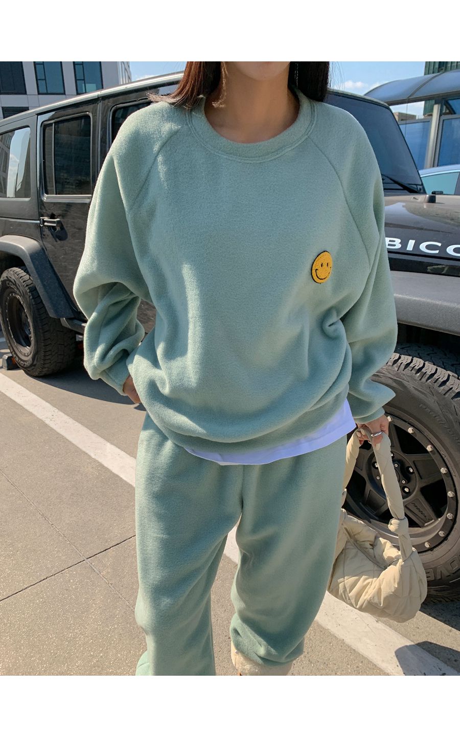 ★限時24H優惠★【C55709】韓國LLN 笑臉印花套裝-毛呢長版長袖上衣+好氣色束口長褲