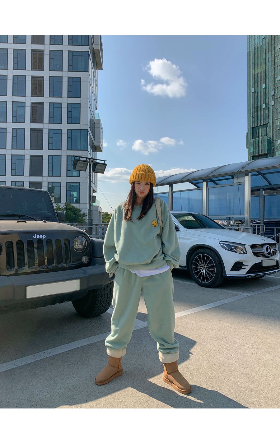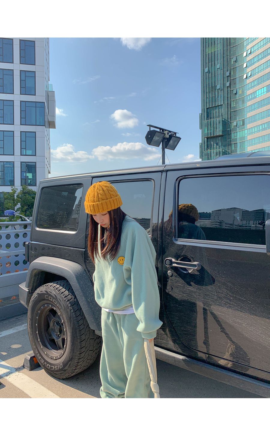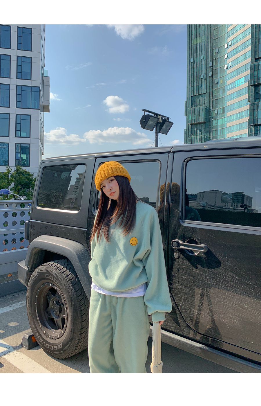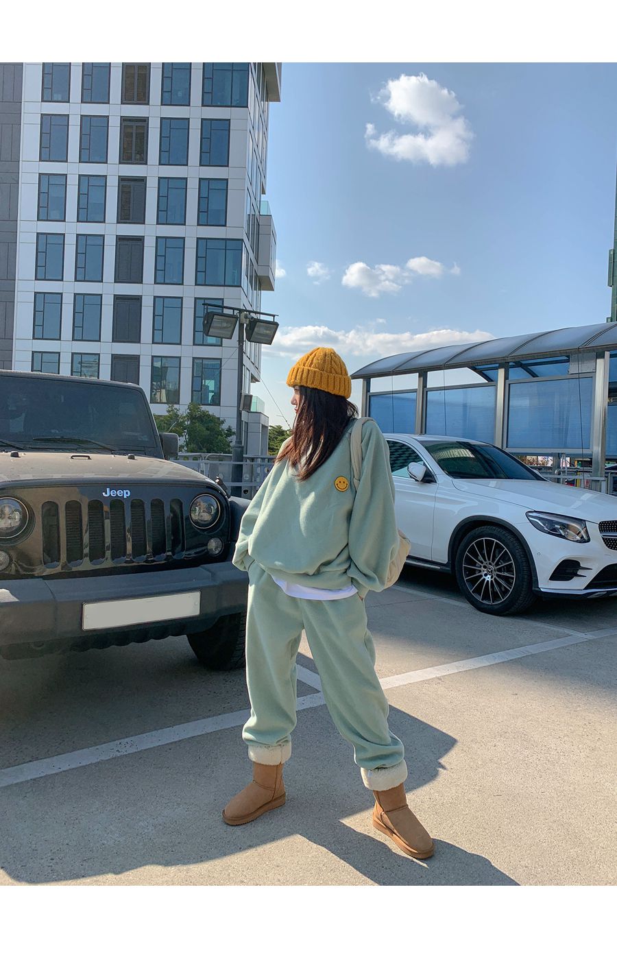 ★限時24H優惠★【C55709】韓國LLN 笑臉印花套裝-毛呢長版長袖上衣+好氣色束口長褲