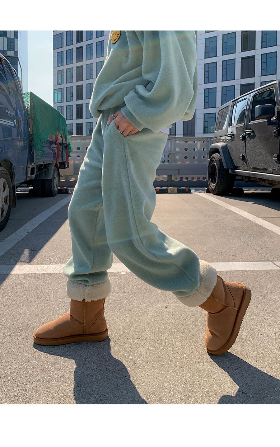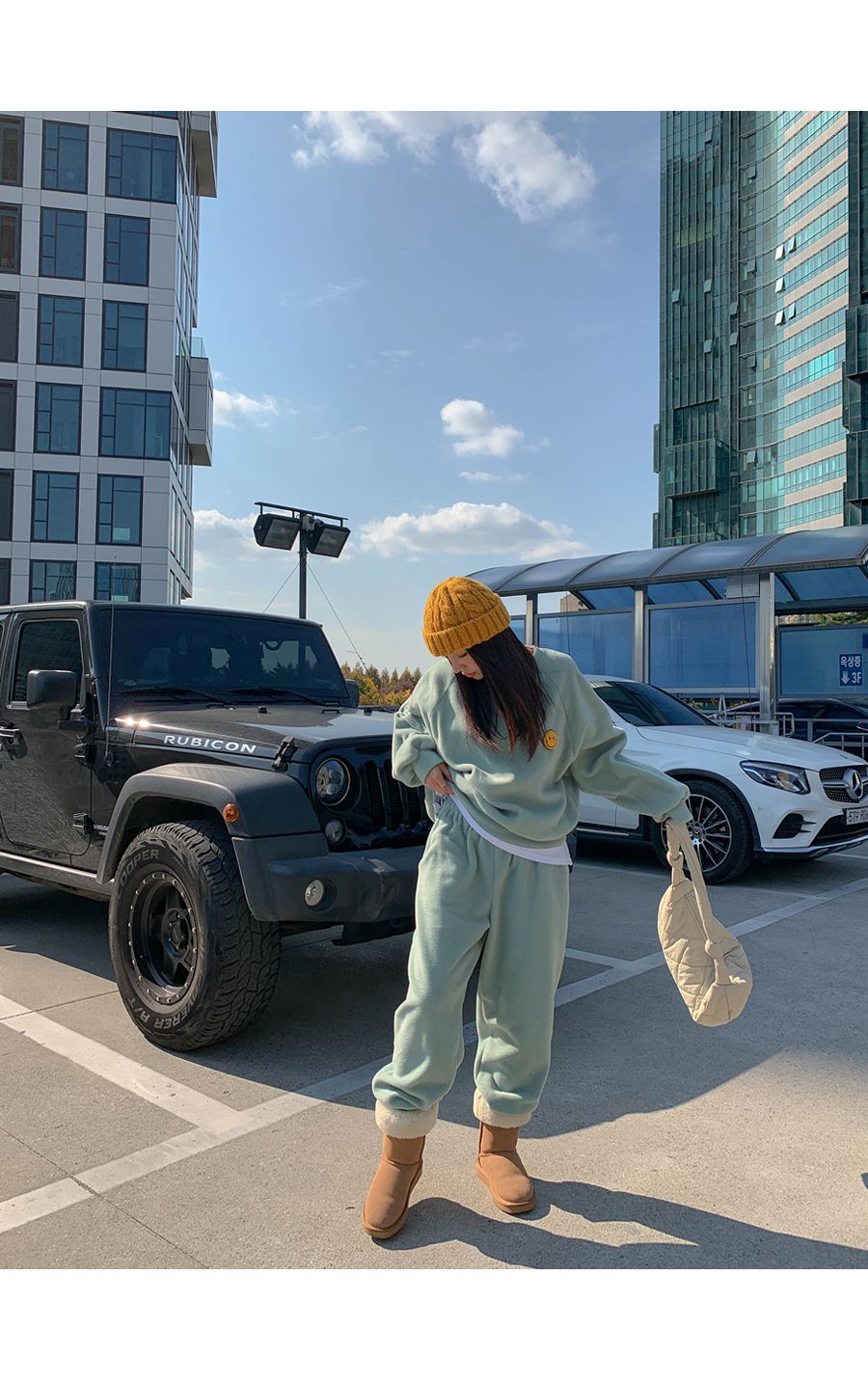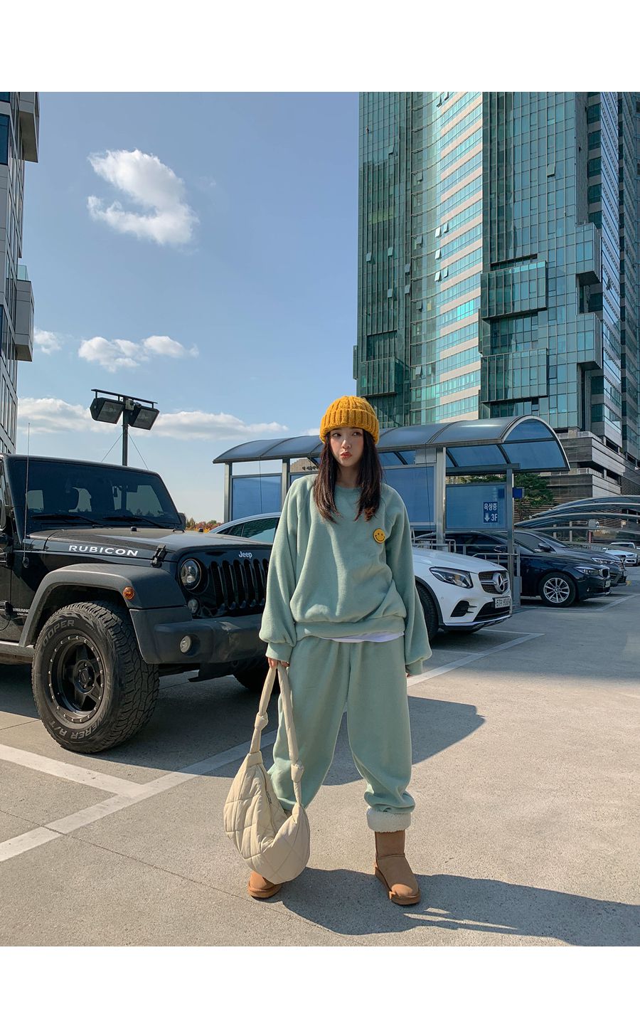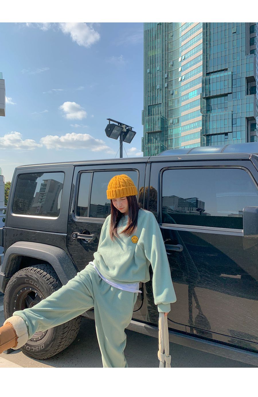 ★限時24H優惠★【C55709】韓國LLN 笑臉印花套裝-毛呢長版長袖上衣+好氣色束口長褲