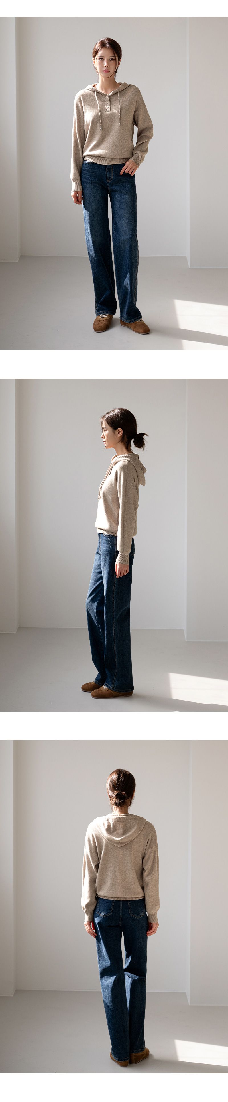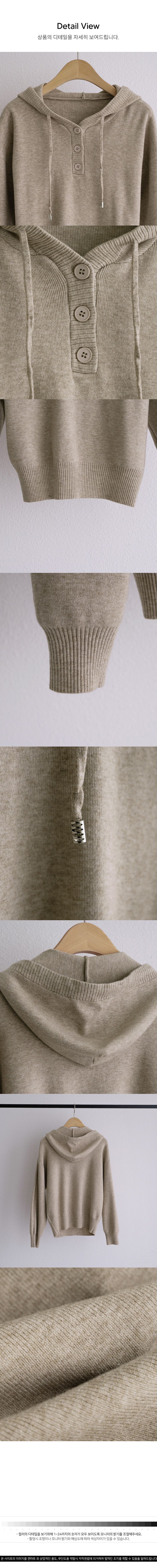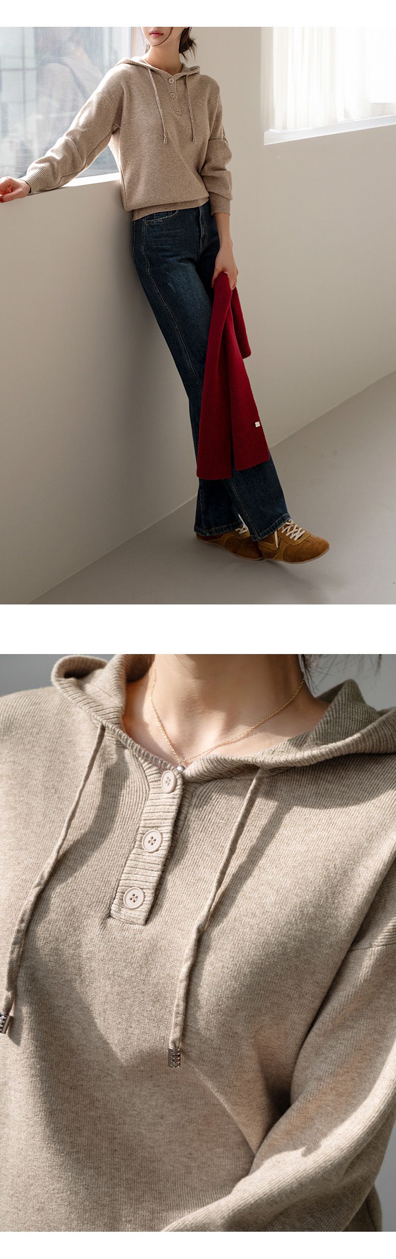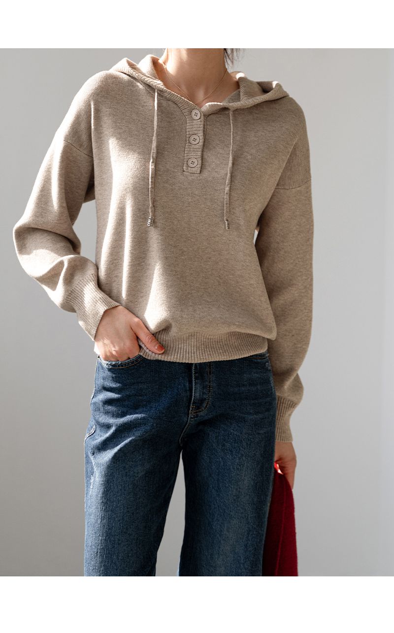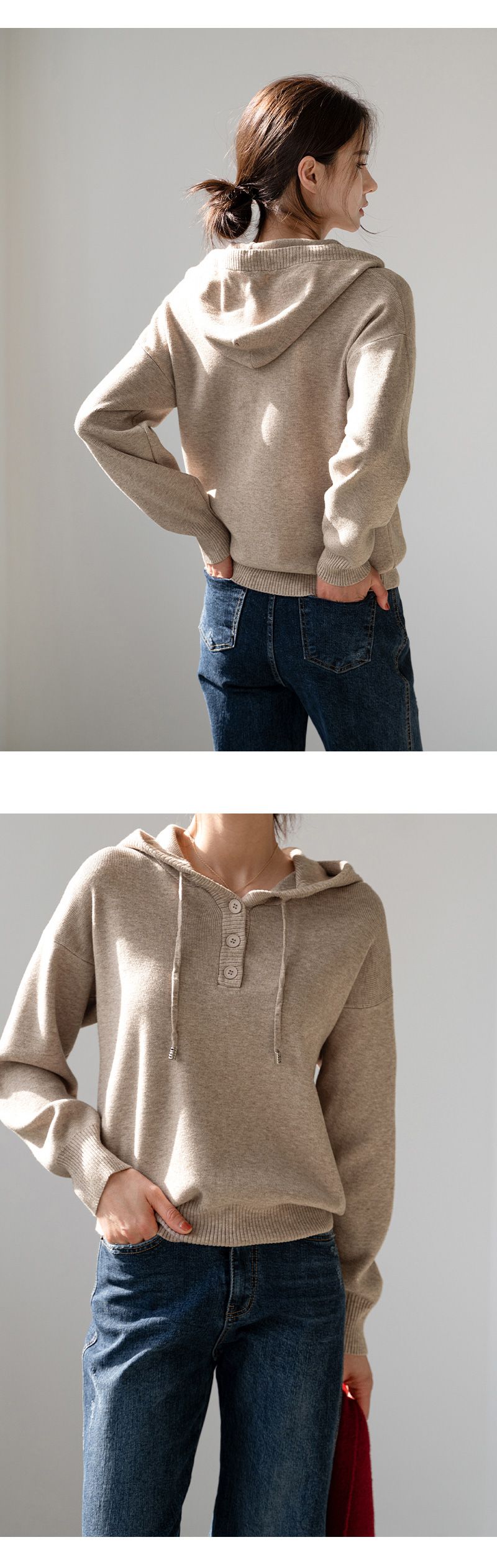 ★限時24H優惠★【C55713】韓國CAN 抽繩連帽針織衫-半開襟排釦領素面落肩長袖上衣