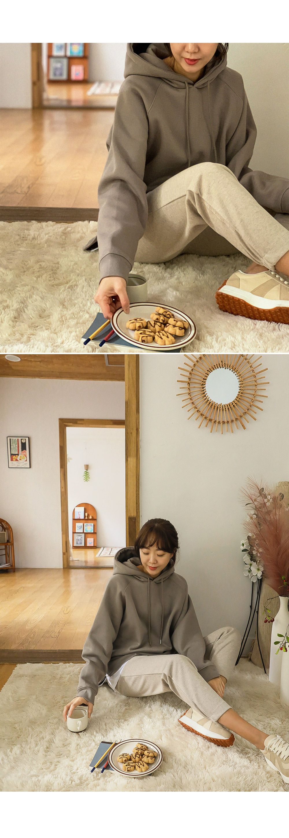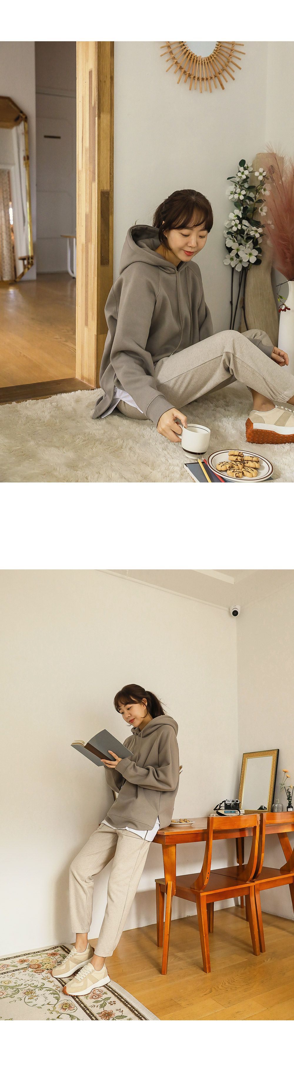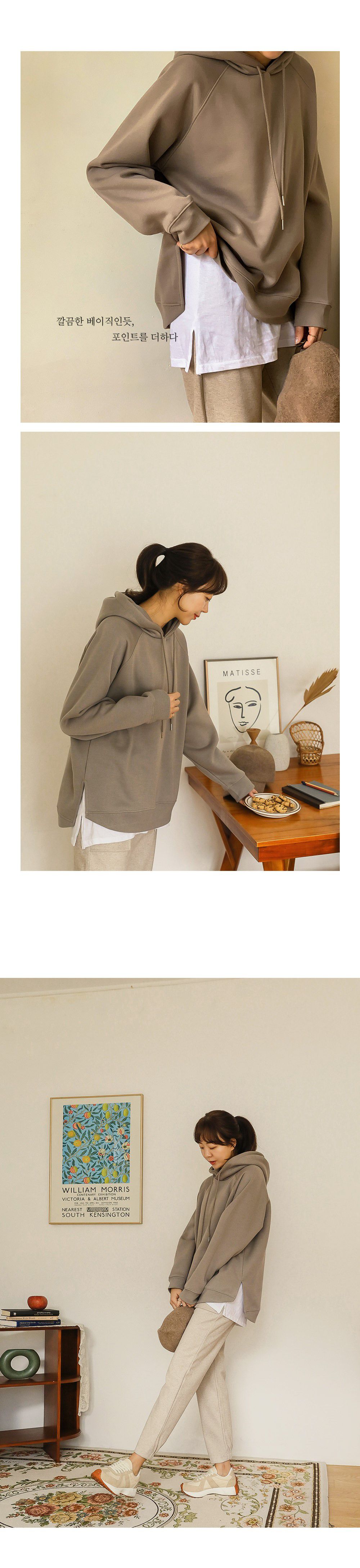 【C55726】韓國PUR 內刷毛帽T-寬鬆長版連肩袖素面抽繩連帽長袖上衣