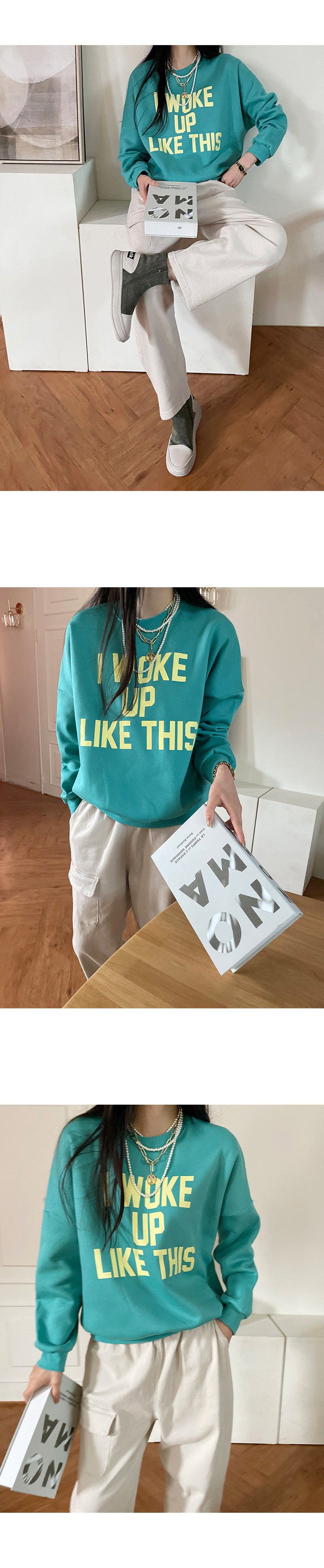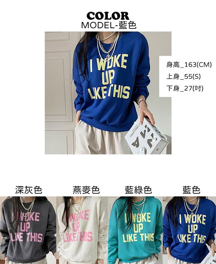 保暖內刷毛/圓領/好氣色/寬鬆版型/膠印字母/方塊字母/跳色字母 - 撞色字母大學T寬鬆大尺碼上衣內刷毛上衣長袖上衣深灰色燕麥色藍綠色藍色
