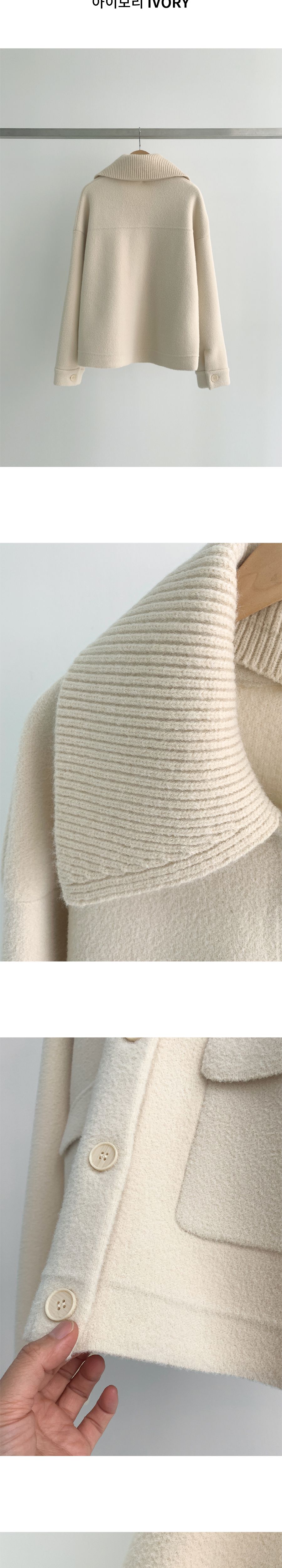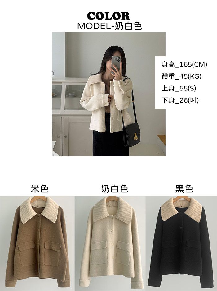 【C55736】韓國PUR 針織翻領外套-開襟排釦素面口袋可拆領圍長袖夾克