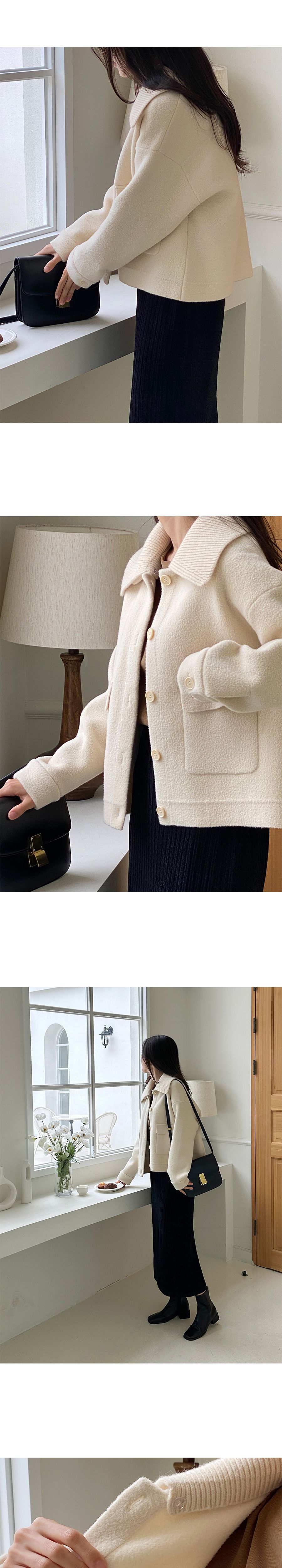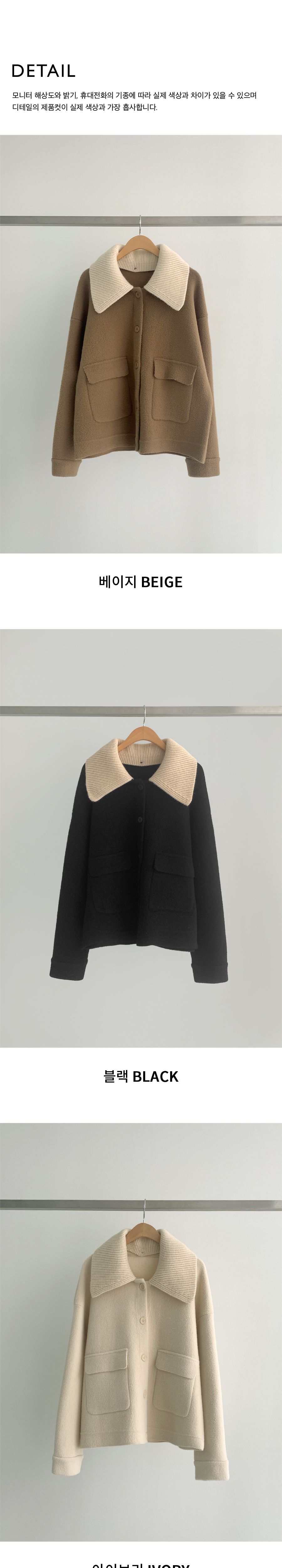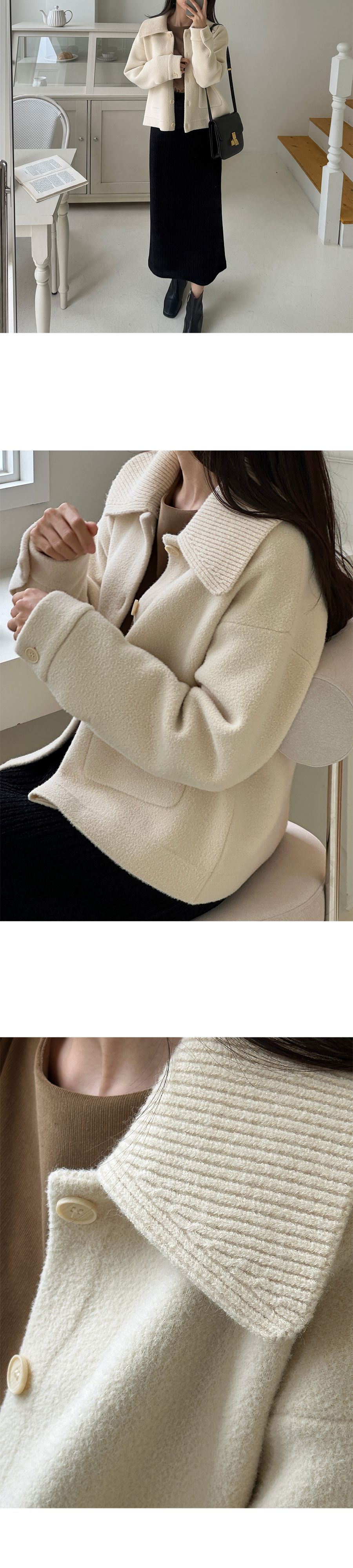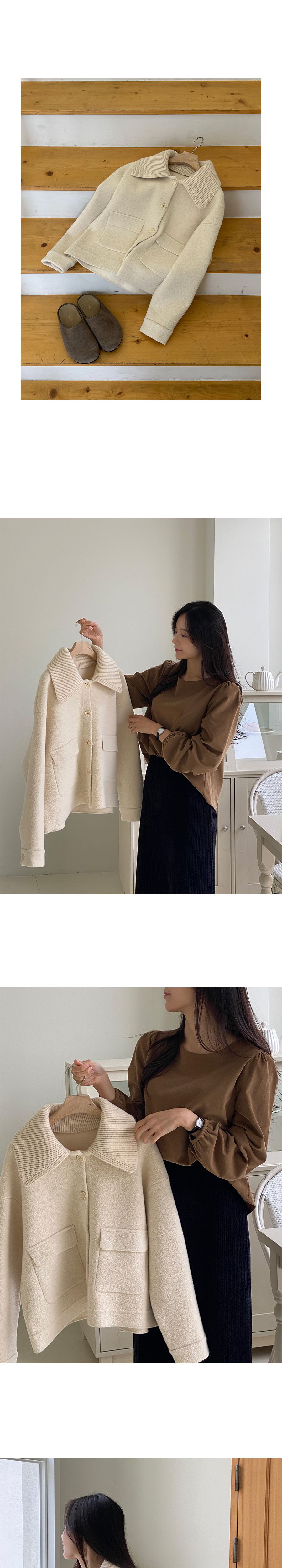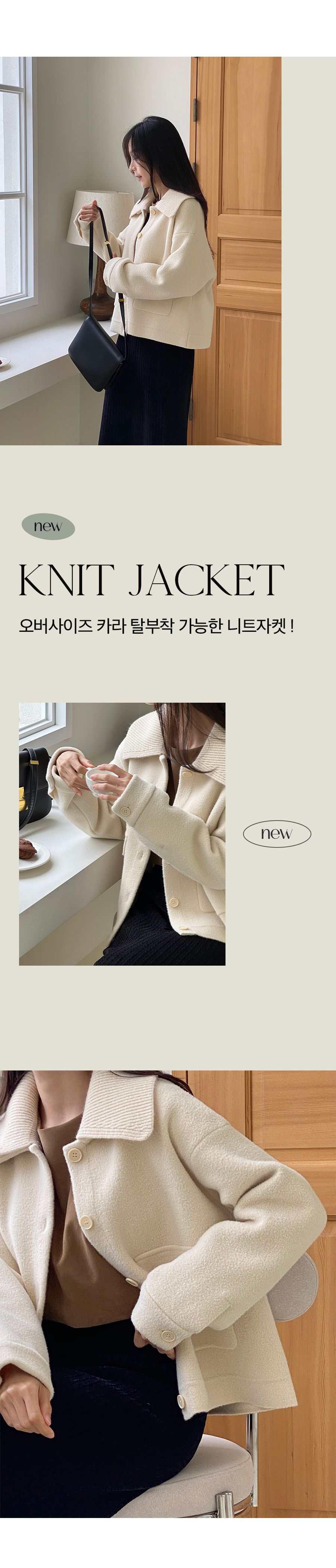 可拆領圍自行調整造型超加分/實用大口袋隨時可放小東西/獨特設計不撞衫-休閒居家簡約百搭針織夾克翻領開襟排釦素面口袋落肩可拆領圍長袖外套米色奶白色黑色