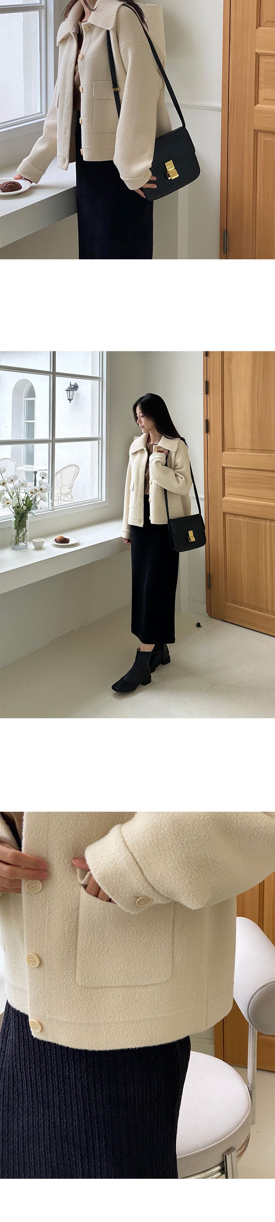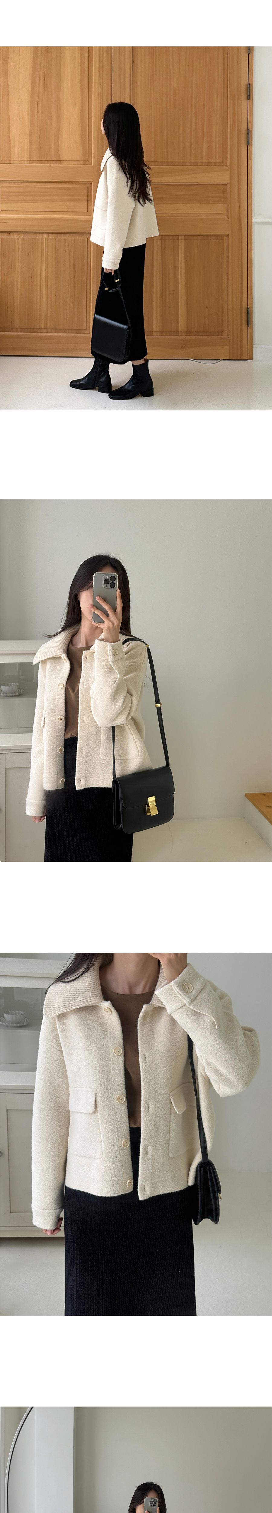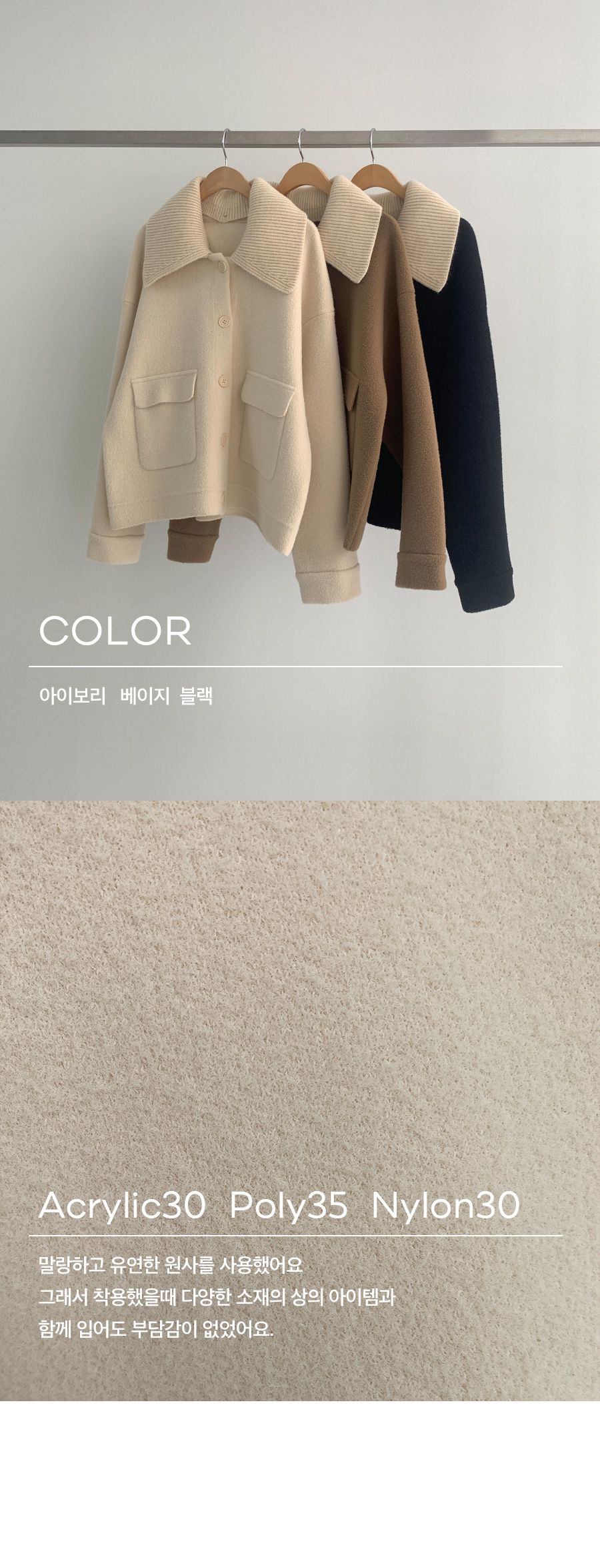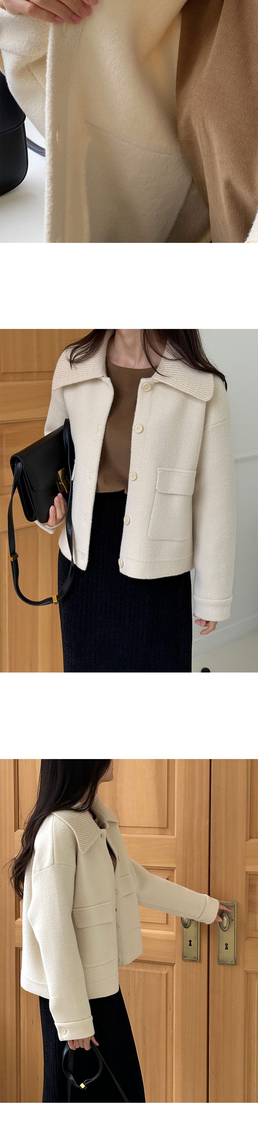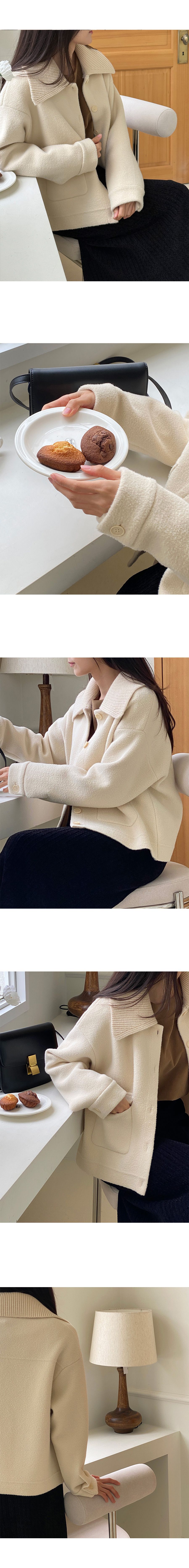 可拆領圍自行調整造型超加分/實用大口袋隨時可放小東西/獨特設計不撞衫-休閒居家簡約百搭針織夾克翻領開襟排釦素面口袋落肩可拆領圍長袖外套米色奶白色黑色