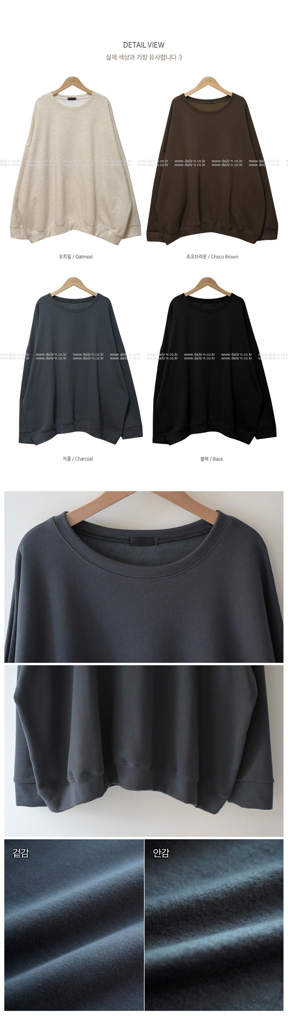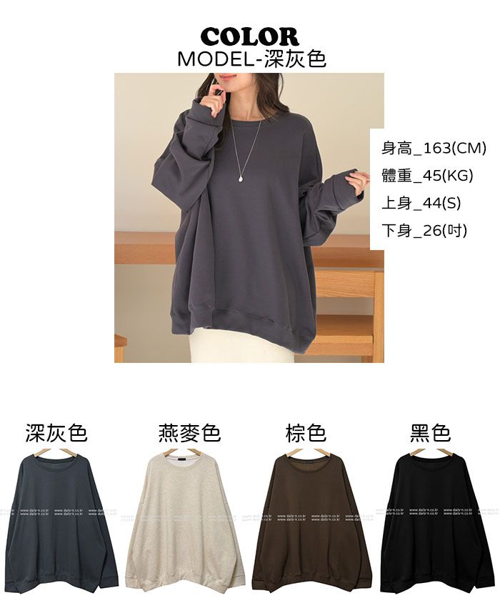 【C55738】韓國DLY 素面內絨毛上衣-寬鬆長版圓領飛鼠袖長袖大學T