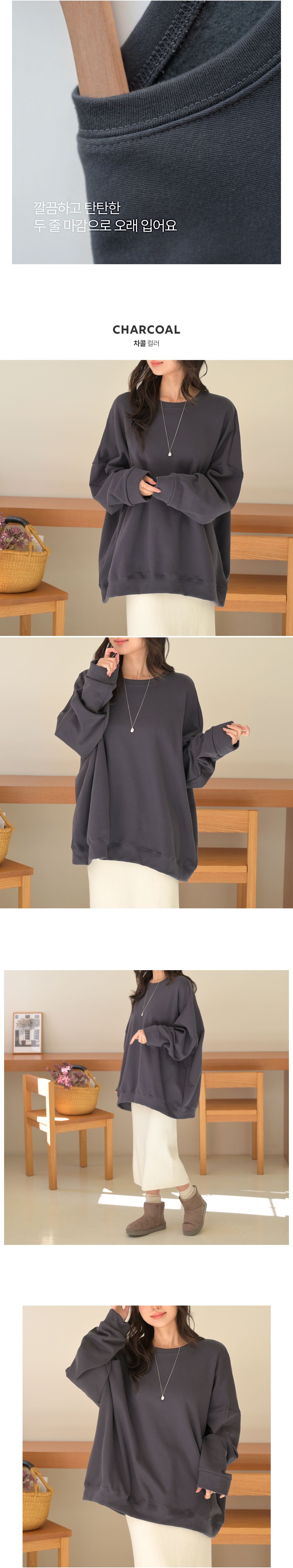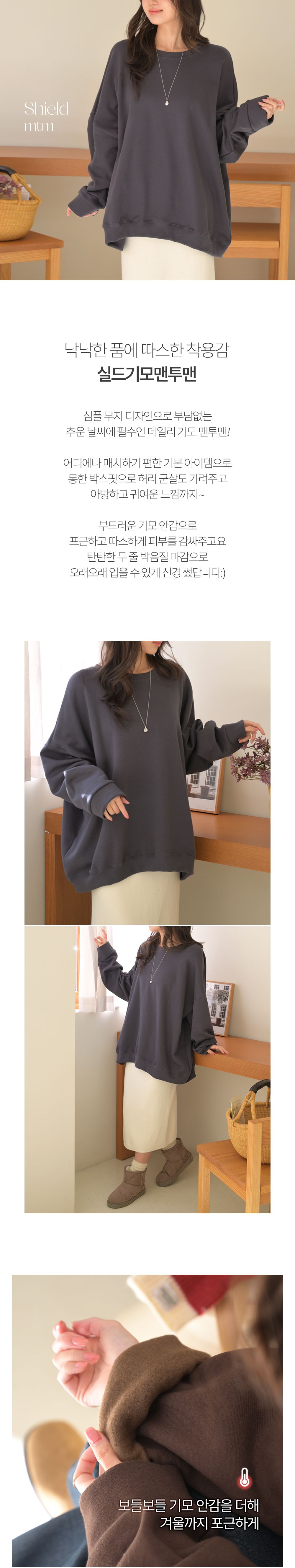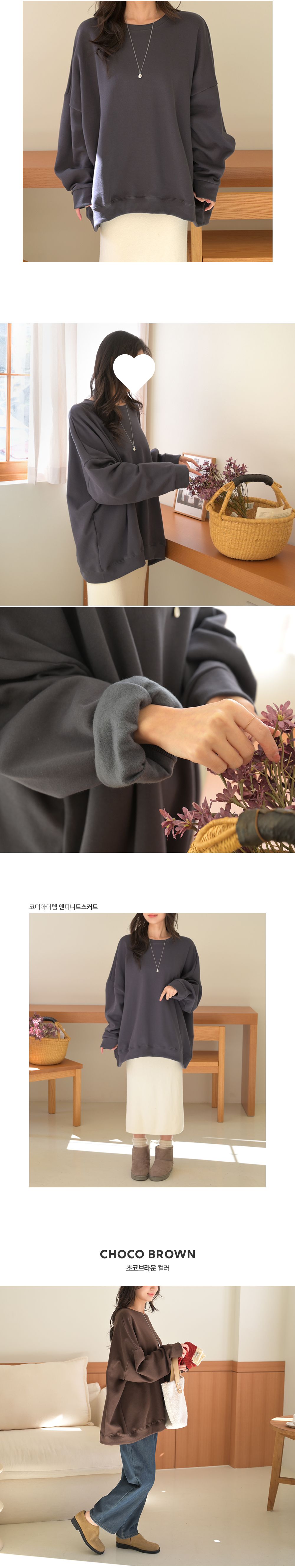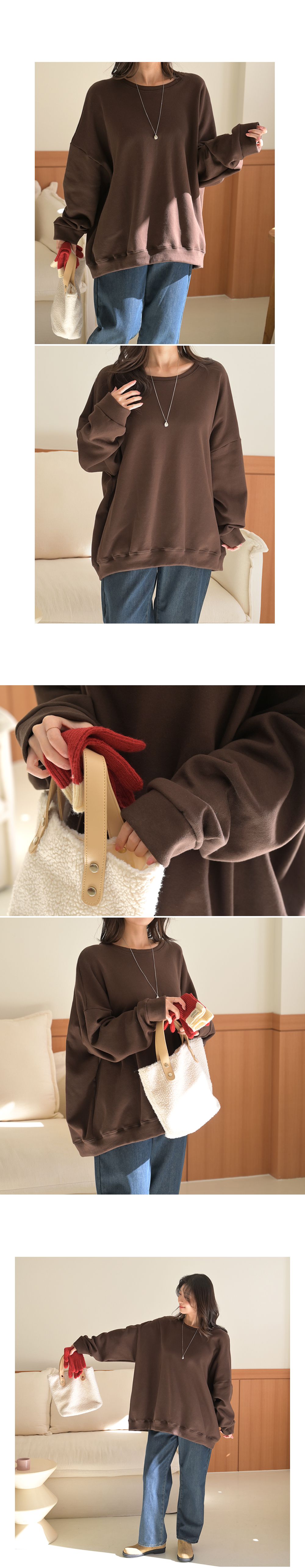 內絨毛保暖又舒適/大尺寸無身形限制/長版遮住肉肉臀部-休閒居家簡約百搭素面內絨毛寬鬆長版圓領飛鼠袖長袖大學T上衣深灰色燕麥色棕色黑色
