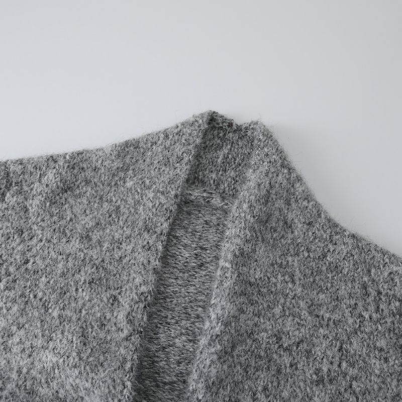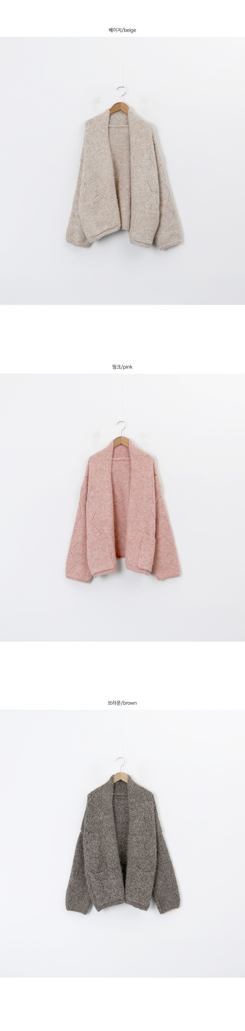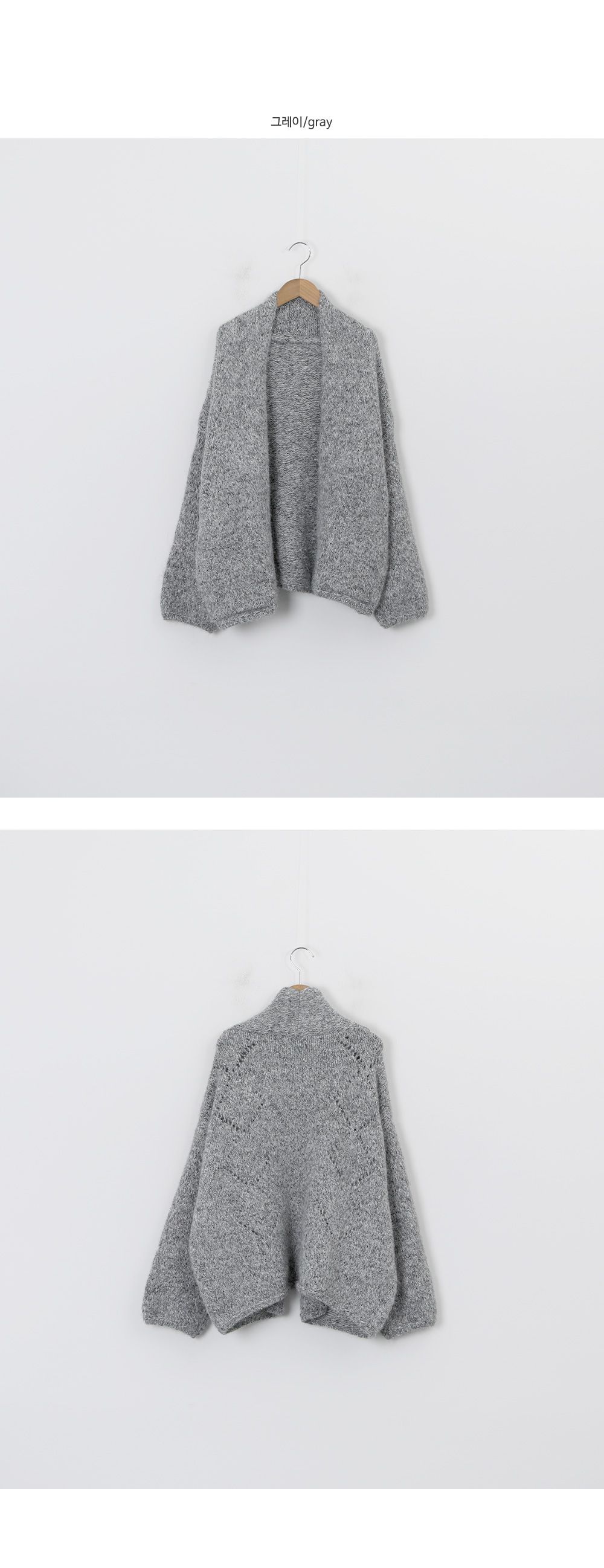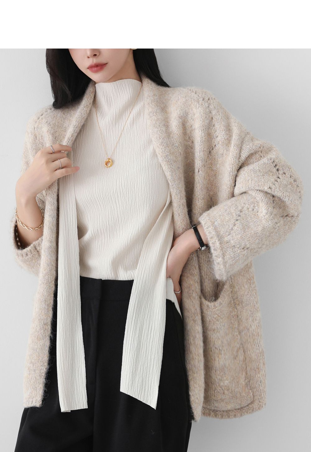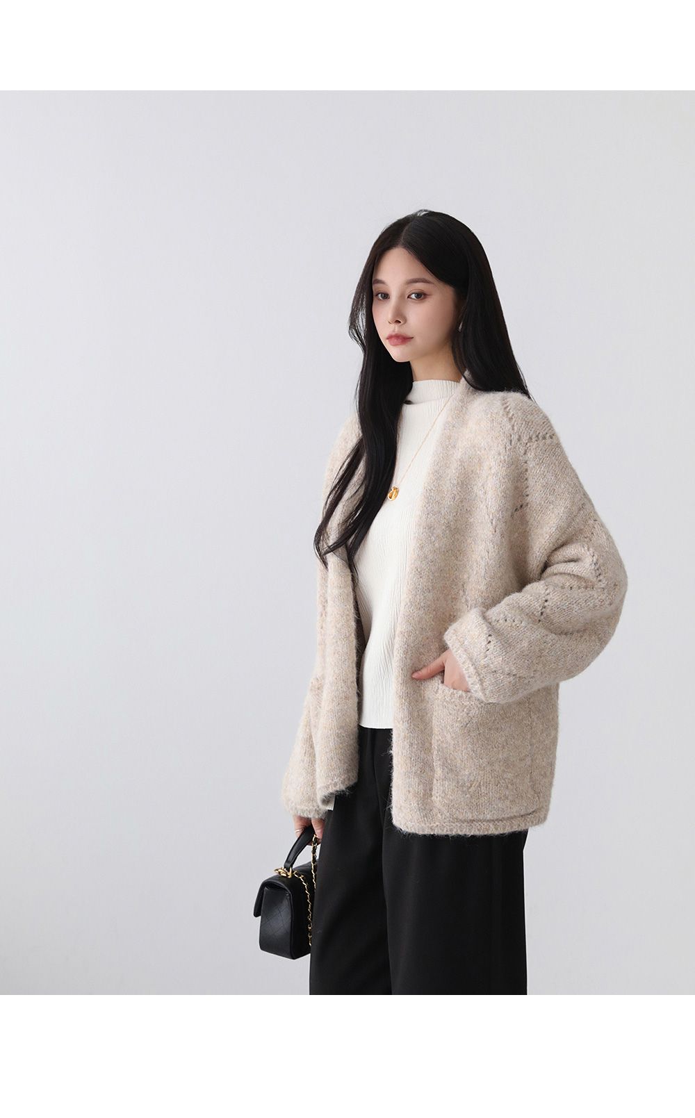 【C55741】韓國PPI 針織無釦外套-開襟鏤空編織寬鬆混羊毛素面長袖
