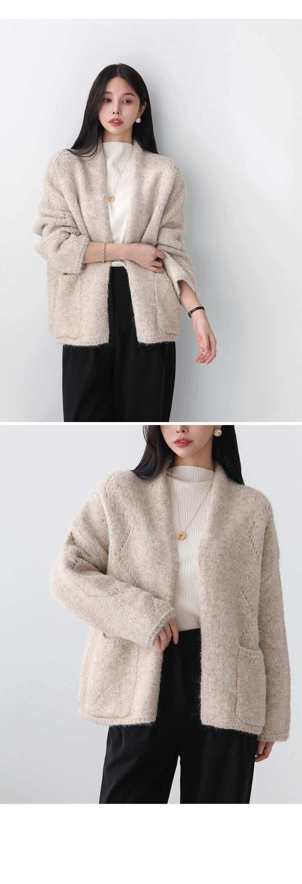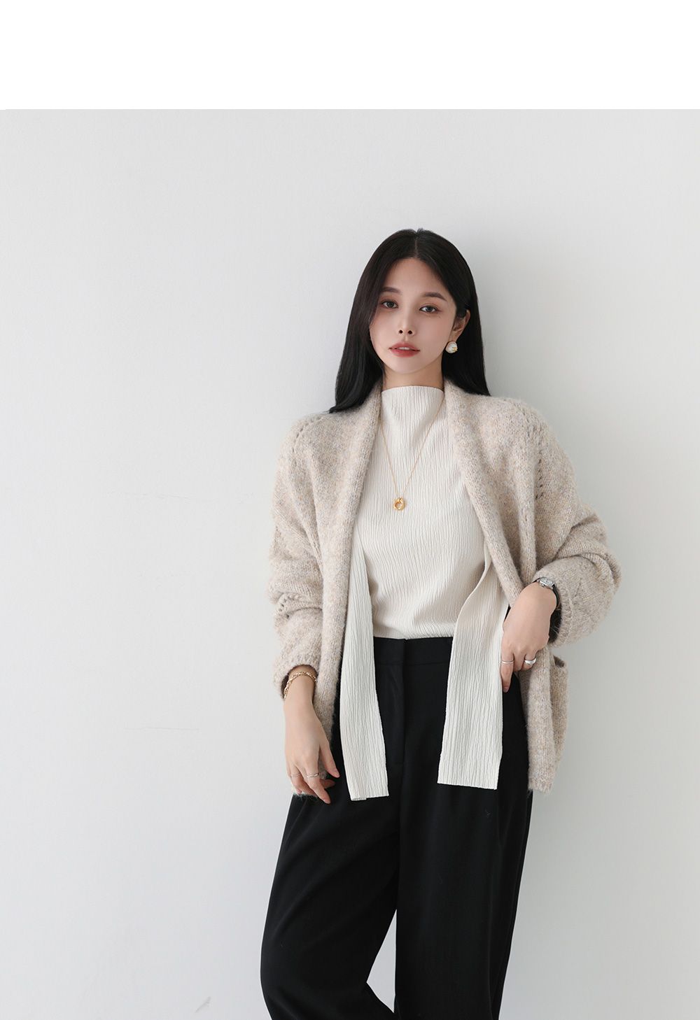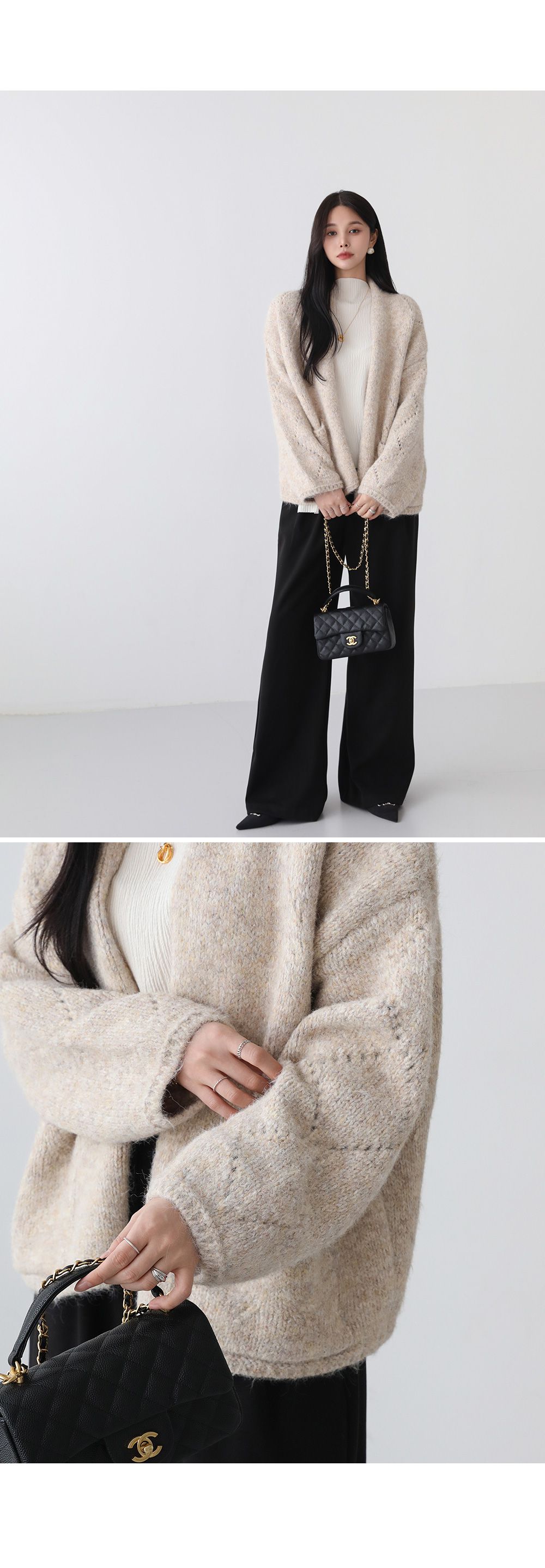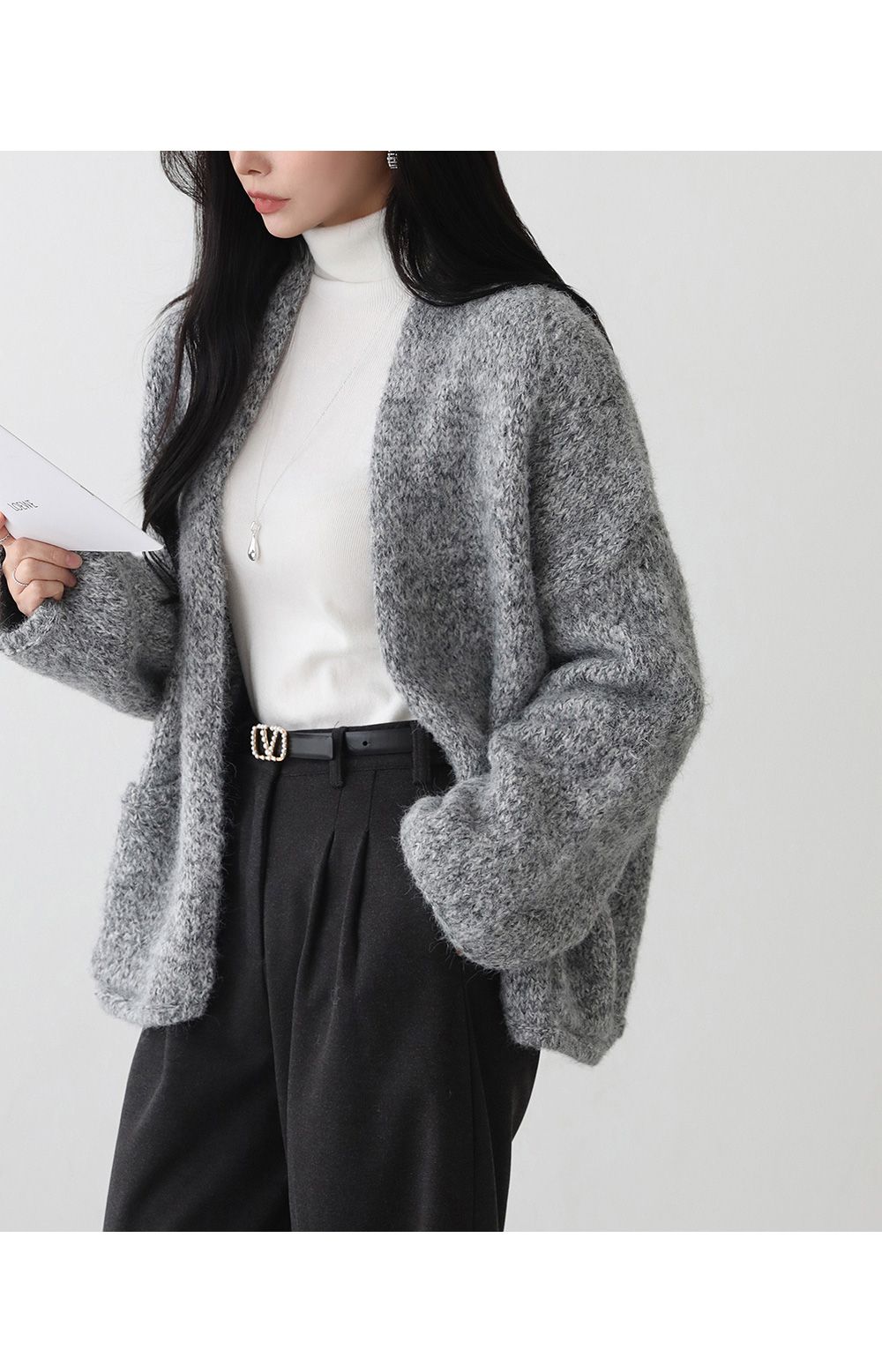 【C55741】韓國PPI 針織無釦外套-開襟鏤空編織寬鬆混羊毛素面長袖