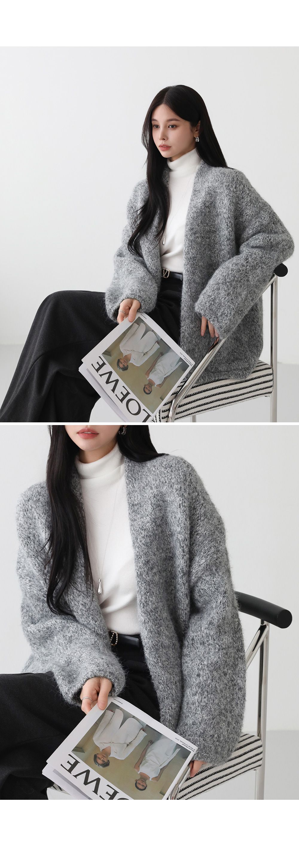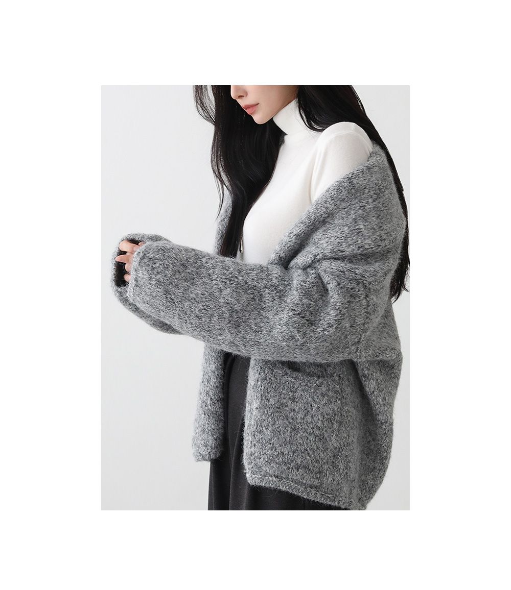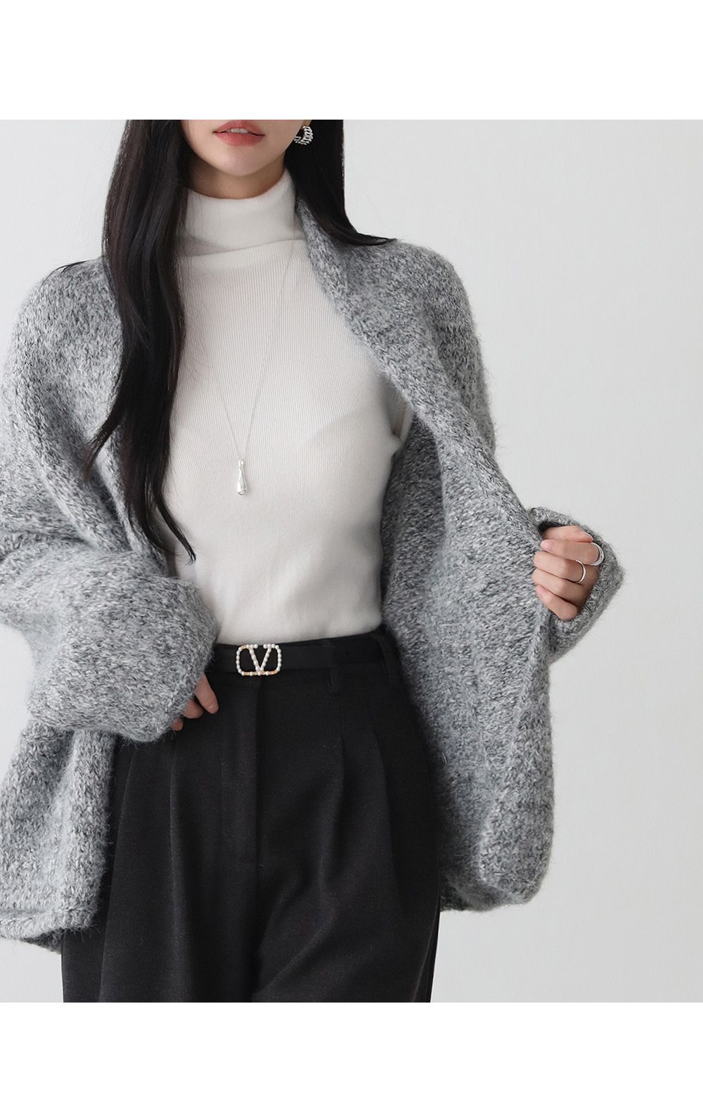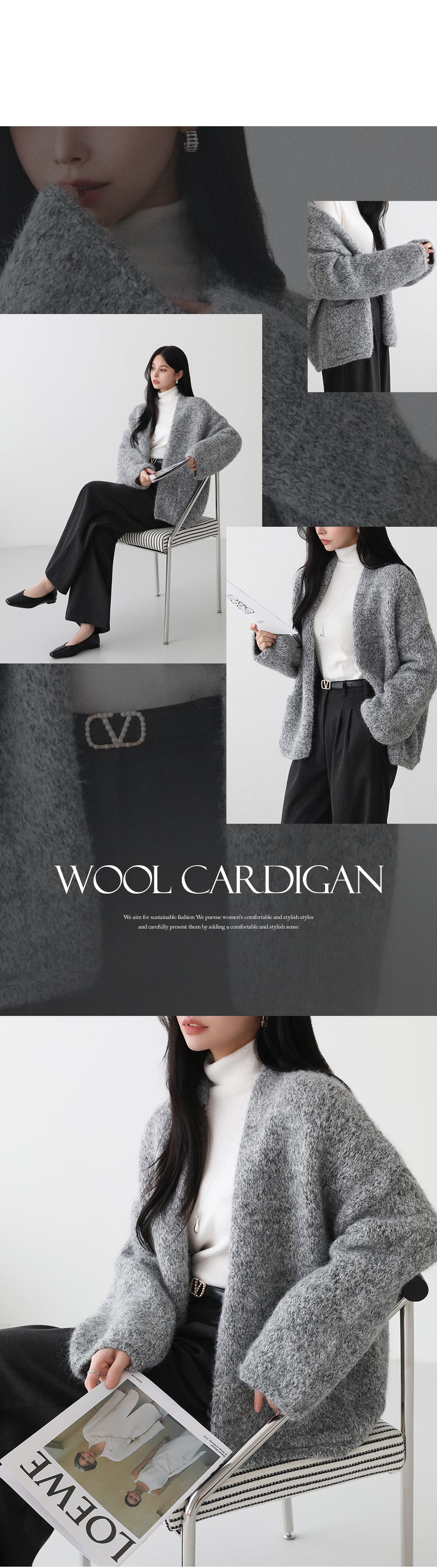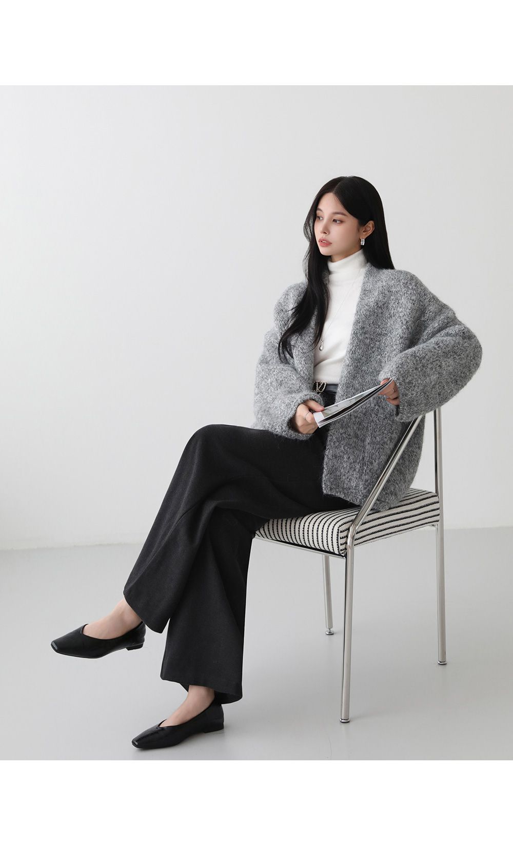 【C55741】韓國PPI 針織無釦外套-開襟鏤空編織寬鬆混羊毛素面長袖