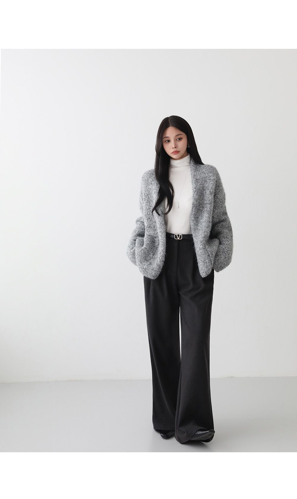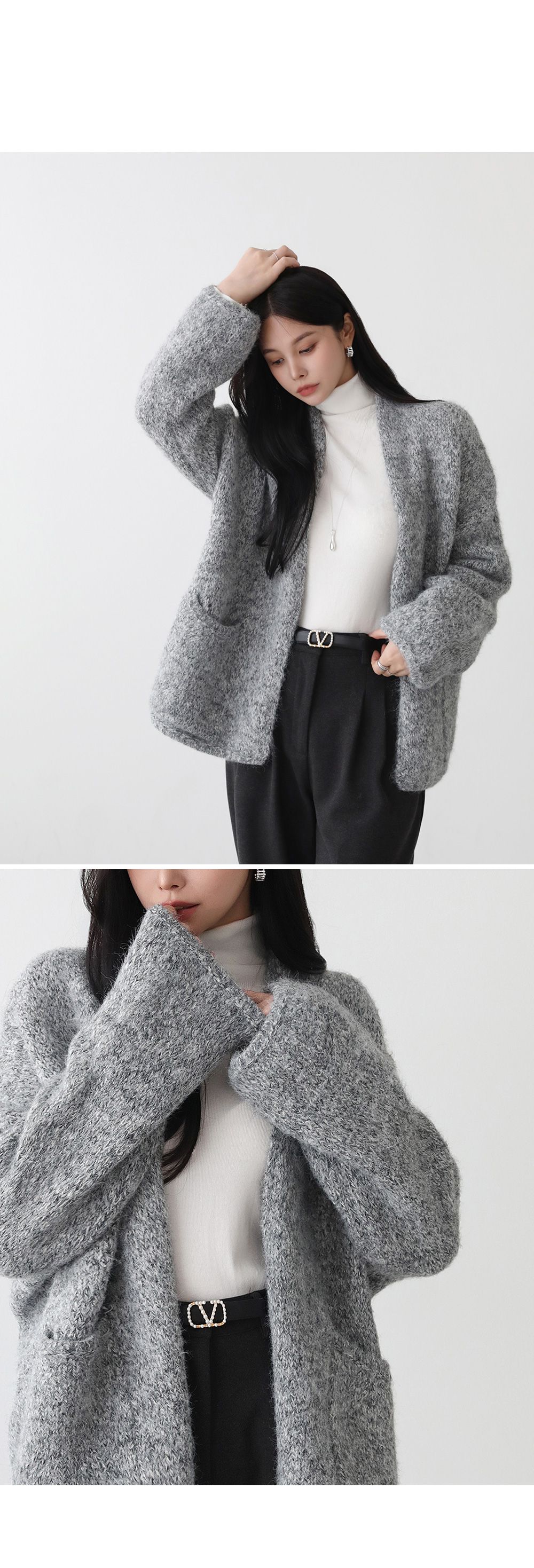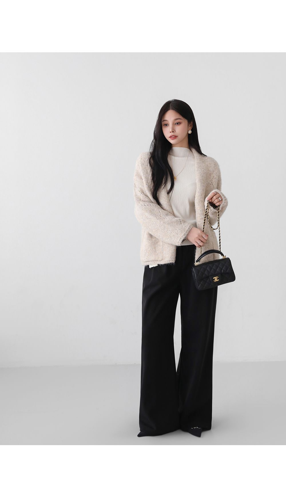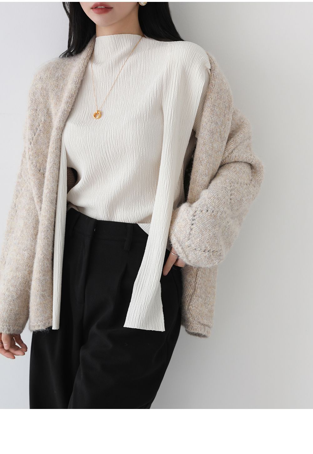 【C55741】韓國PPI 針織無釦外套-開襟鏤空編織寬鬆混羊毛素面長袖