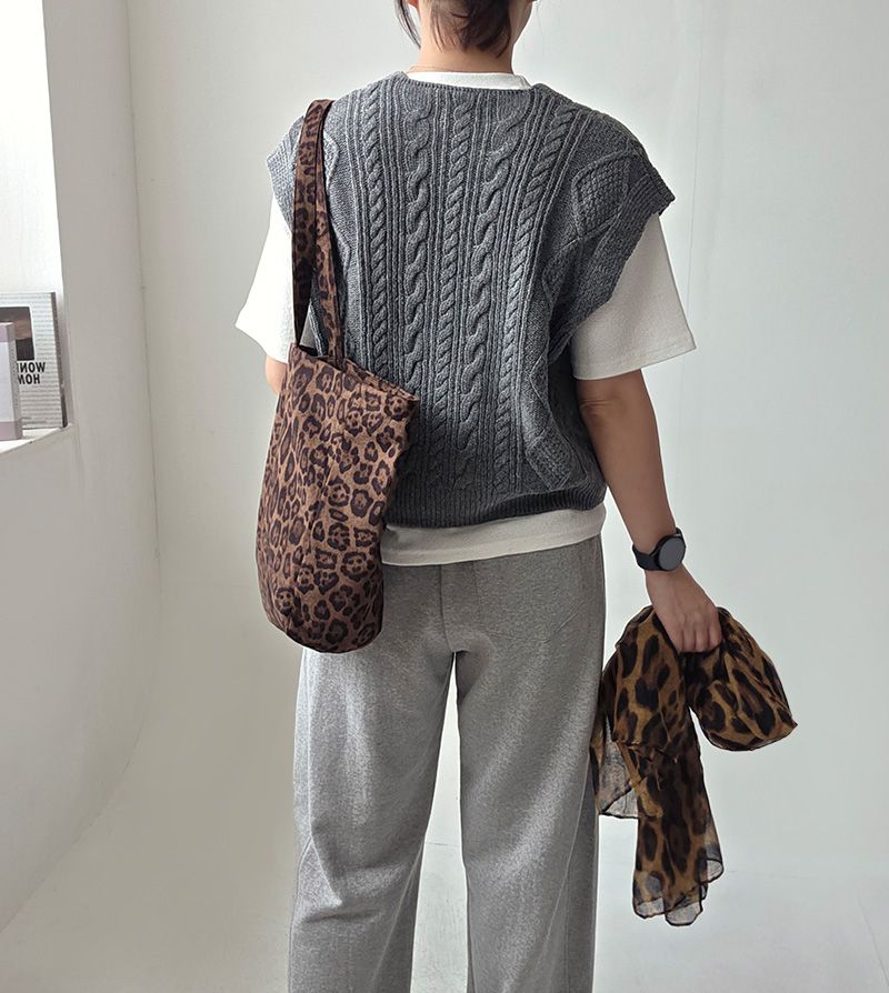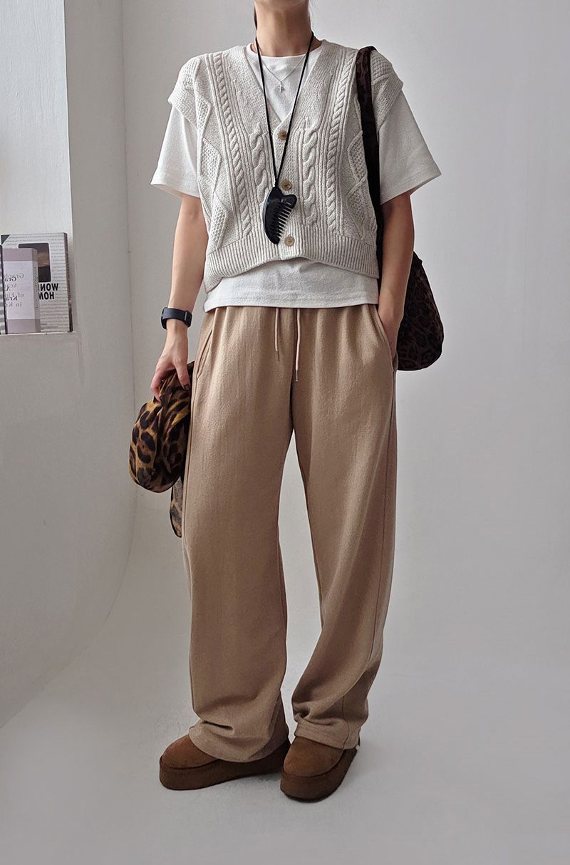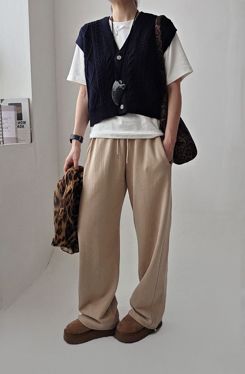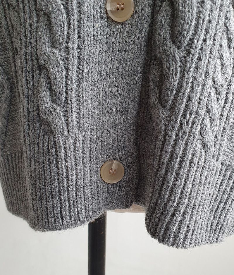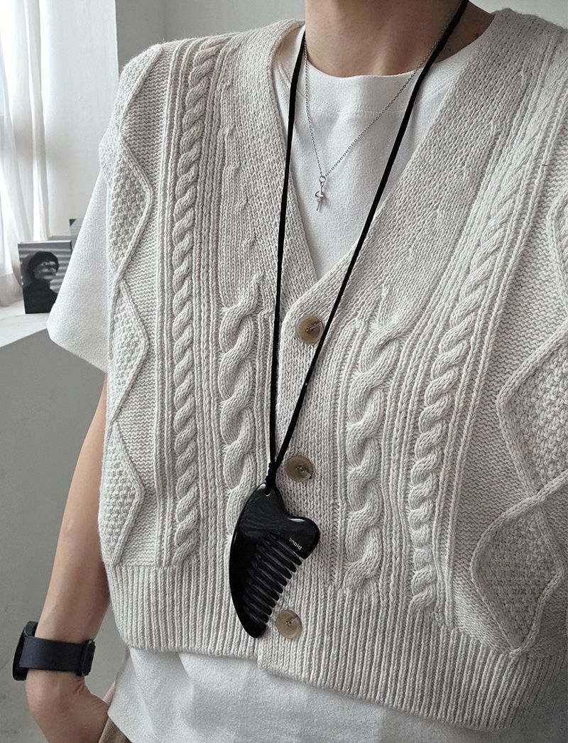【C55744】韓國WTM 麻花針織外套-短版素面深V領混羊毛排釦無袖背心