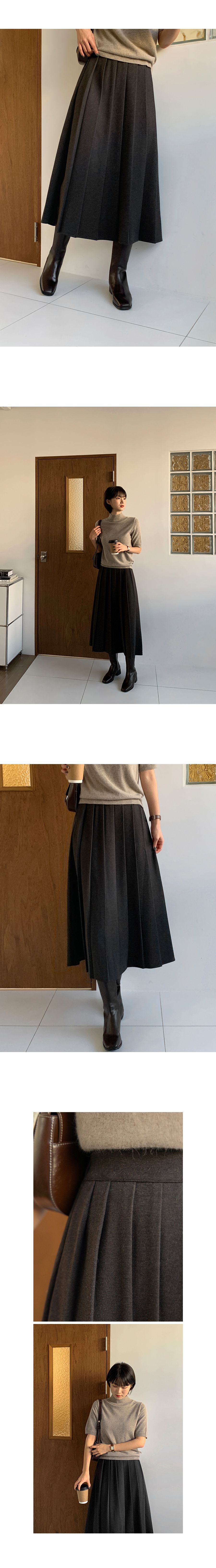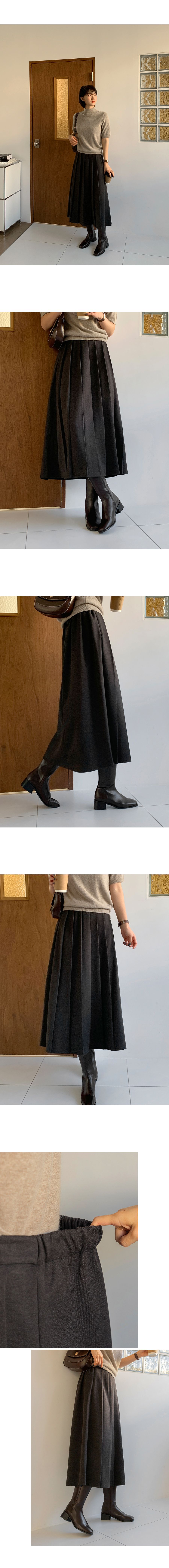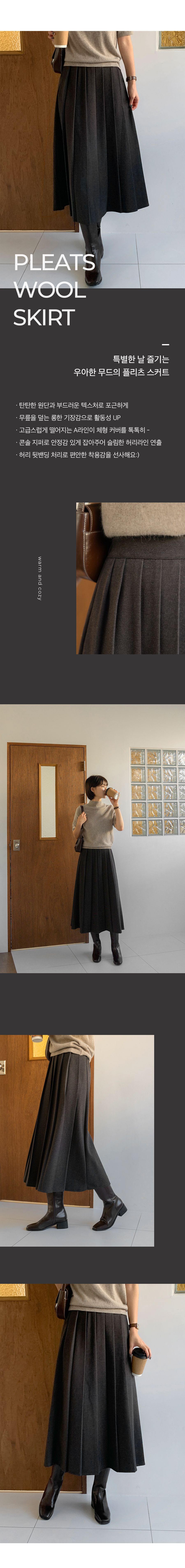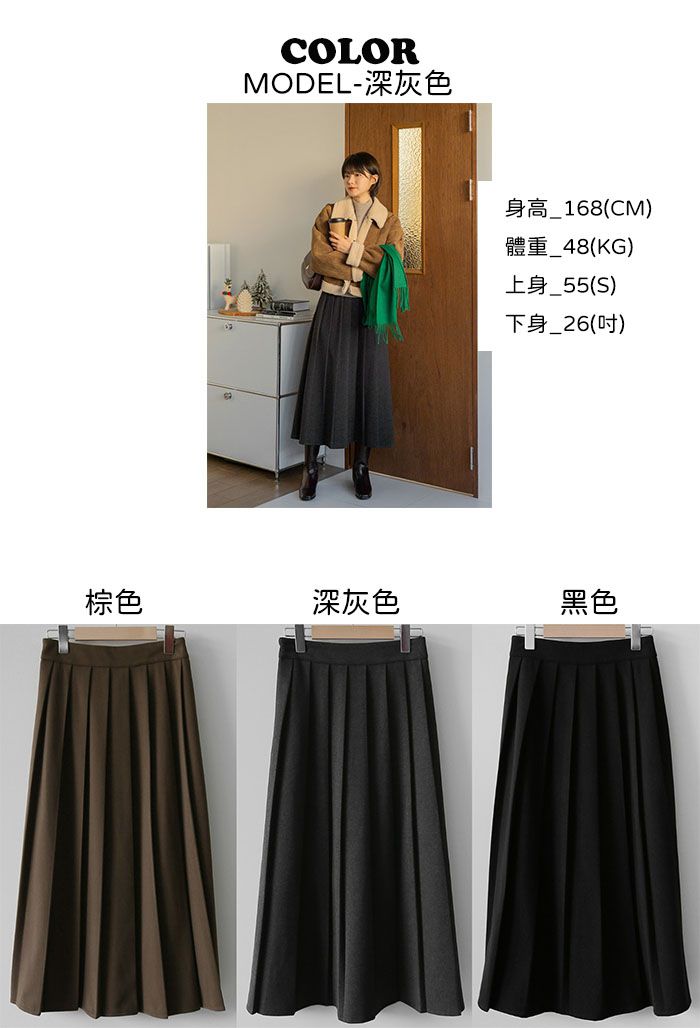 毛呢面料/有內裏/側拉鍊/後腰鬆緊/無口袋/百褶裙/A字傘裙 - 休閒渡假婚禮OL上班族簡約百搭素面毛呢百褶裙A字裙傘狀長裙棕色深灰色黑色