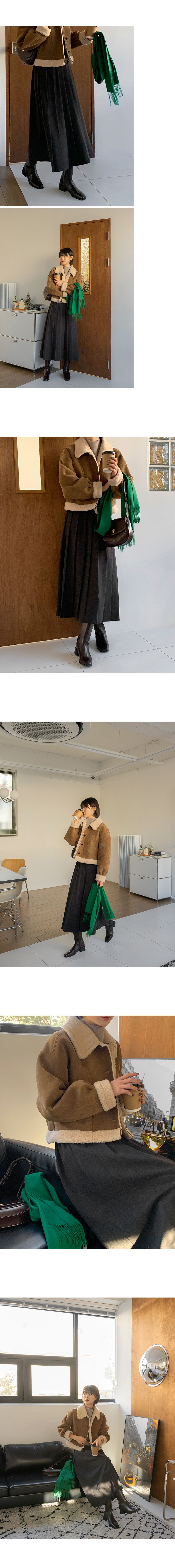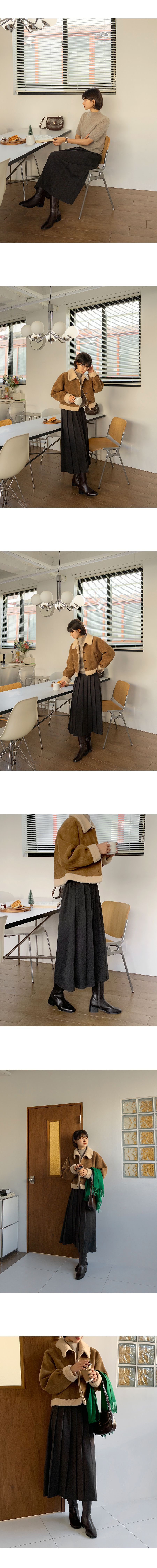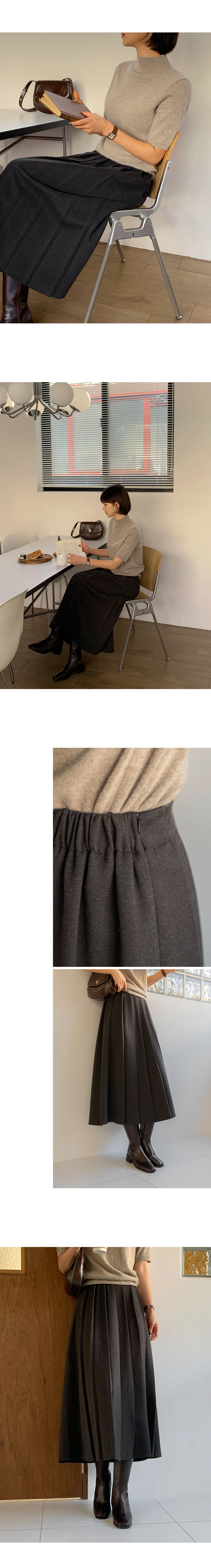 毛呢面料/有內裏/側拉鍊/後腰鬆緊/無口袋/百褶裙/A字傘裙 - 休閒渡假婚禮OL上班族簡約百搭素面毛呢百褶裙A字裙傘狀長裙棕色深灰色黑色