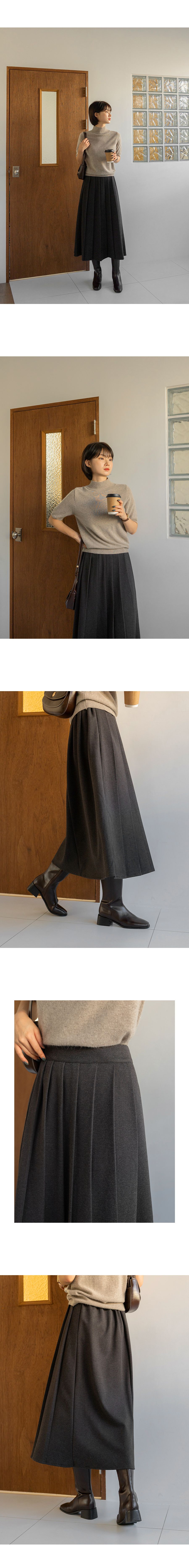 【C55749】韓國PUR 毛呢百褶裙-OL素面A字裙後腰鬆緊傘狀長裙