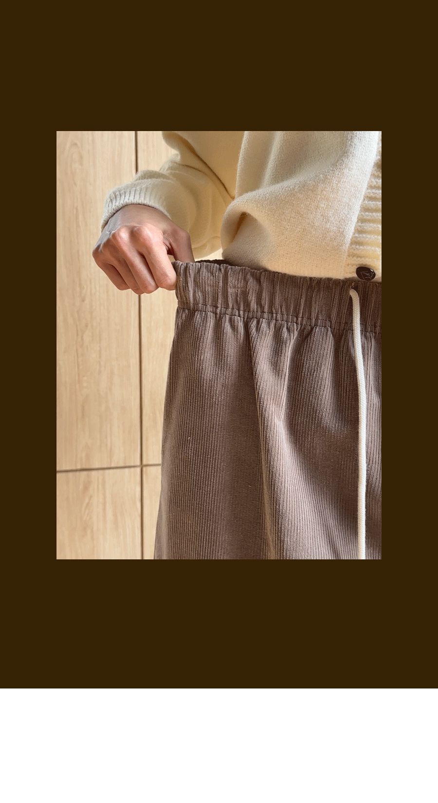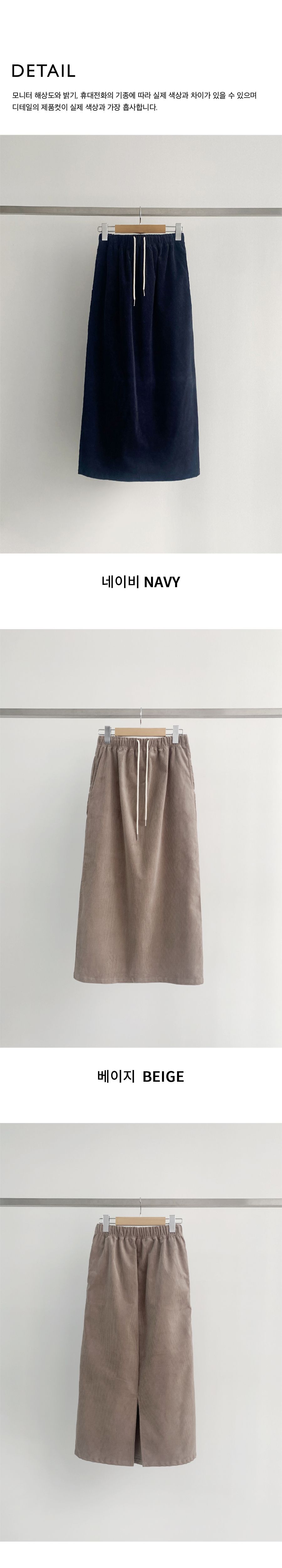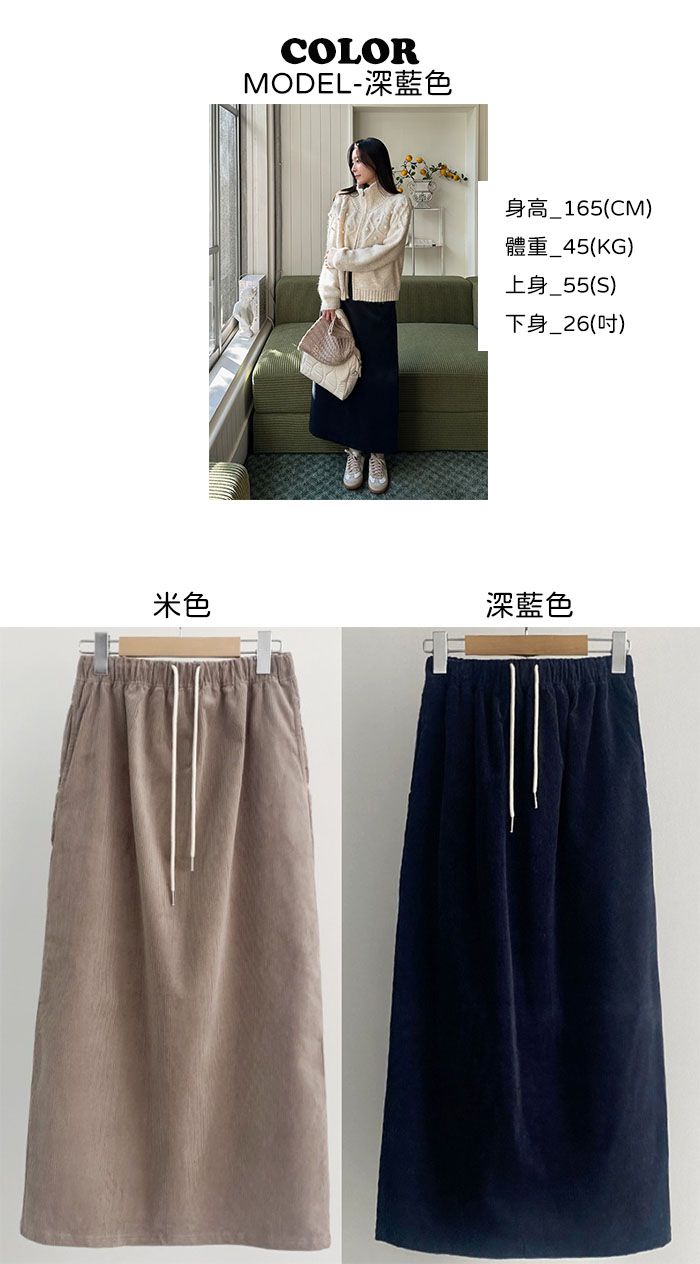厚磅燈芯絨面料/抽繩鬆緊腰/後開衩/雙口袋 - 休閒居家渡假簡約百搭素面燈芯絨窄裙直筒裙長裙米色深藍色