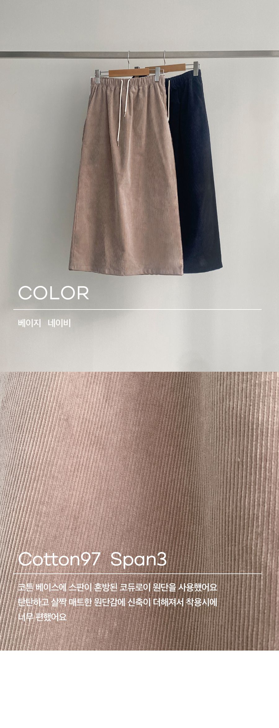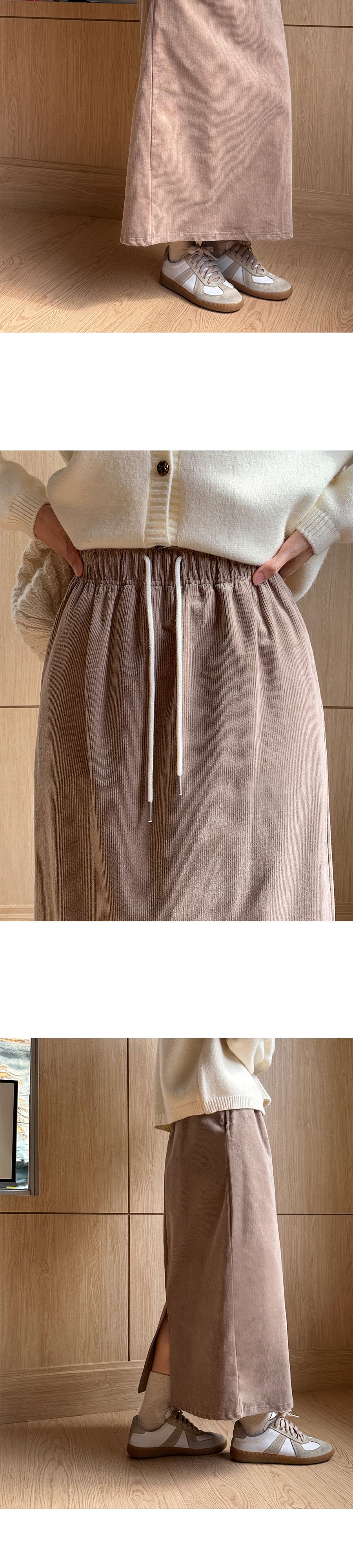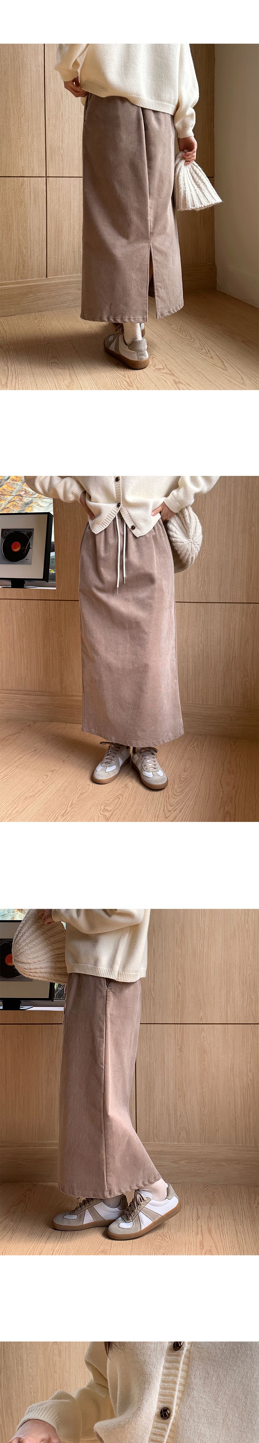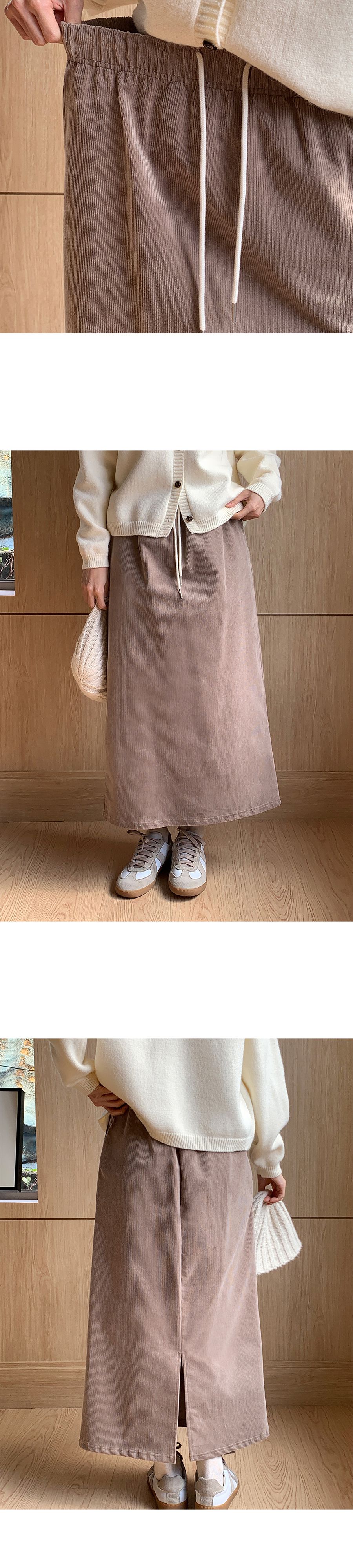【C55750】韓國PUR 燈芯絨窄裙-素面抽繩鬆緊腰後開衩厚實長裙