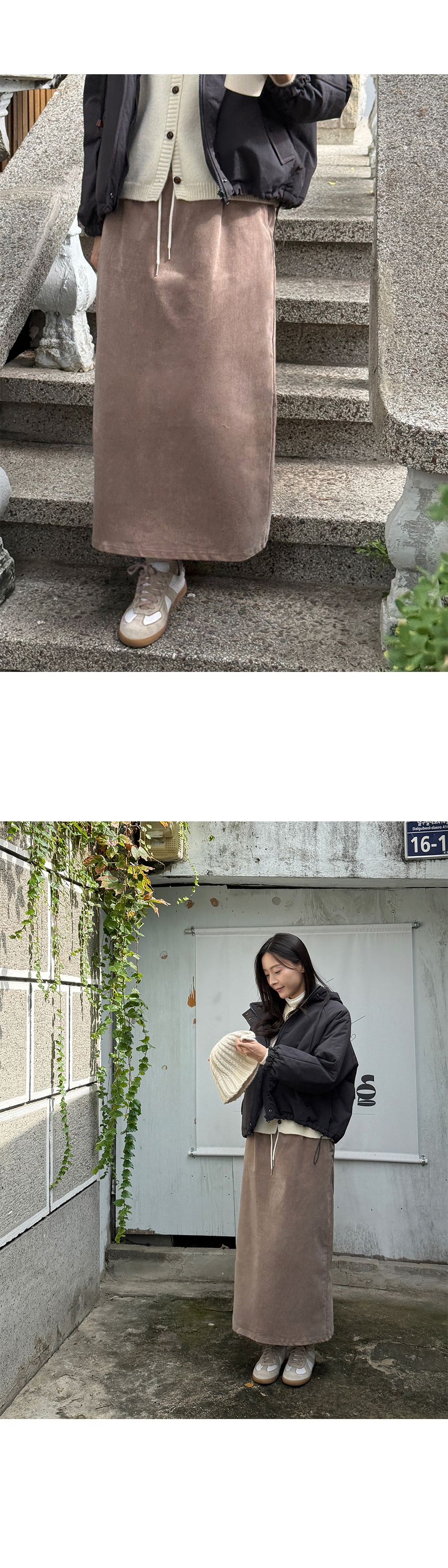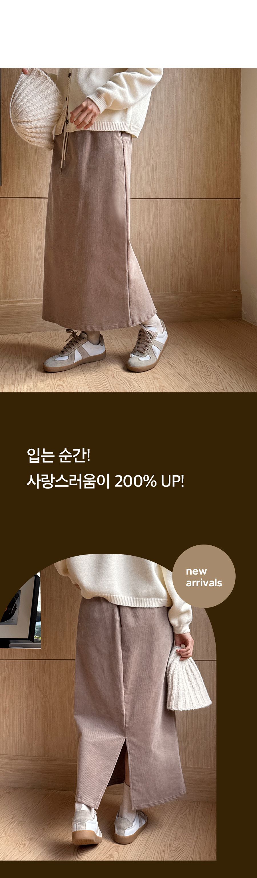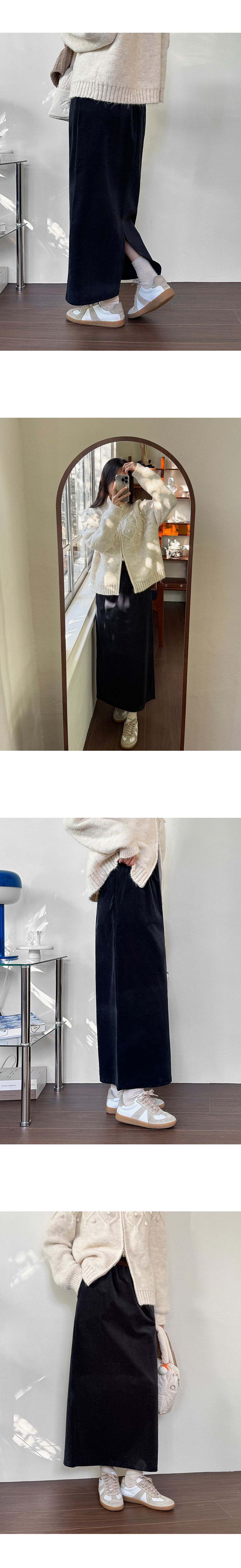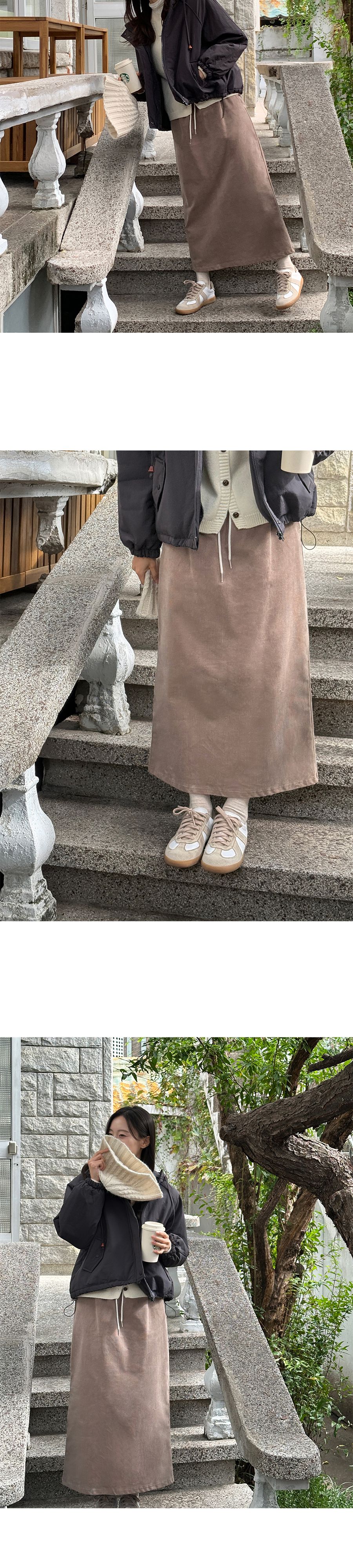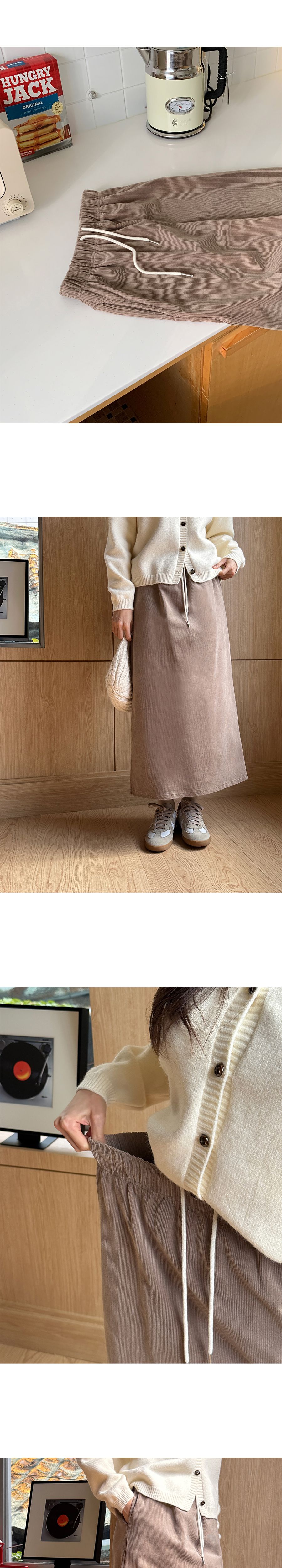 【C55750】韓國PUR 燈芯絨窄裙-素面抽繩鬆緊腰後開衩厚實長裙