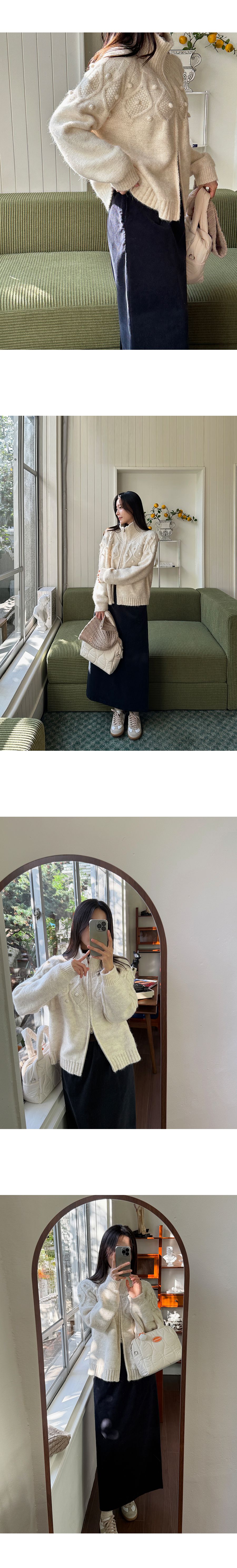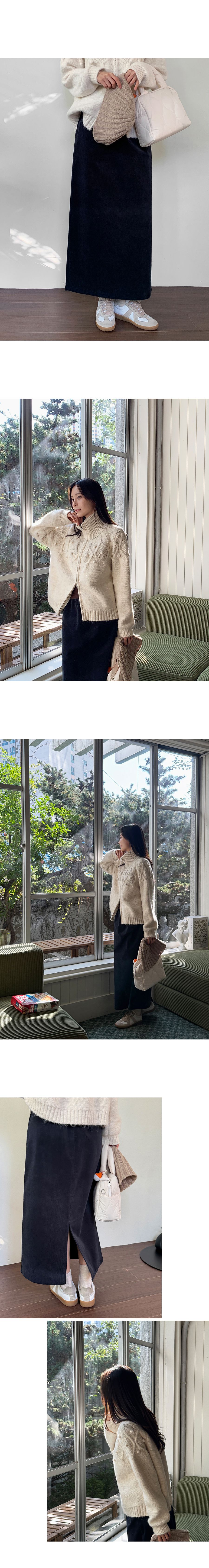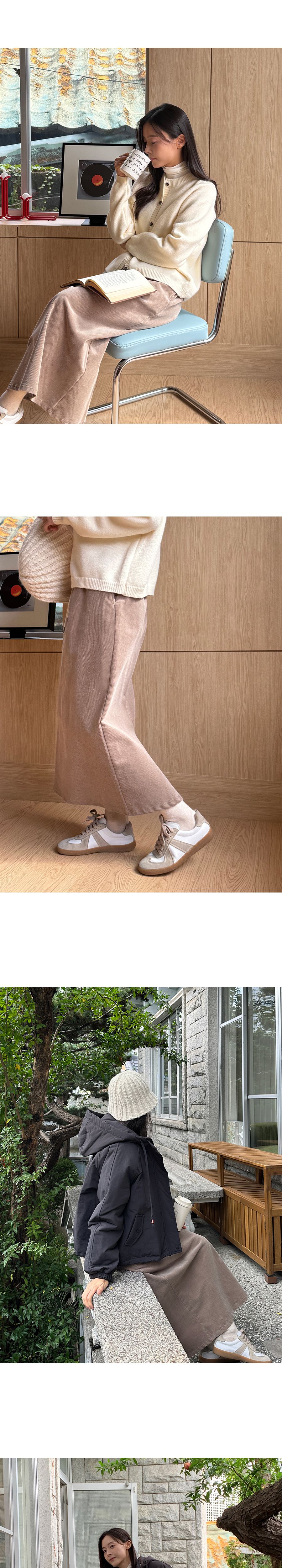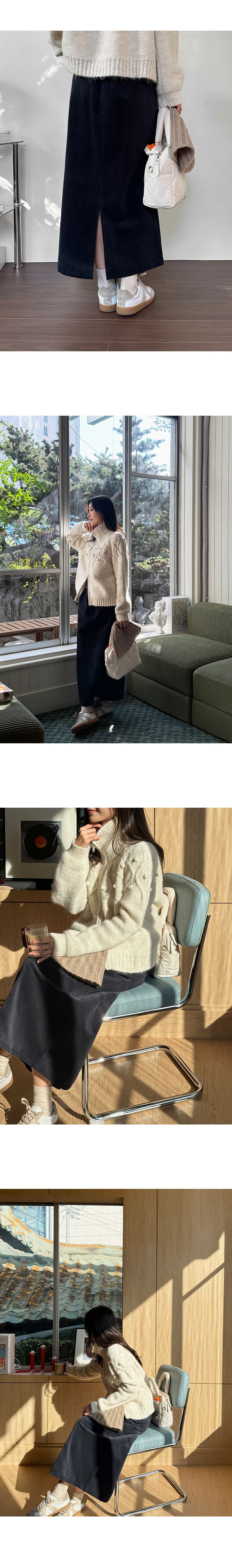 【C55750】韓國PUR 燈芯絨窄裙-素面抽繩鬆緊腰後開衩厚實長裙