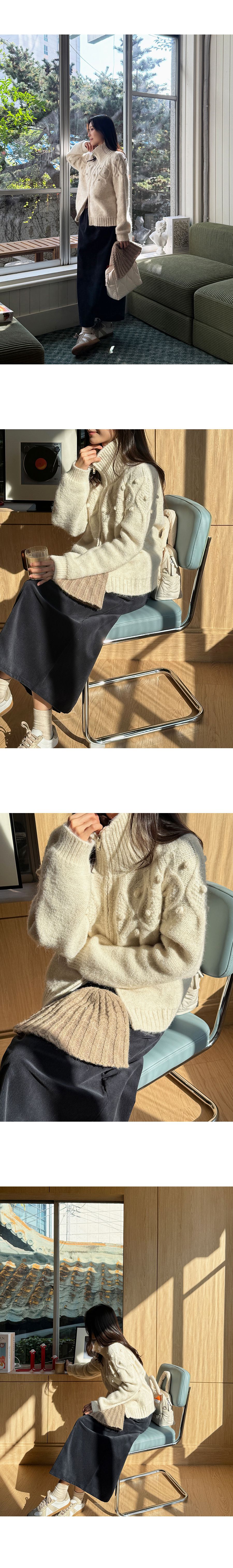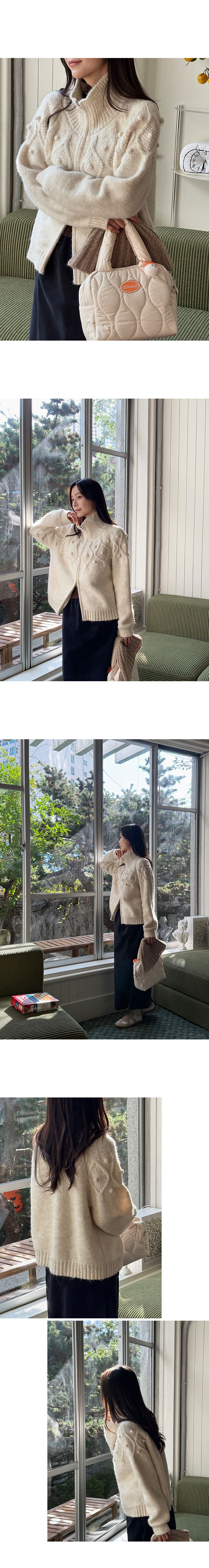 【C55751】韓國PUR 毛球針織外套-素面立體麻花立領雙開拉鍊長袖