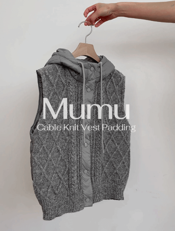 【C55752】韓國PUR 拼接鋪棉背心-素面立領抽繩連帽無袖麻花針織外套_影片★★