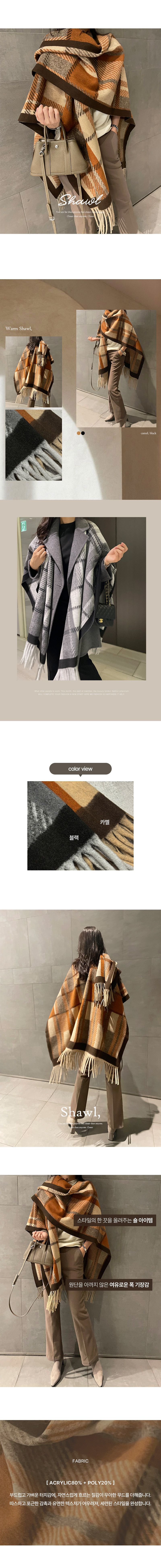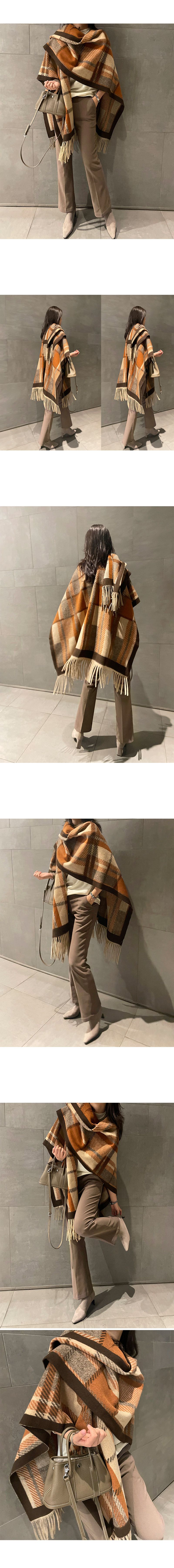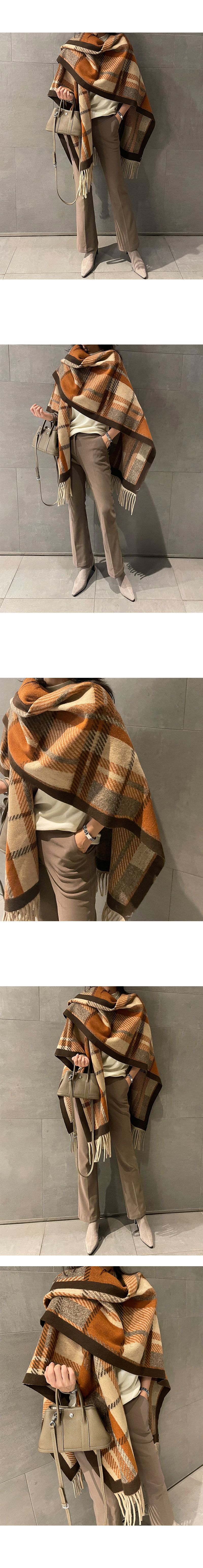 【C55753】韓國MNR 經典格紋披肩-寬大長版毛呢面料流蘇斗篷圍巾配件