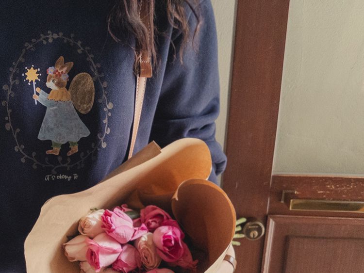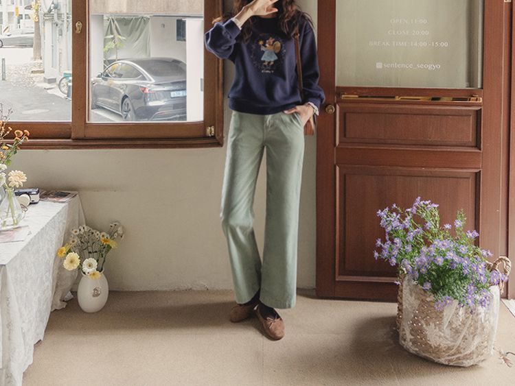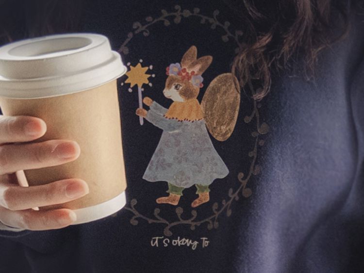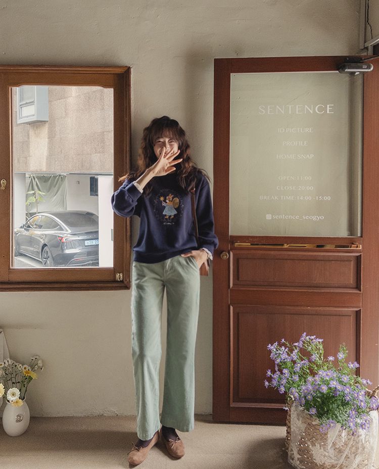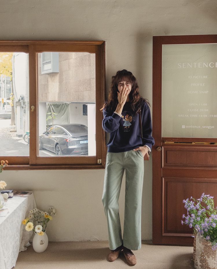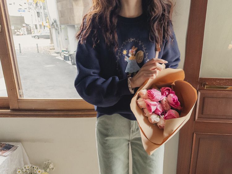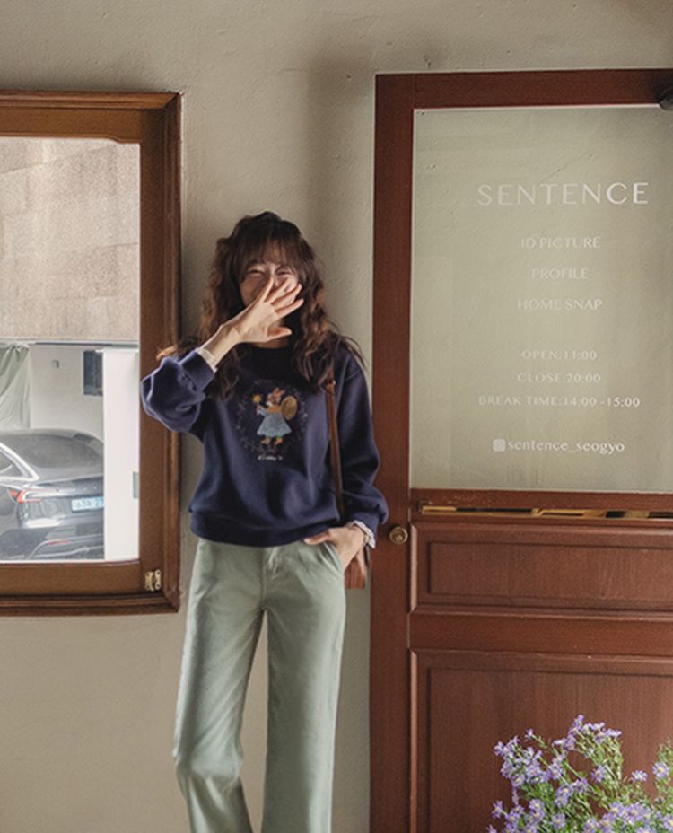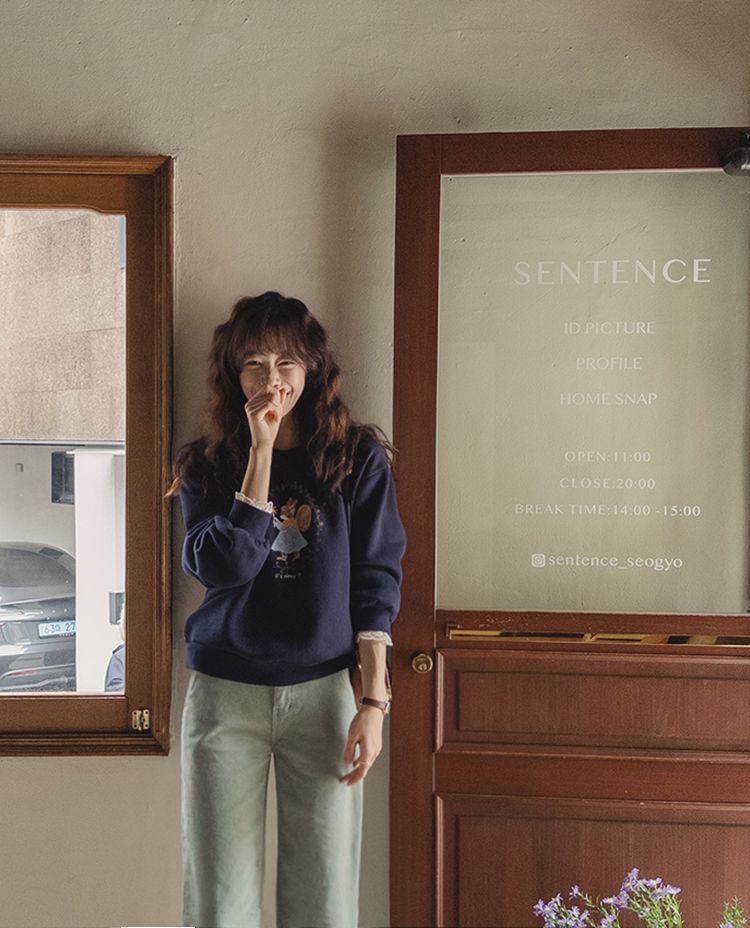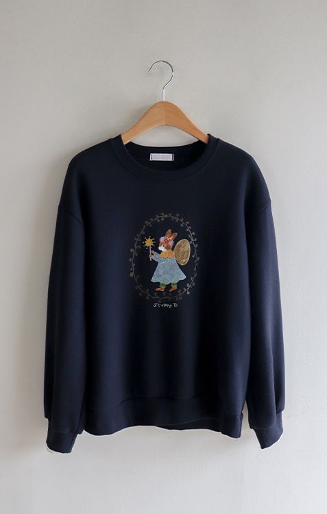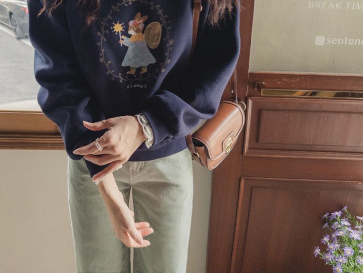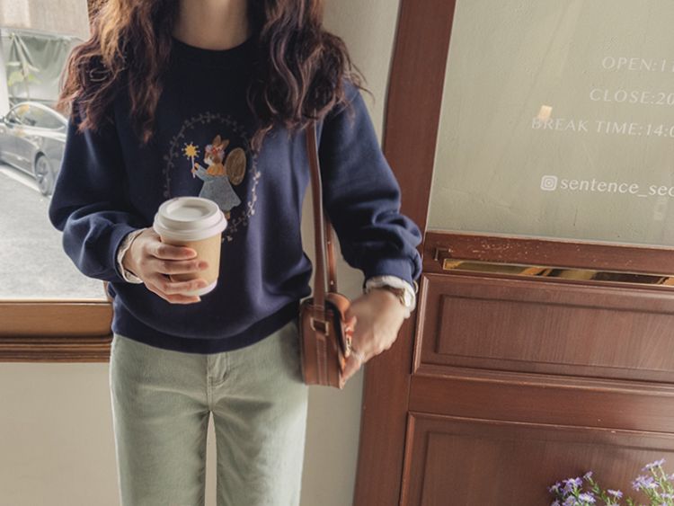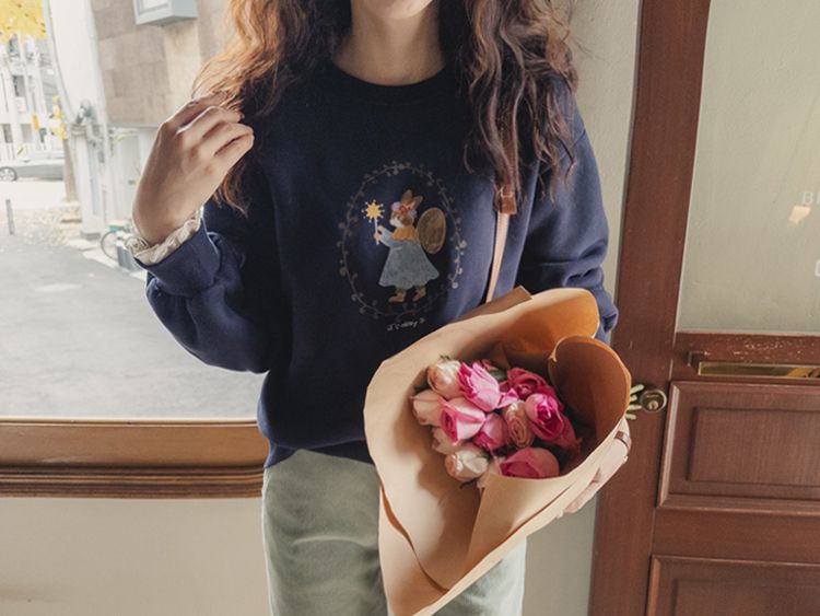 ★限時24H優惠★【C55756】韓國LEE 兔兔大學T-內刷毛燙印印花圓領蕾絲拼接長袖上衣