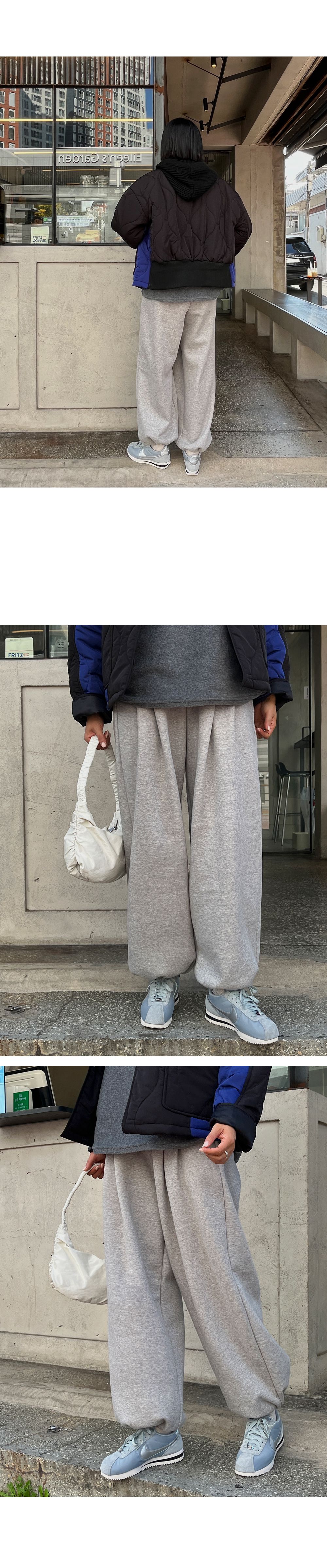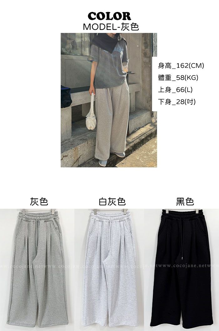 ★限時24H優惠★【C55757】韓國COJ 寬鬆厚磅棉褲-內刷毛素面抓褶褲頭束口褲長褲