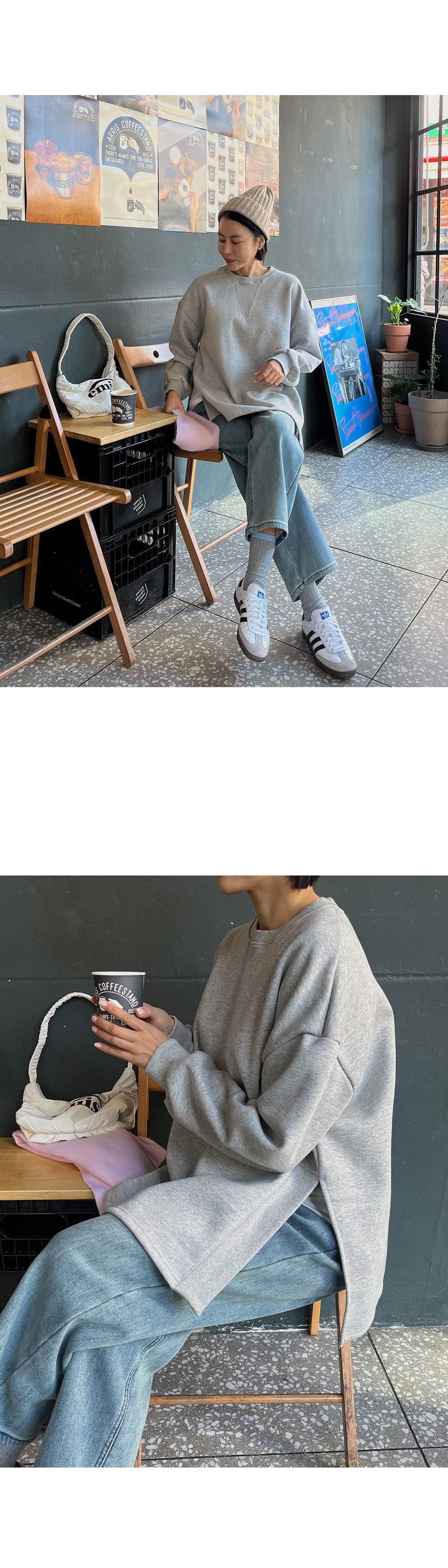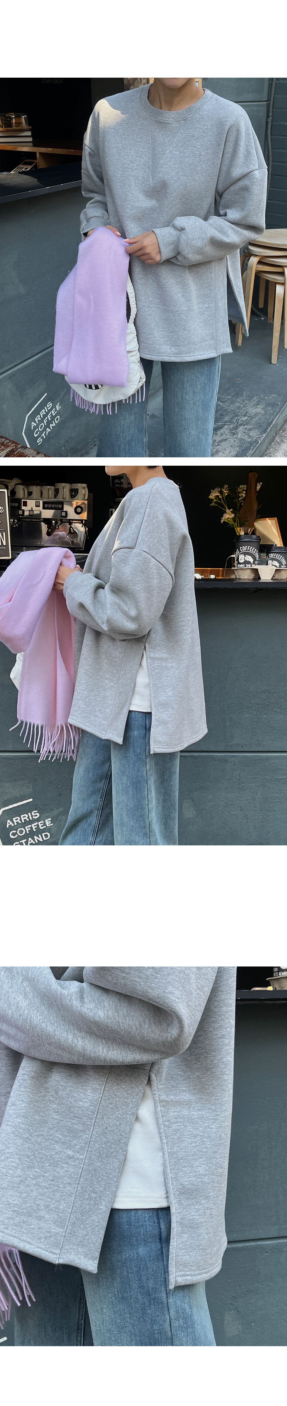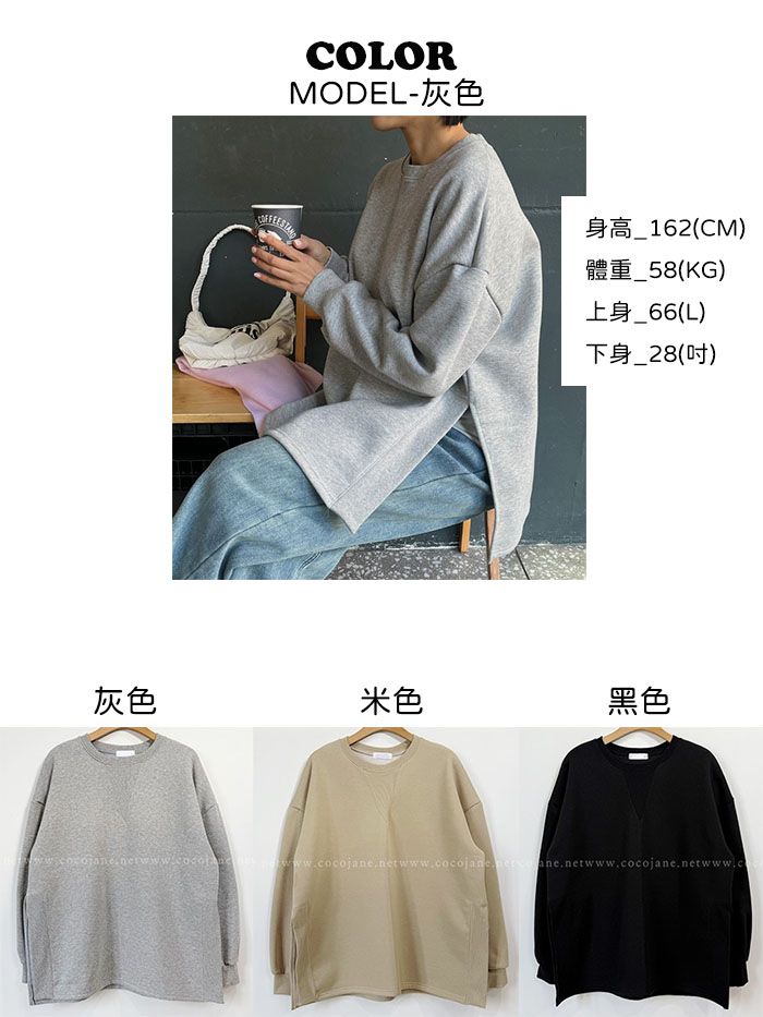 ★限時24H優惠★【C55761】韓國COJ 側邊高衩大學T-素面圓領內刷毛寬鬆長版長袖上衣