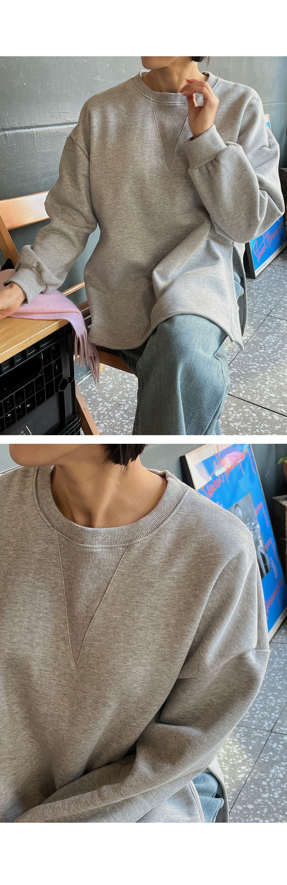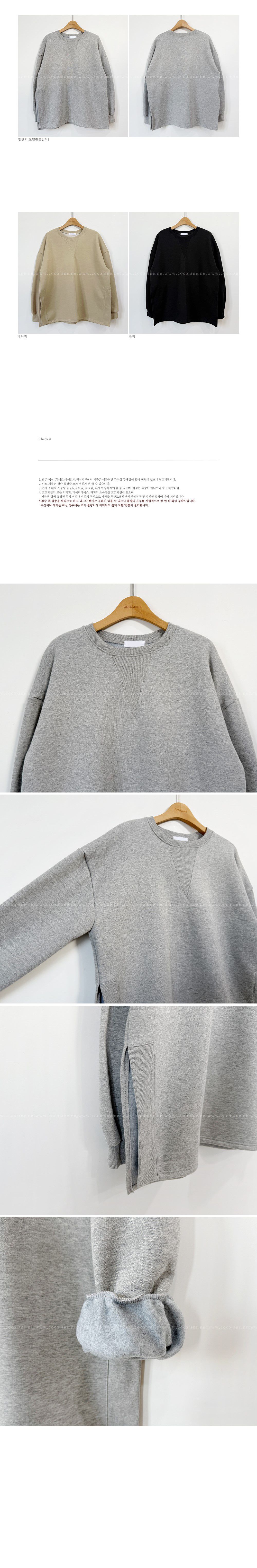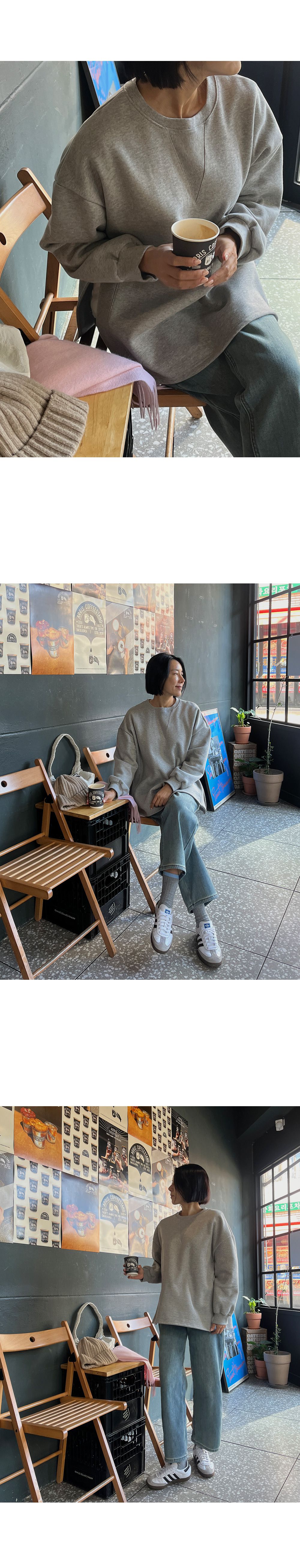★限時24H優惠★【C55761】韓國COJ 側邊高衩大學T-素面圓領內刷毛寬鬆長版長袖上衣