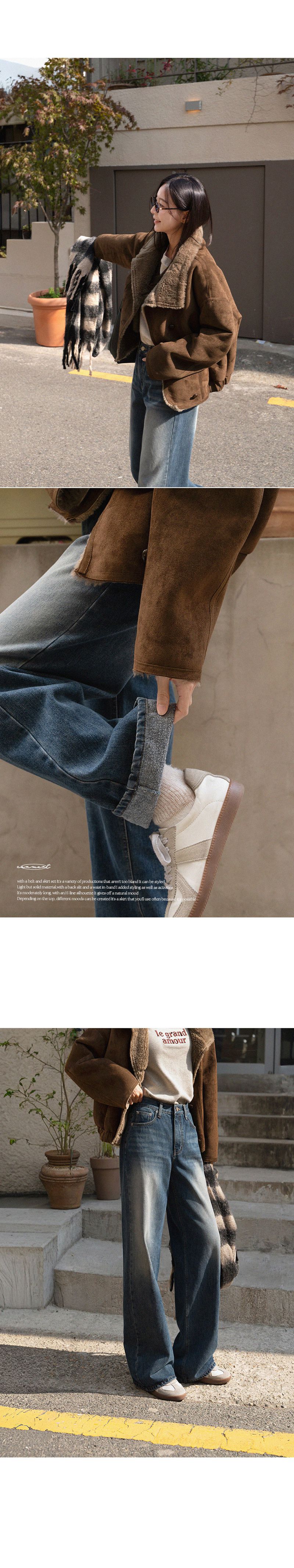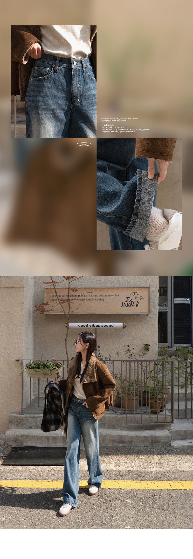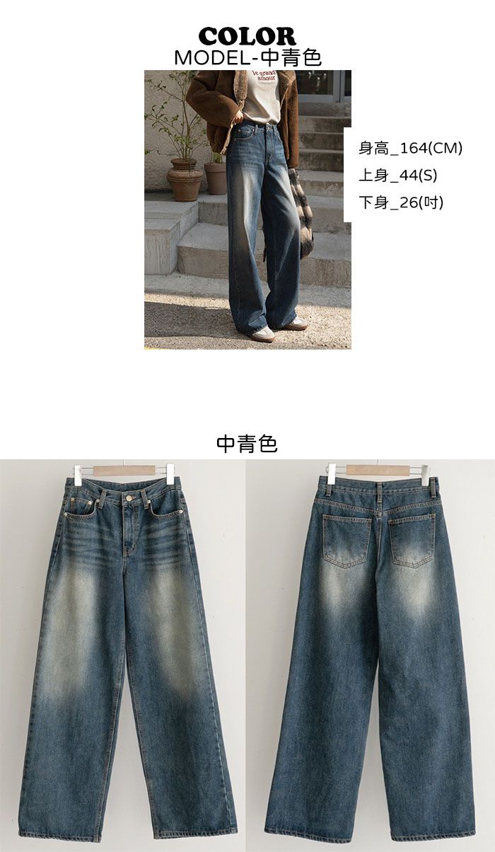 ★限時24H優惠★【C55767】韓國CAN 刷毛牛仔褲-復古刷白直筒褲素面寬褲拉鍊褲頭長褲