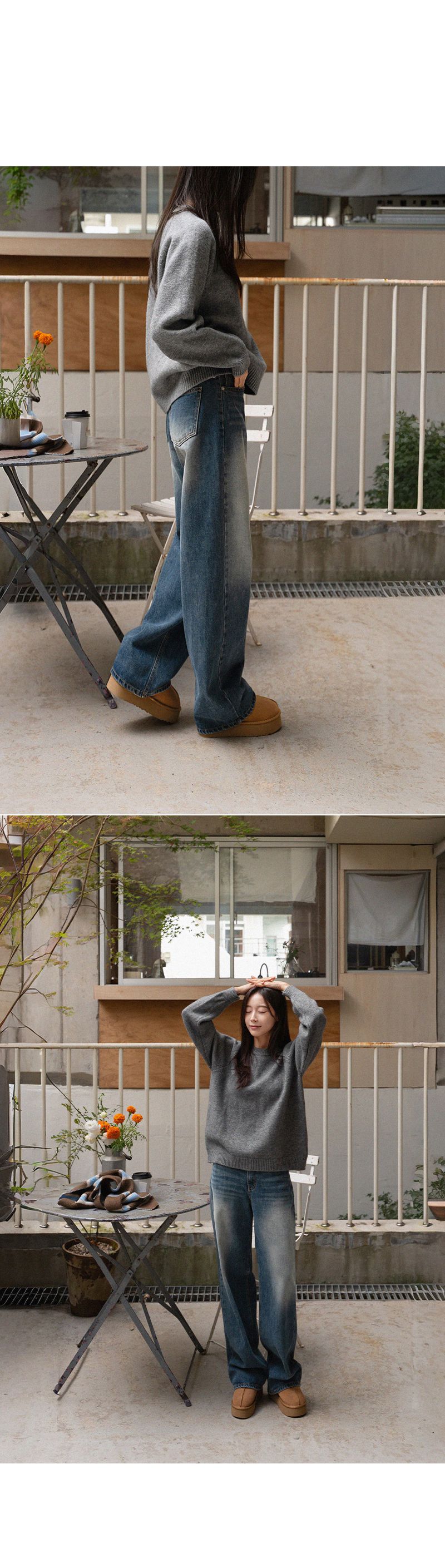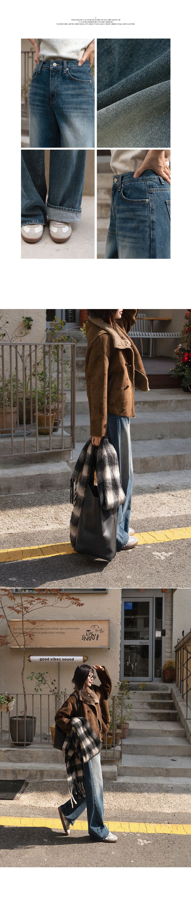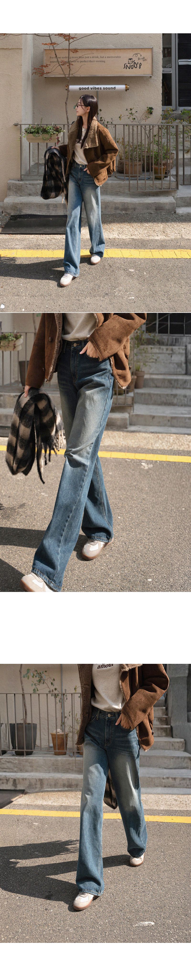 ★限時24H優惠★【C55767】韓國CAN 刷毛牛仔褲-復古刷白直筒褲素面寬褲拉鍊褲頭長褲
