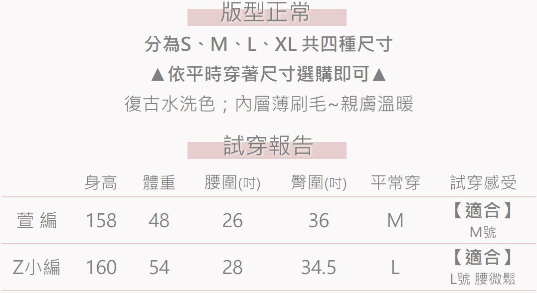 四種尺寸/內薄刷毛長褲/拉鍊褲頭/雙口袋/直筒褲/復古