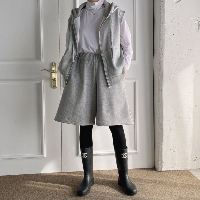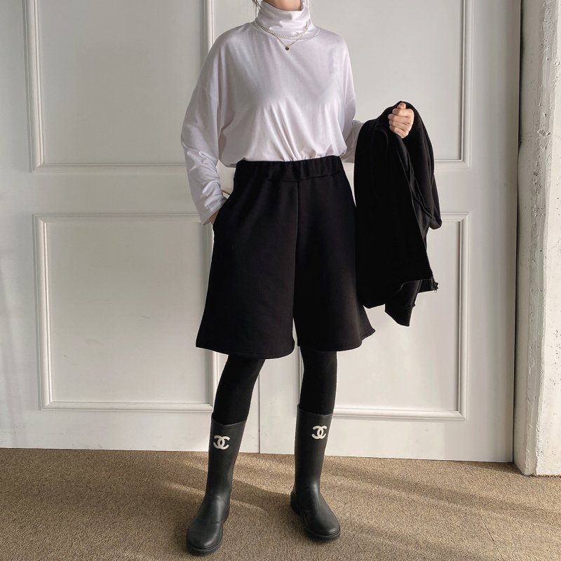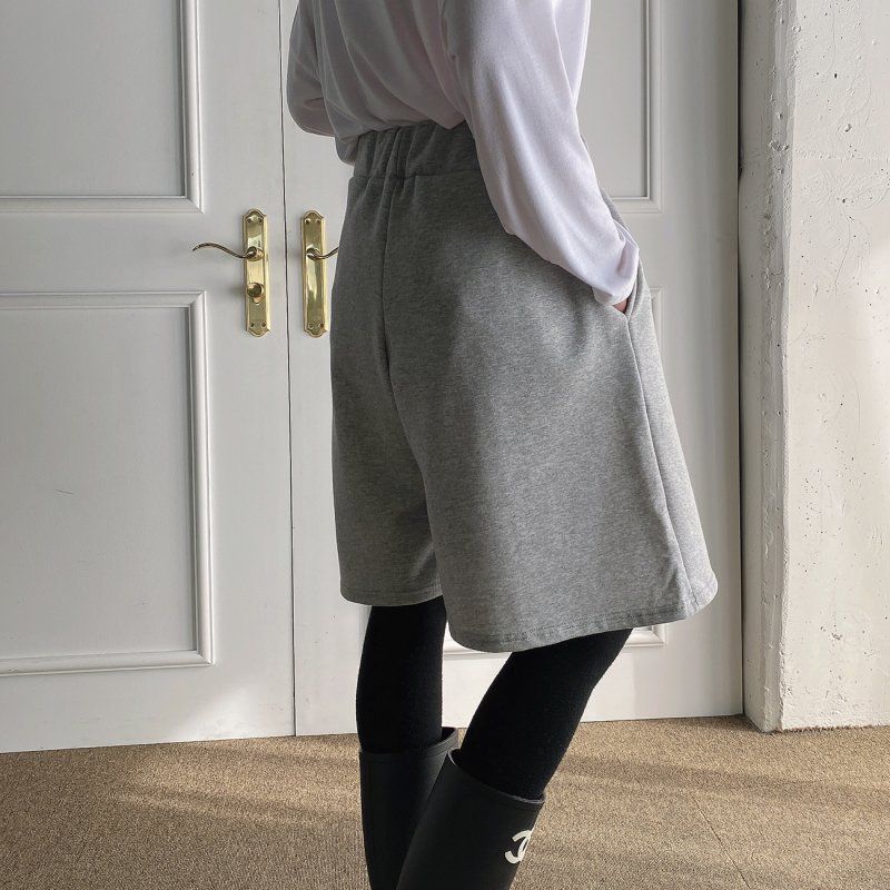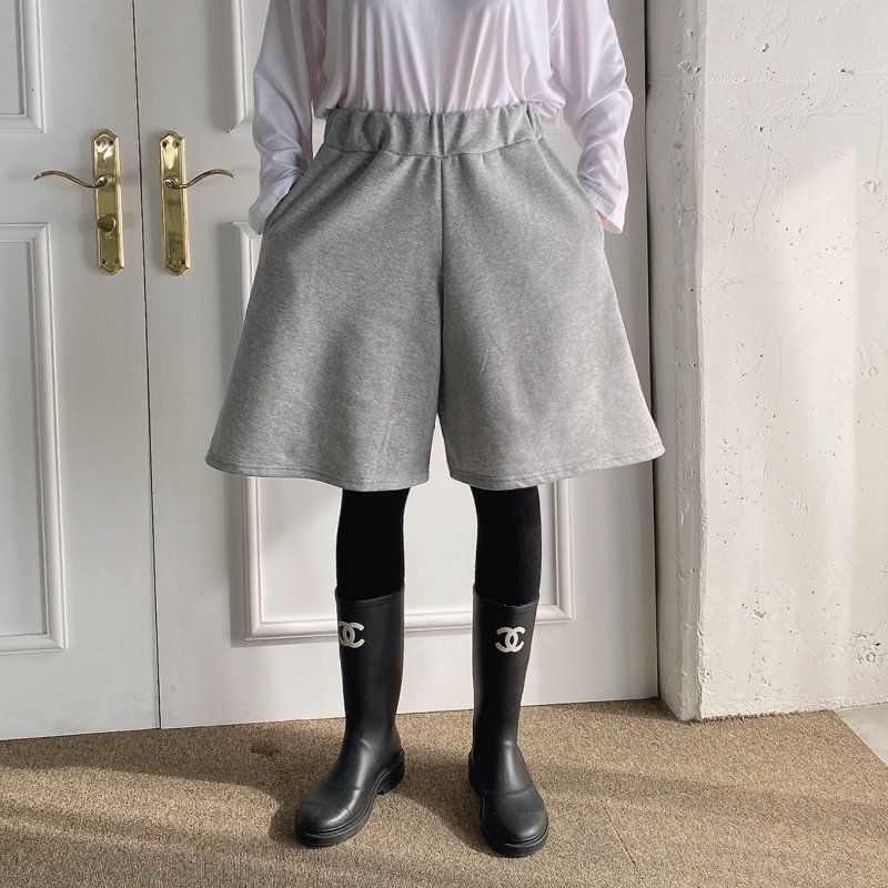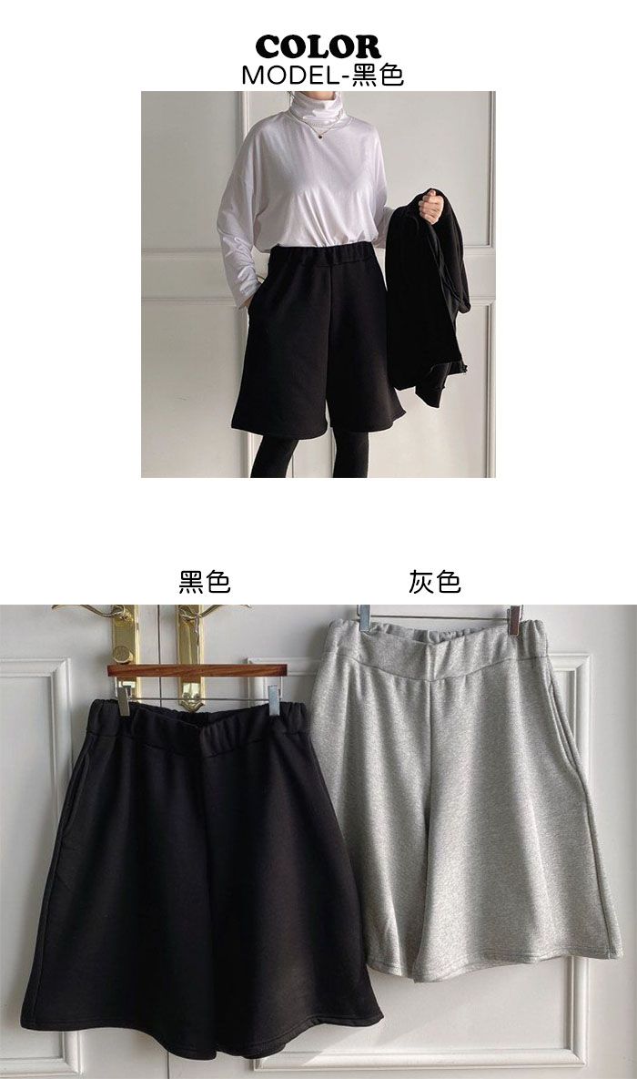 ★限時24H優惠★【C55774】韓國SAN 刷毛五分褲-超彈力鬆緊腰寬鬆雙口袋A字寬褲短褲