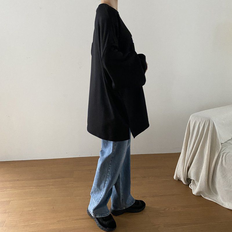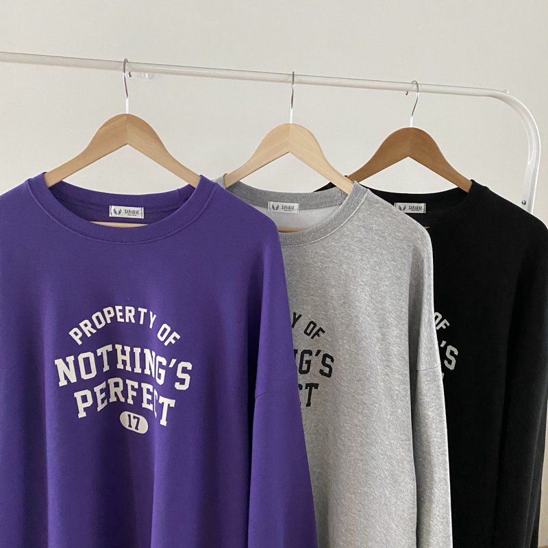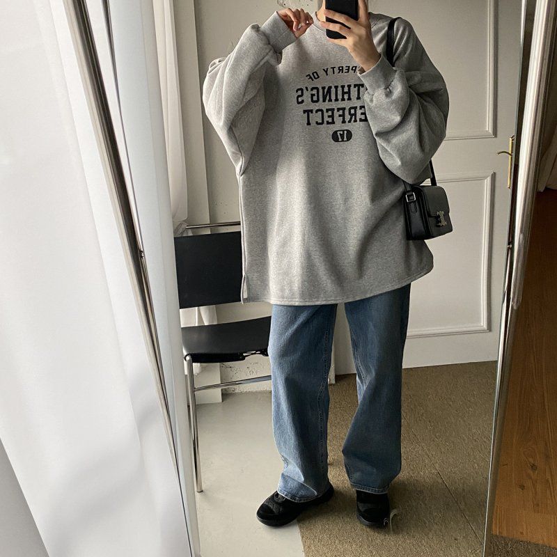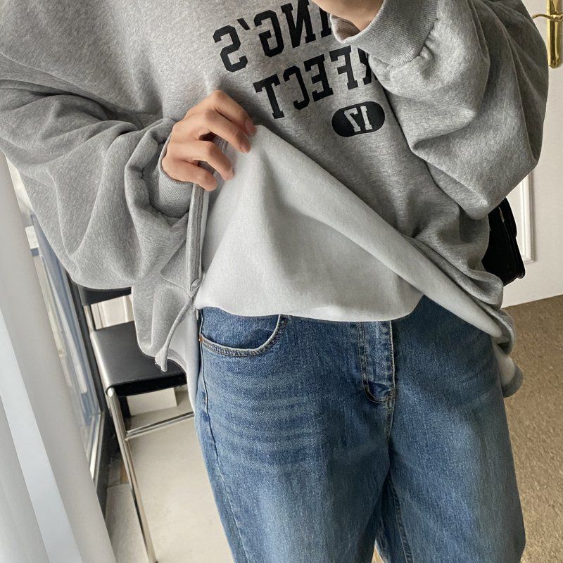 【C55775】韓國SAN 長版字母大學T-落肩寬袖好氣色寬鬆刷毛長袖上衣