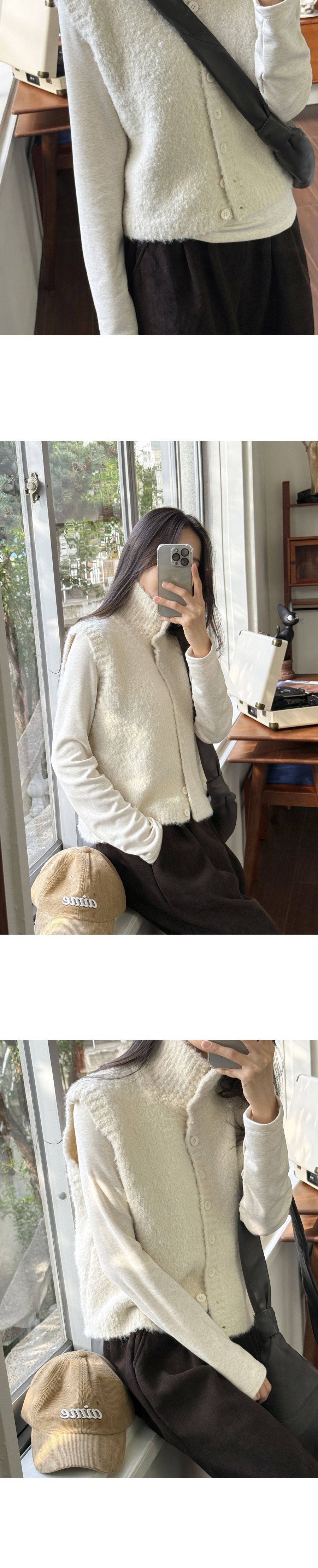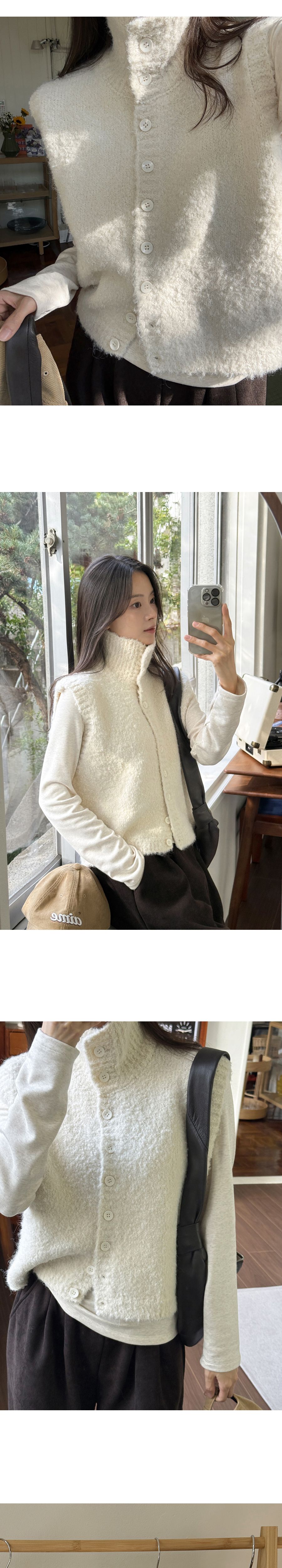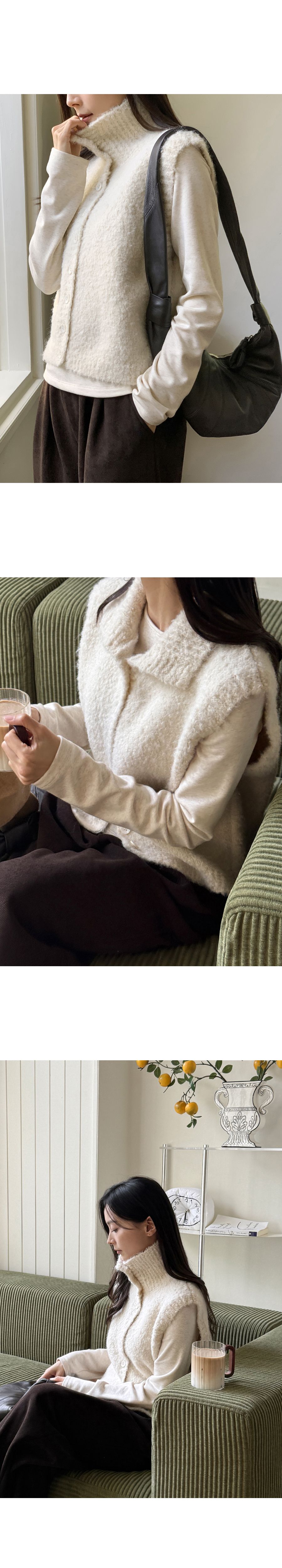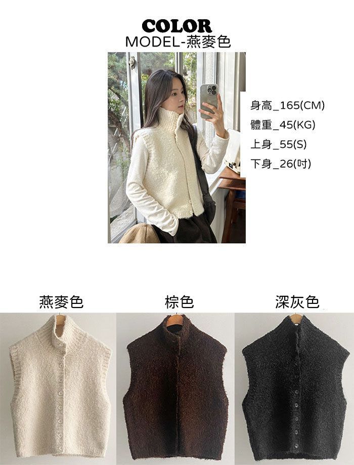 混羊毛/QQ毛/羔羊毛/開襟排釦/立領.高領/短版外套/無袖背心外套/無口袋 - 休閒居家渡假簡約百搭素面混羊毛高領背心外套高領外套針織背心針織外套燕麥色棕色深灰色