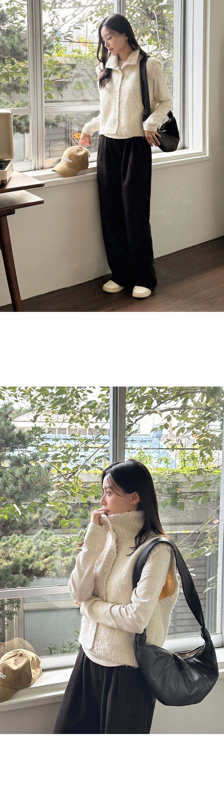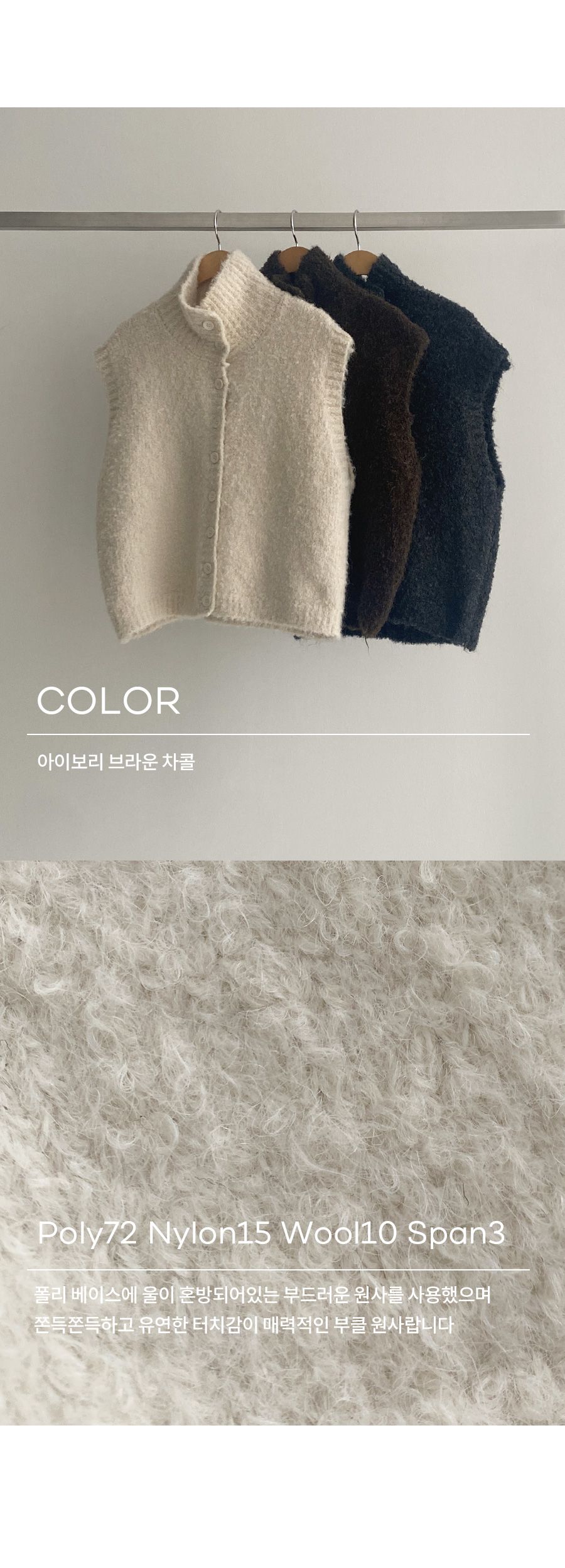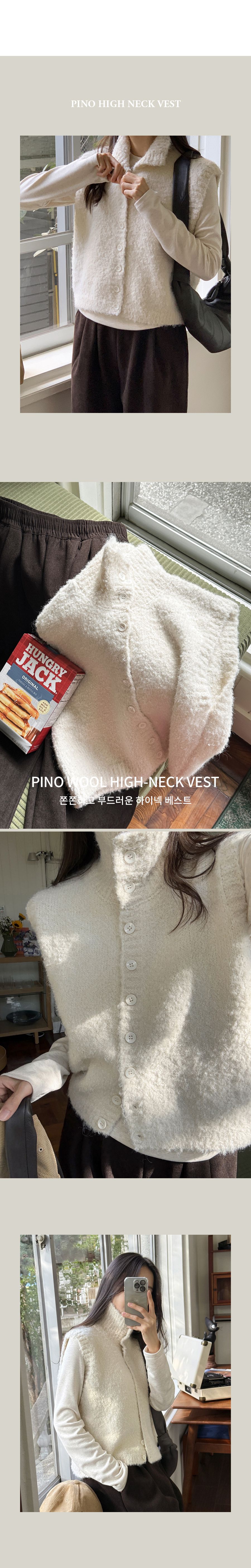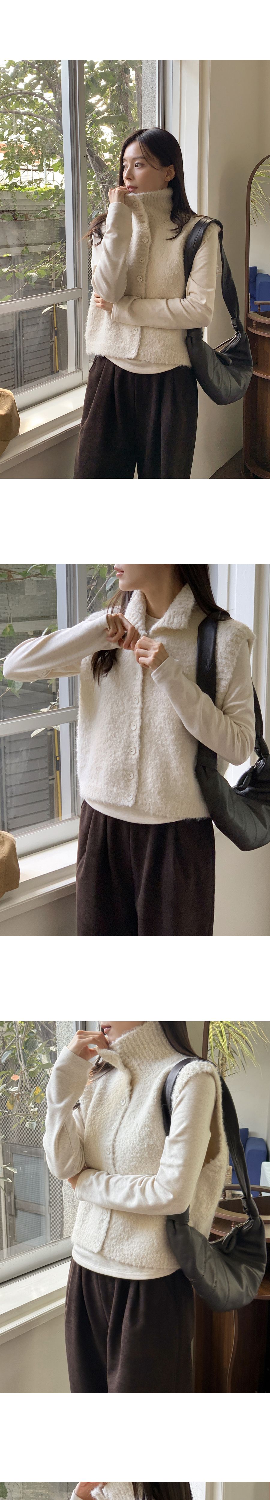 混羊毛/QQ毛/羔羊毛/開襟排釦/立領.高領/短版外套/無袖背心外套/無口袋 - 休閒居家渡假簡約百搭素面混羊毛高領背心外套高領外套針織背心針織外套燕麥色棕色深灰色