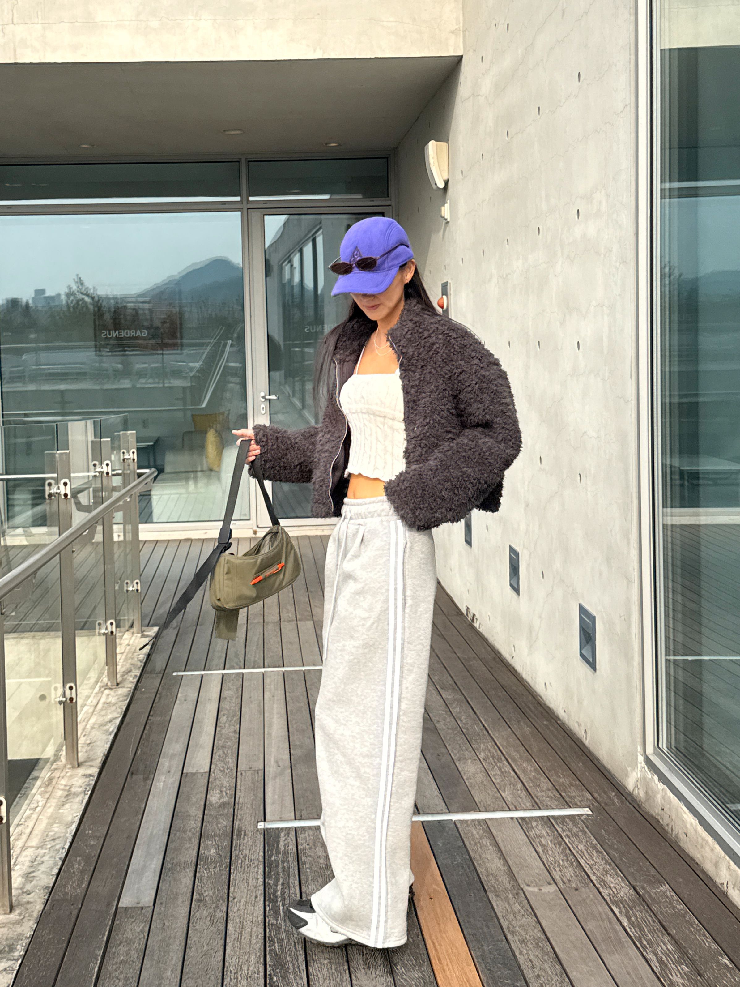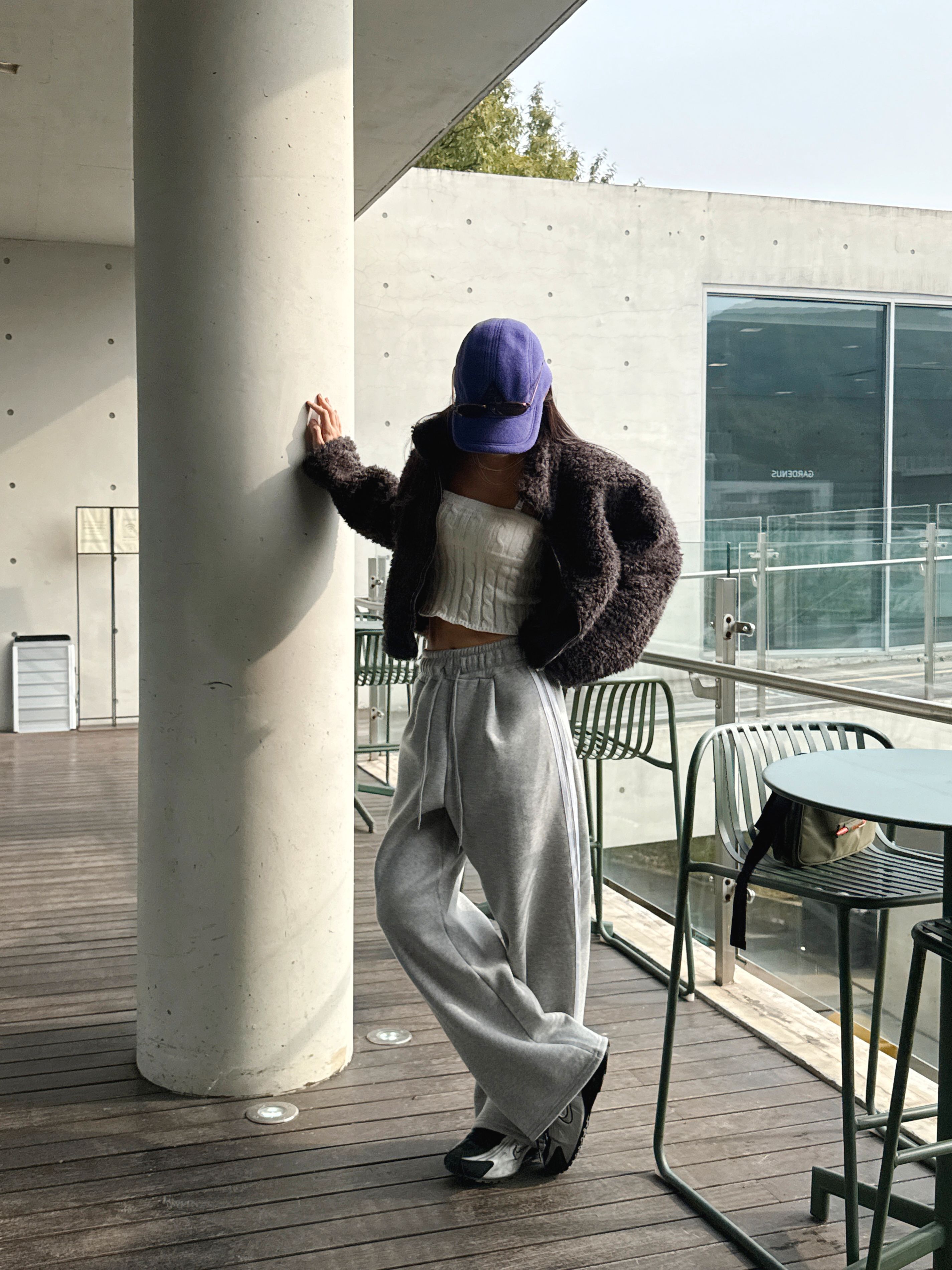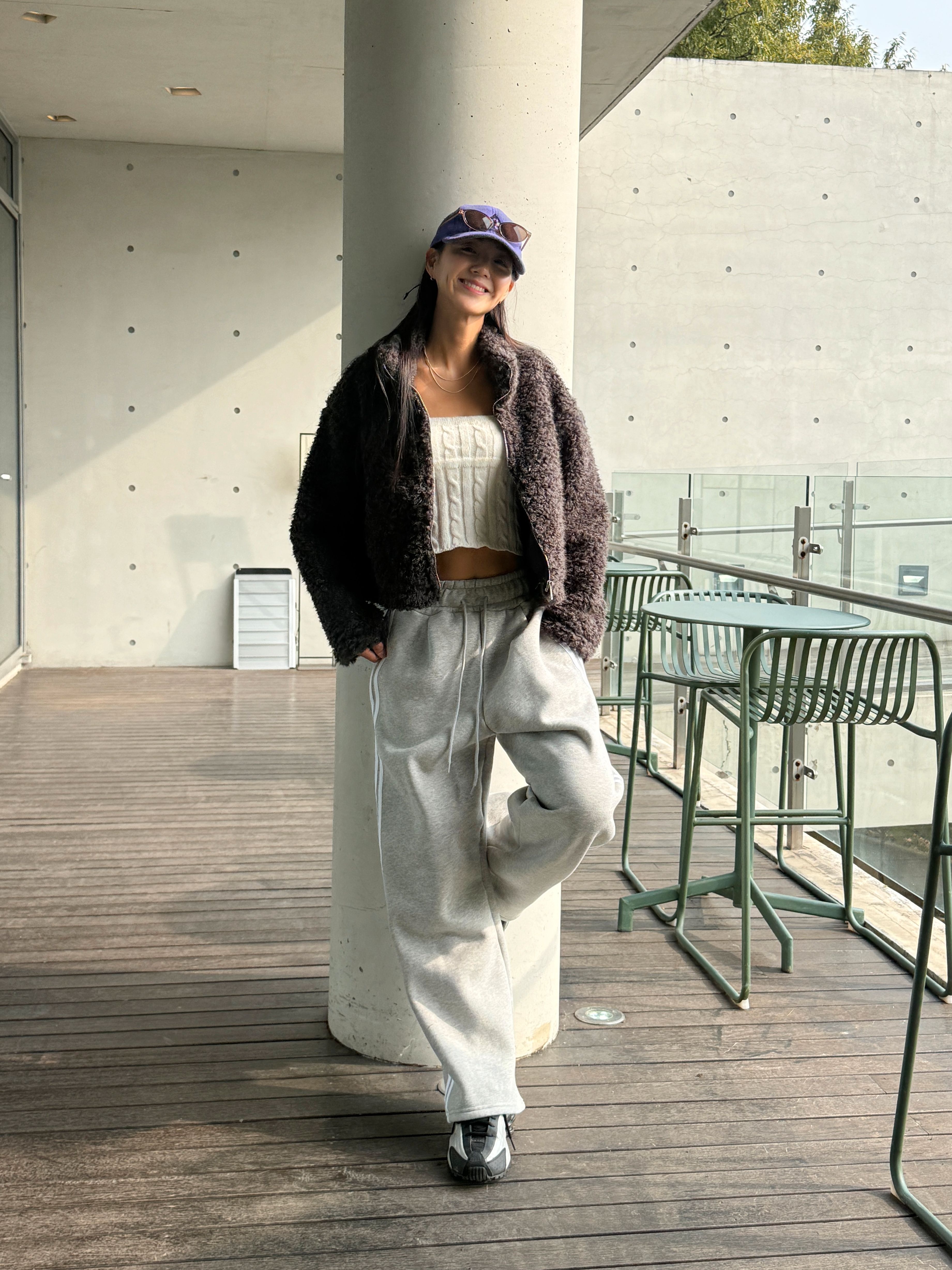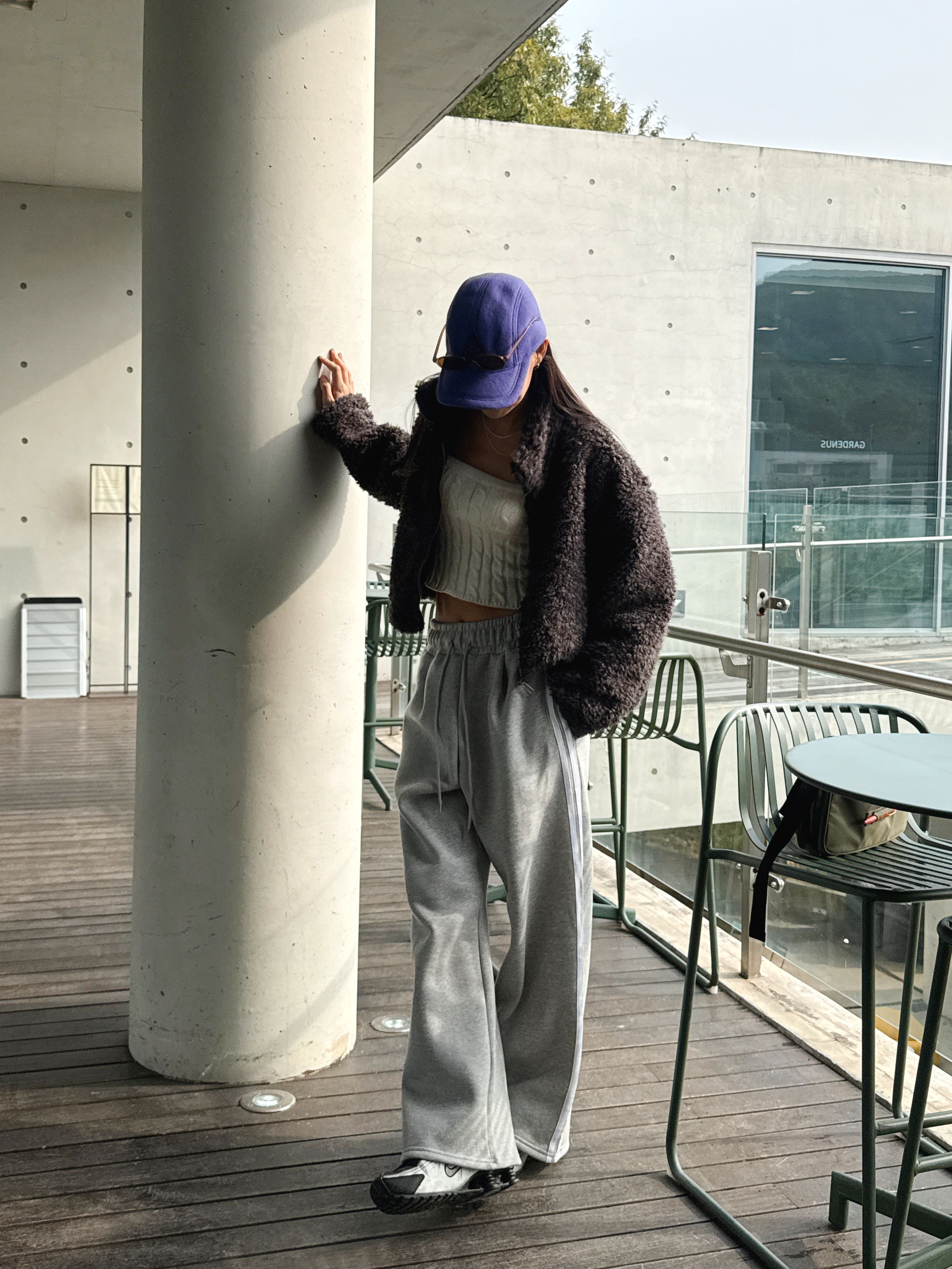 【C55788】韓國MIR 厚磅刷毛運動褲-側邊雙白條紋抽繩腰闊腿長褲