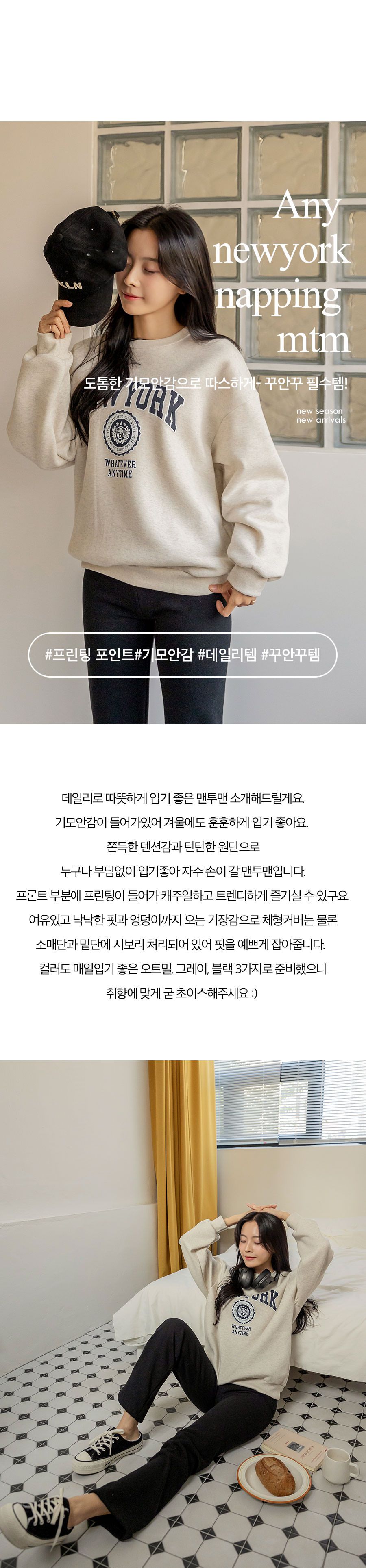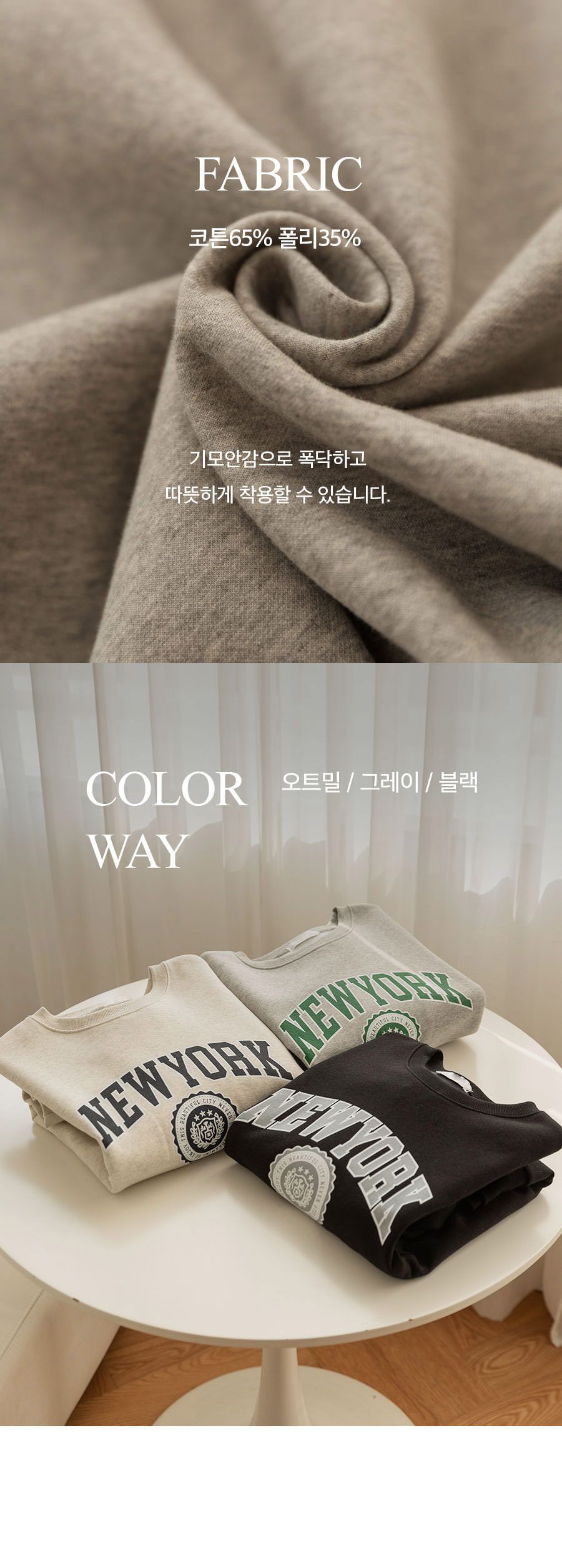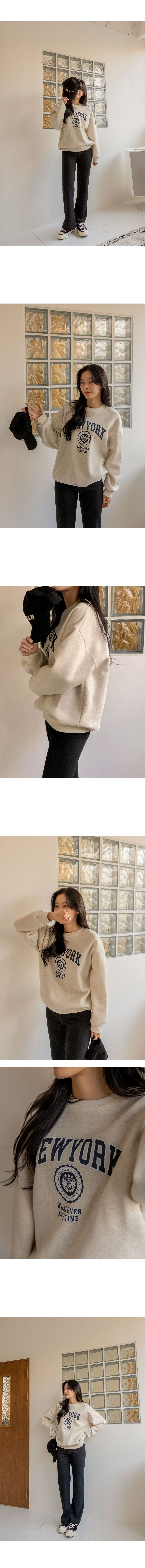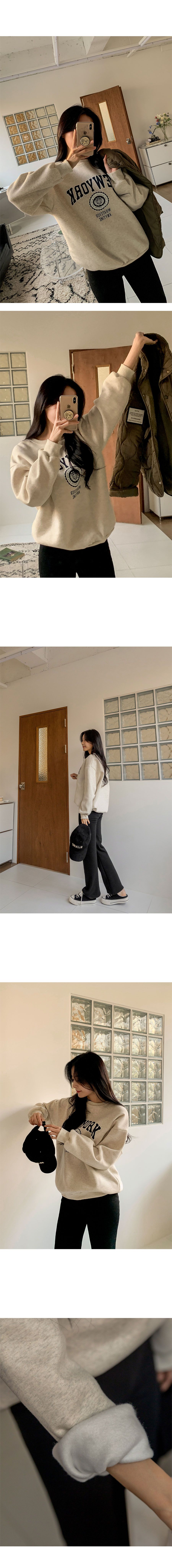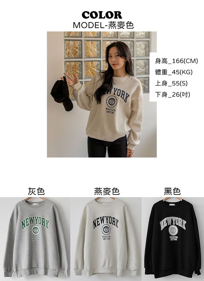 【C55796】韓國PUR 內刷毛字母上衣-紐約英文寬鬆長版厚磅長袖大學T★★