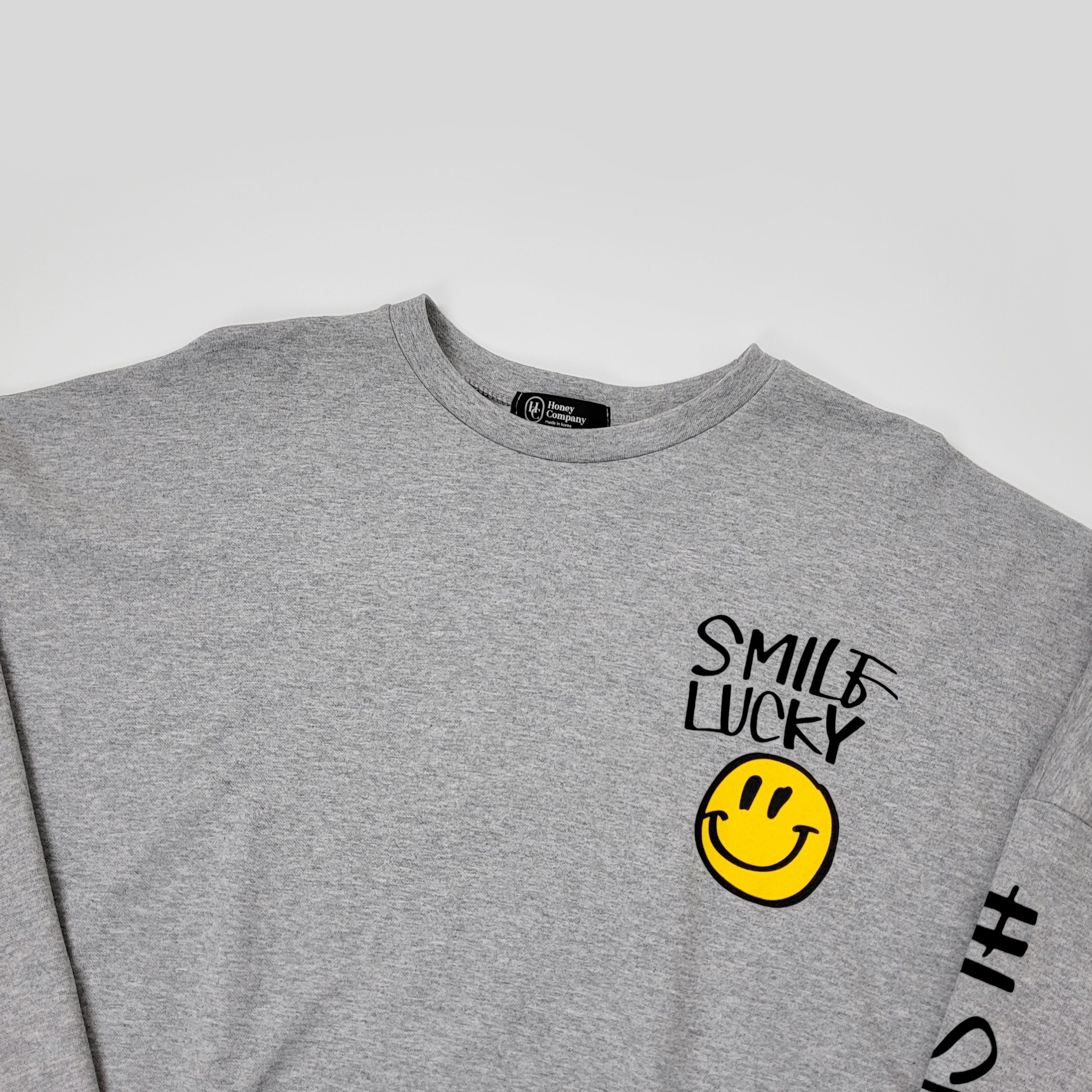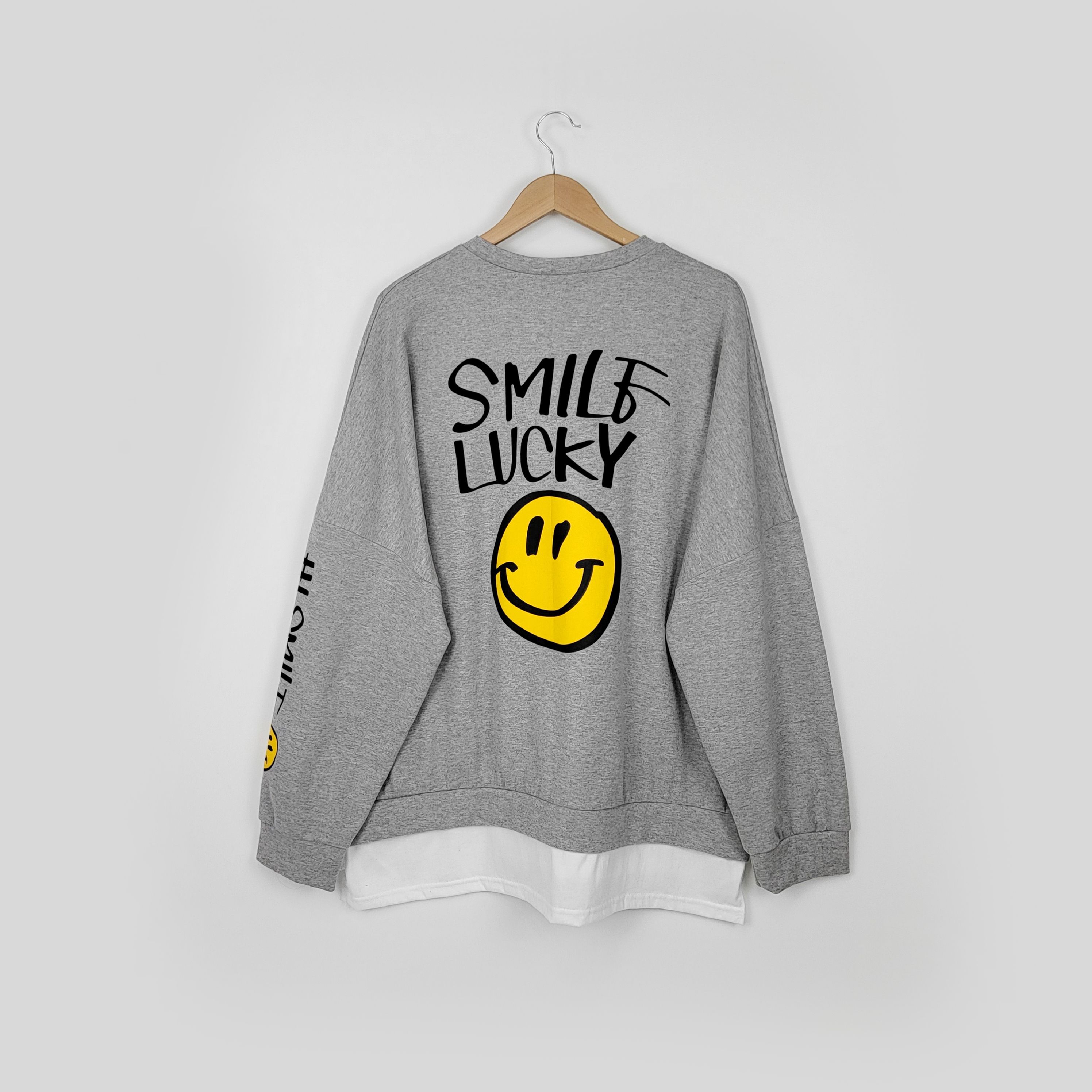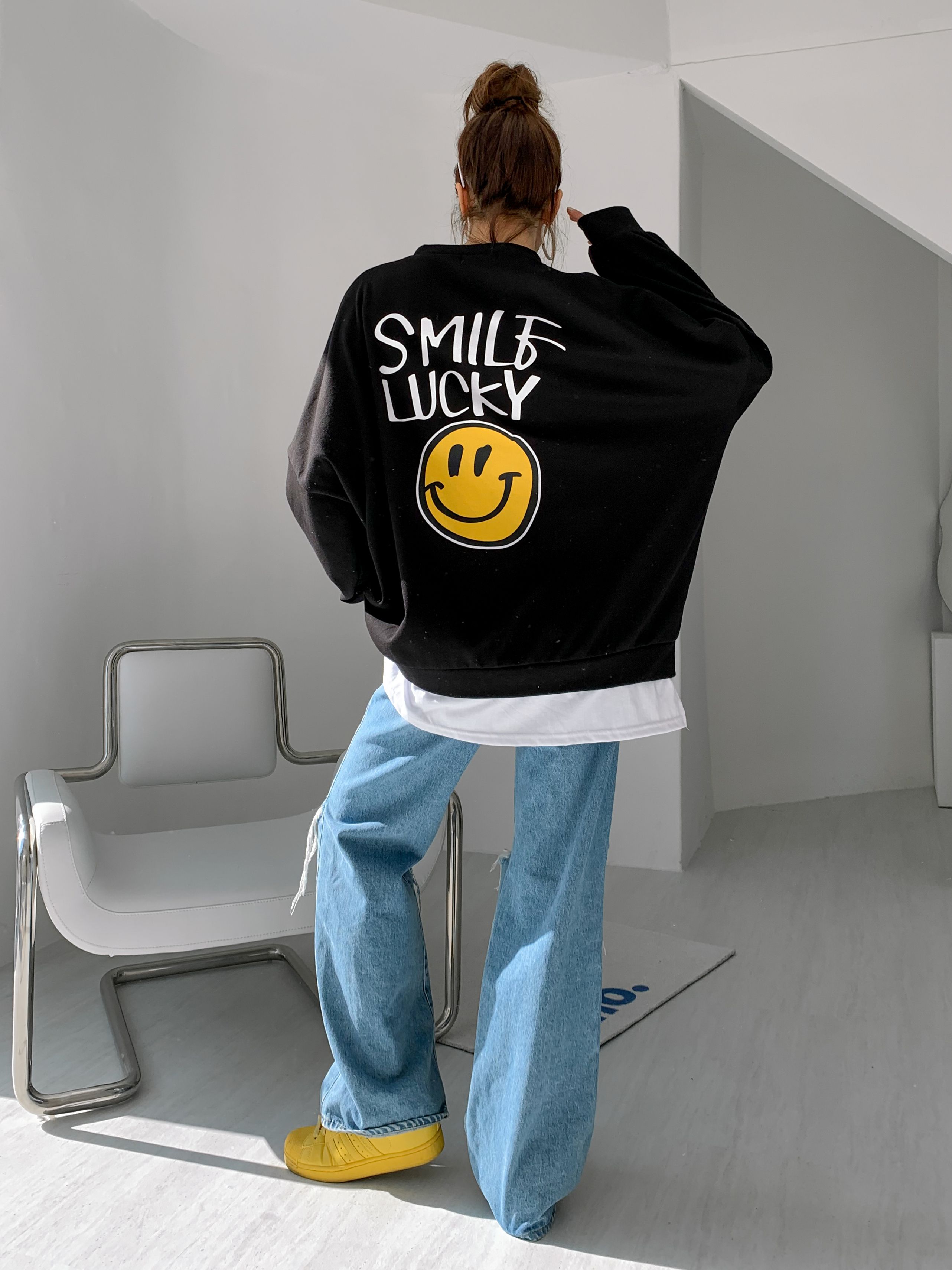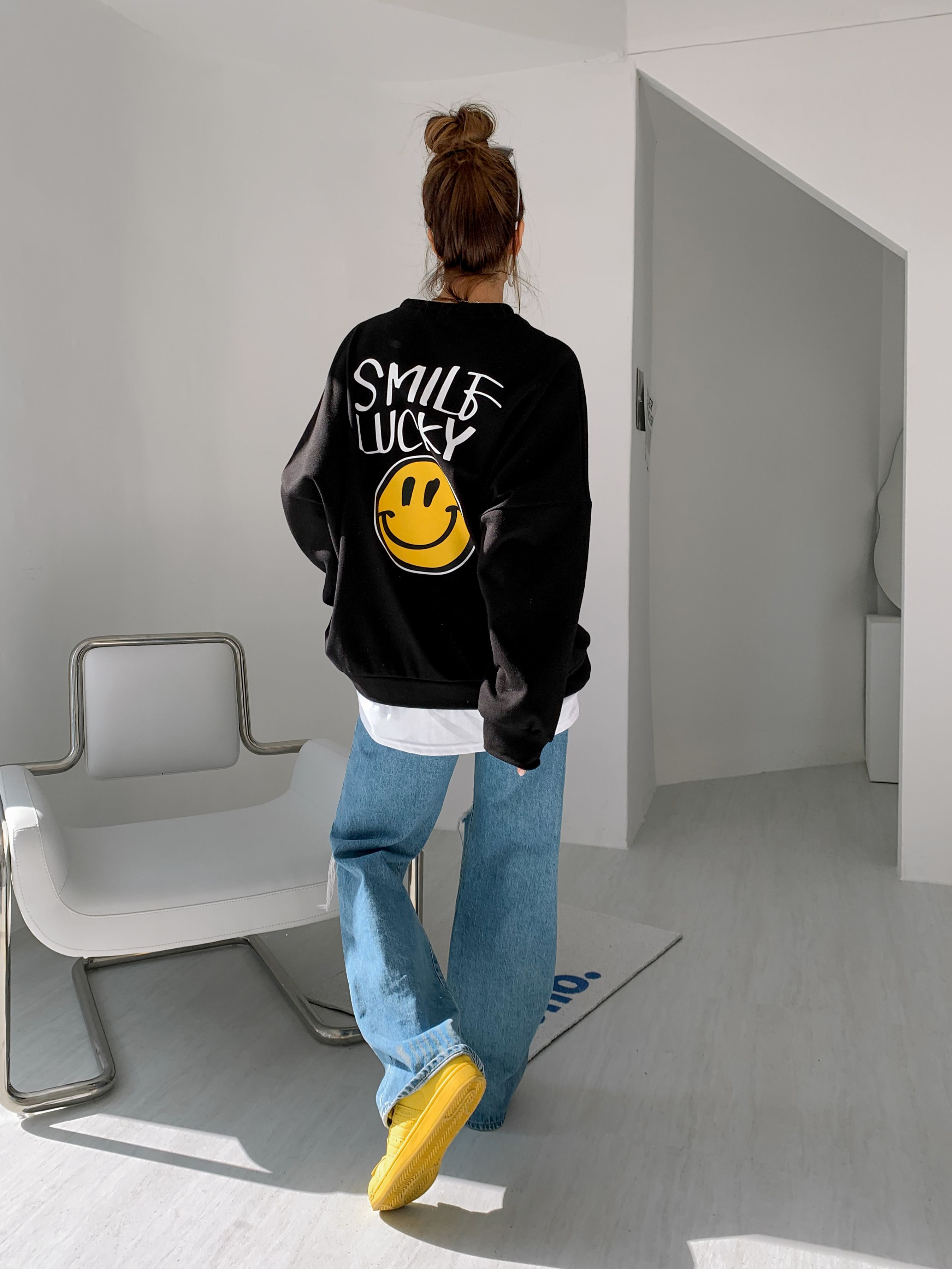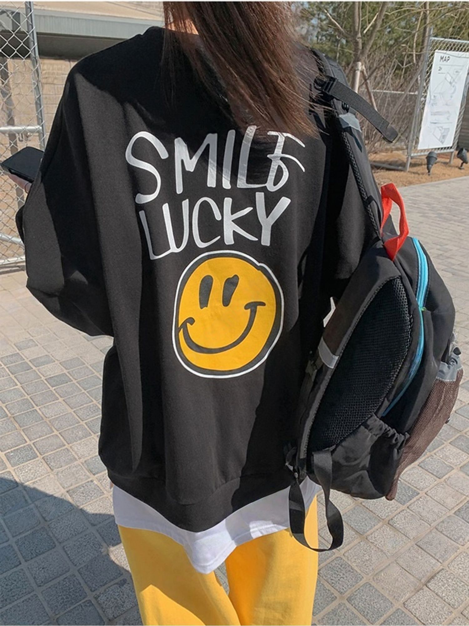 【C55797】韓國BHN 假兩件笑臉上衣-好氣色寬鬆長版微笑印花字母長袖★★