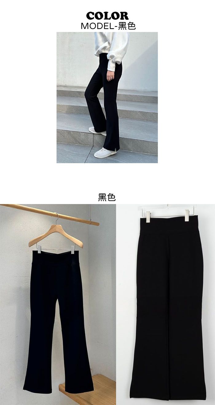 【C55803】韓國NOL 高腰收腹喇叭褲-素面加寬褲頭褲腳開衩彈力長褲★★