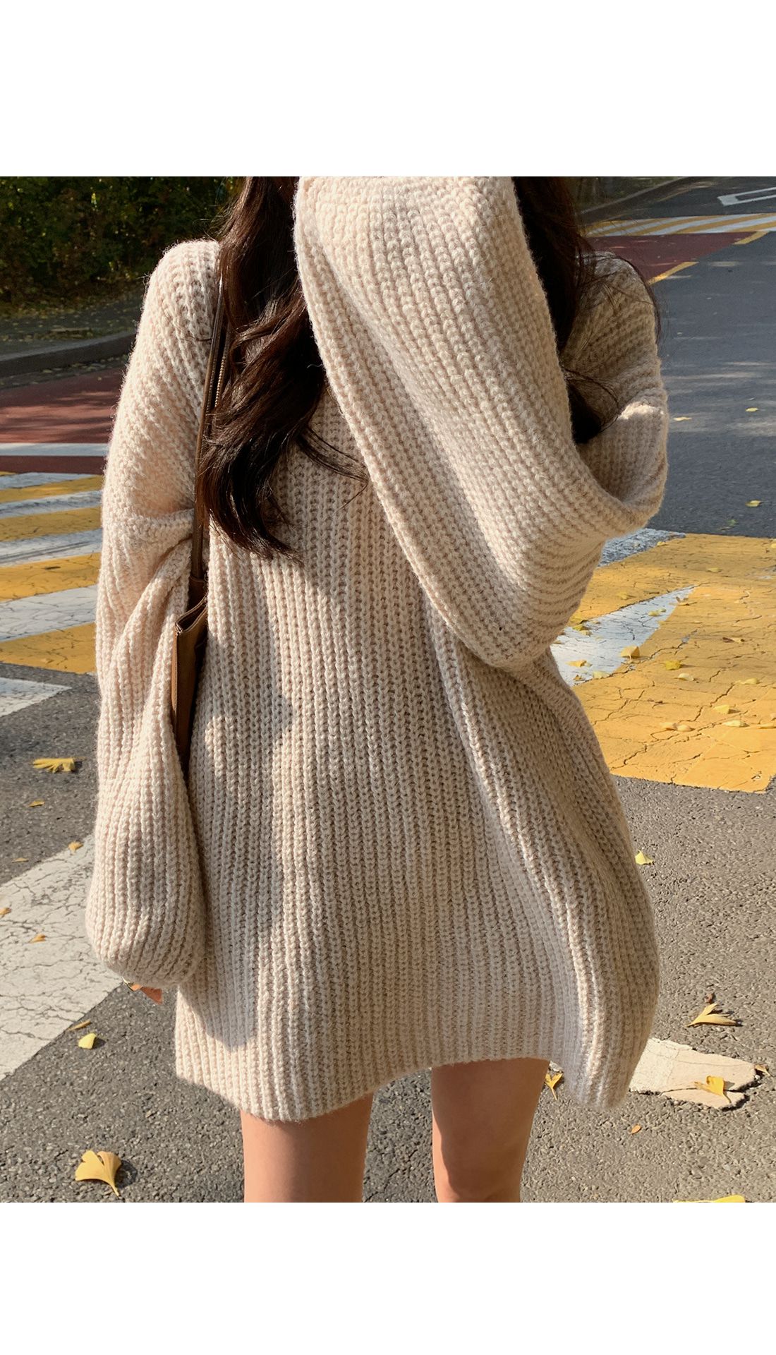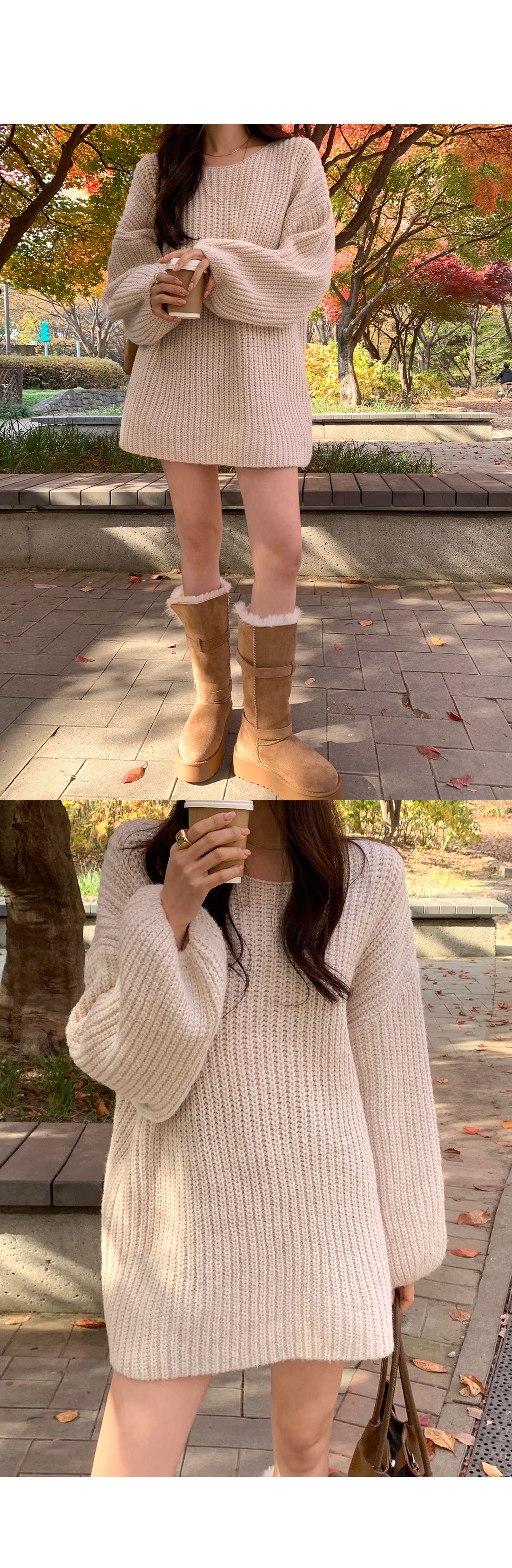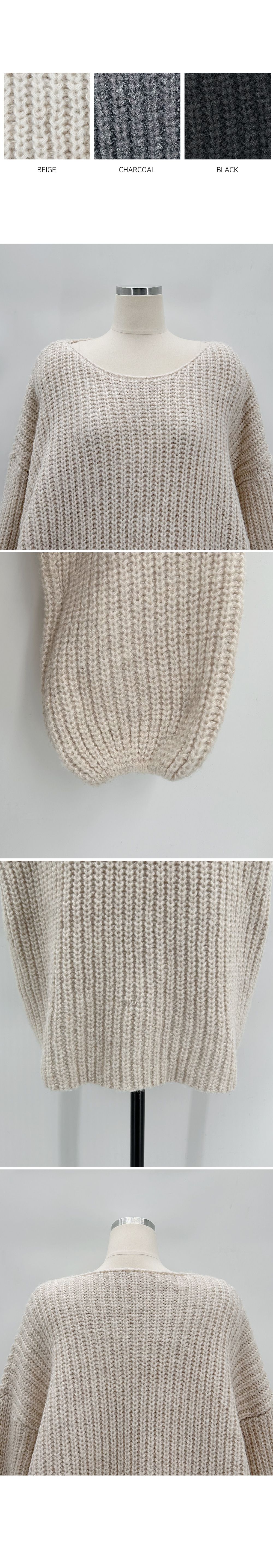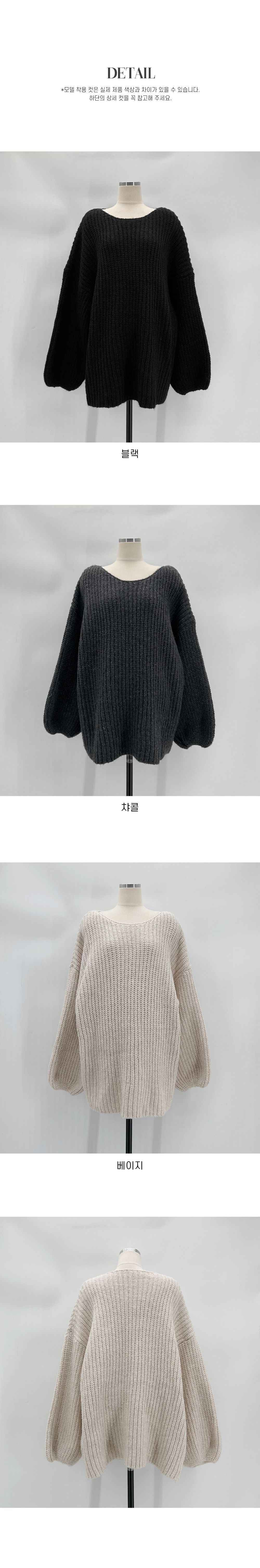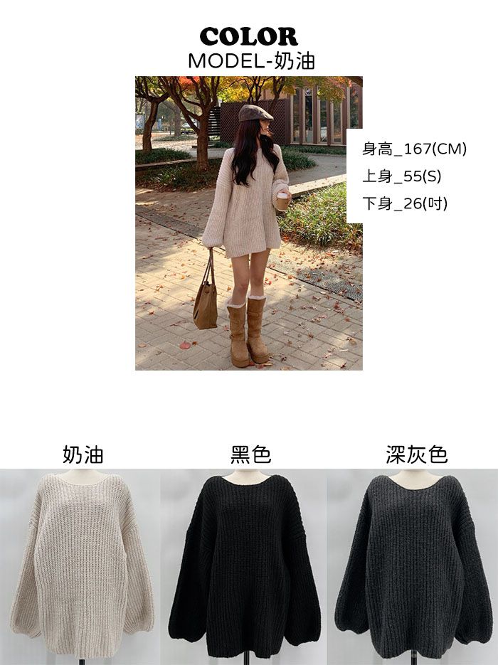 【C55815】韓國TMO 泡泡袖長版上衣-粗鉤針素面U領寬鬆長袖針織衫★★