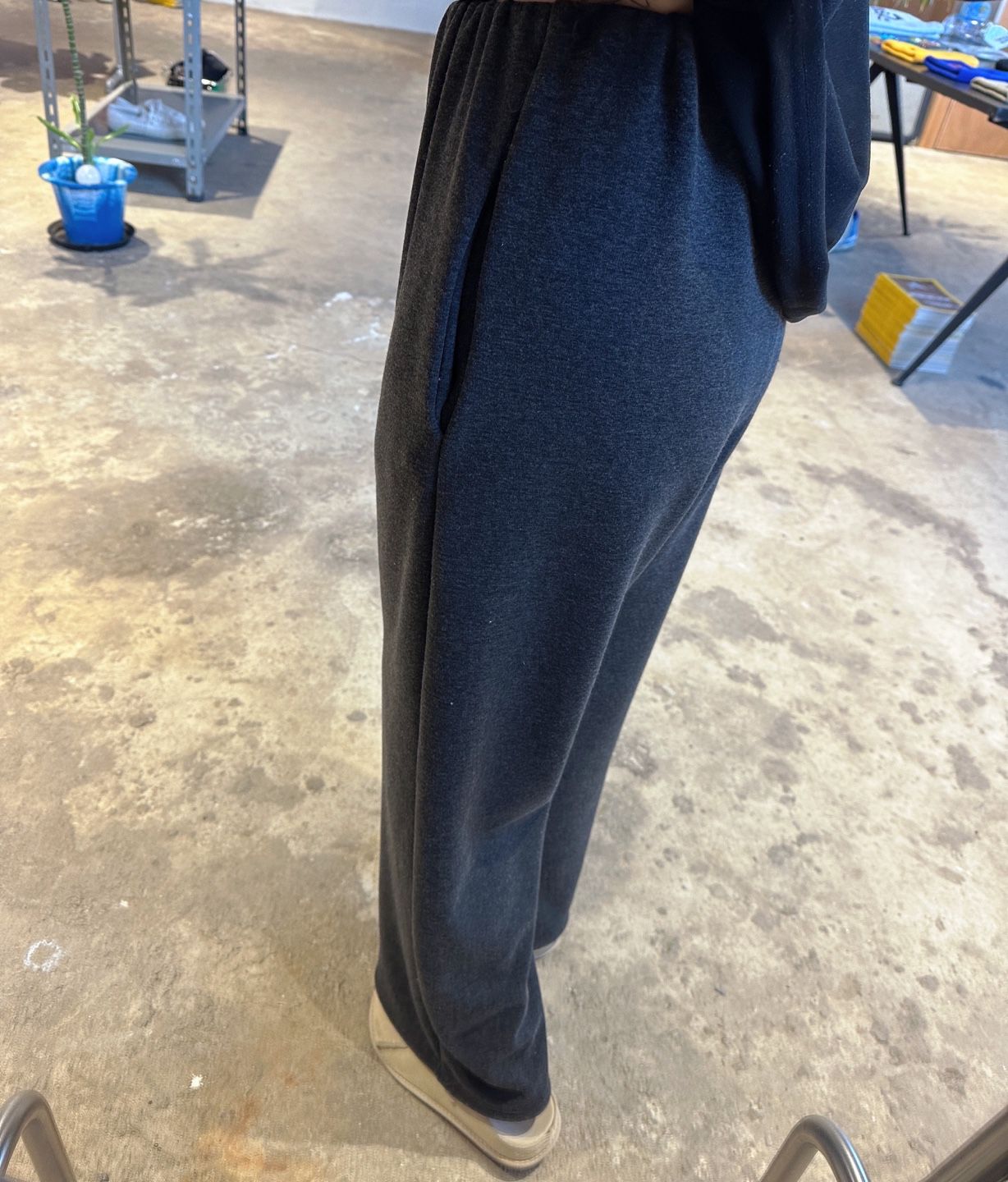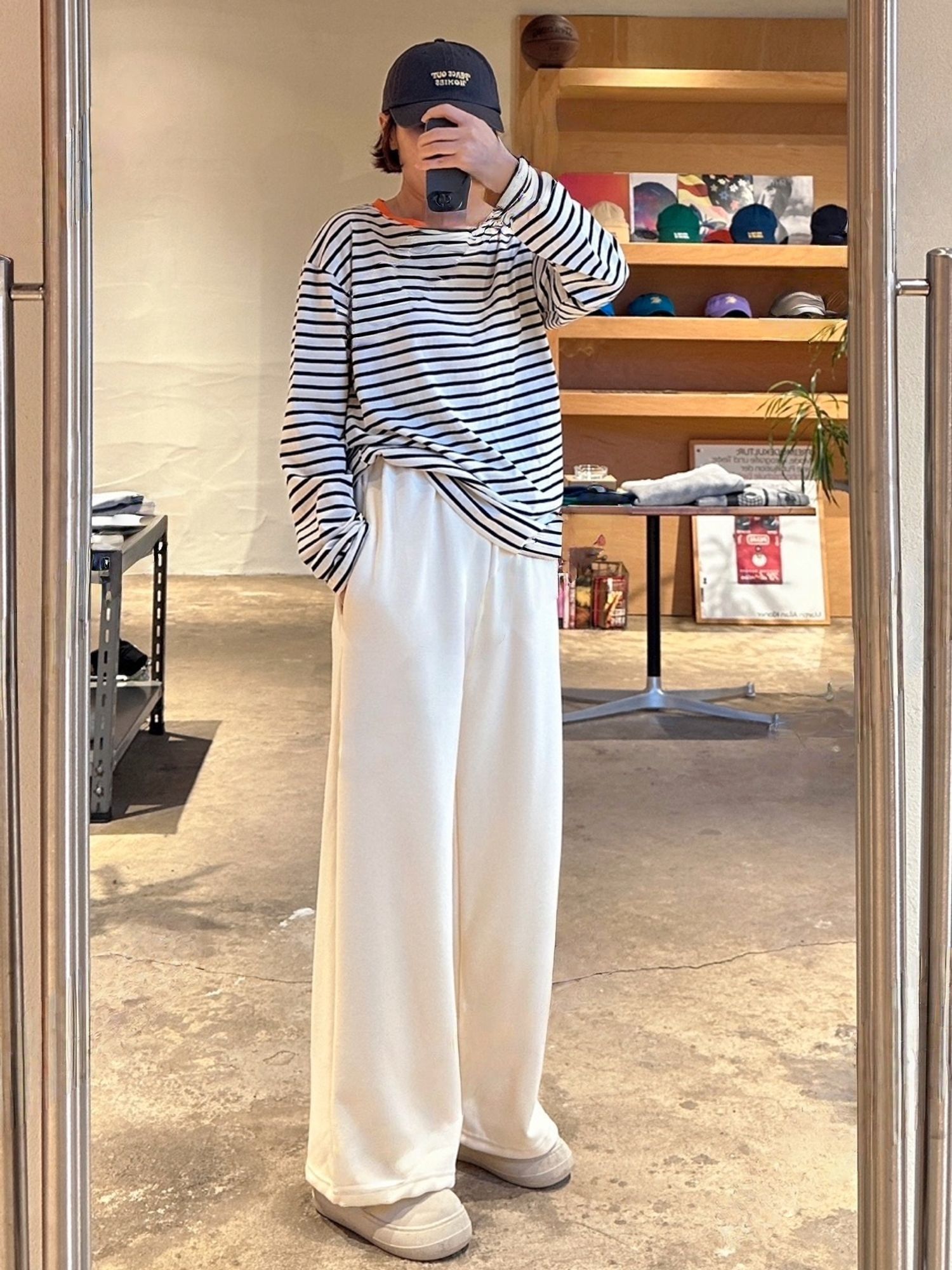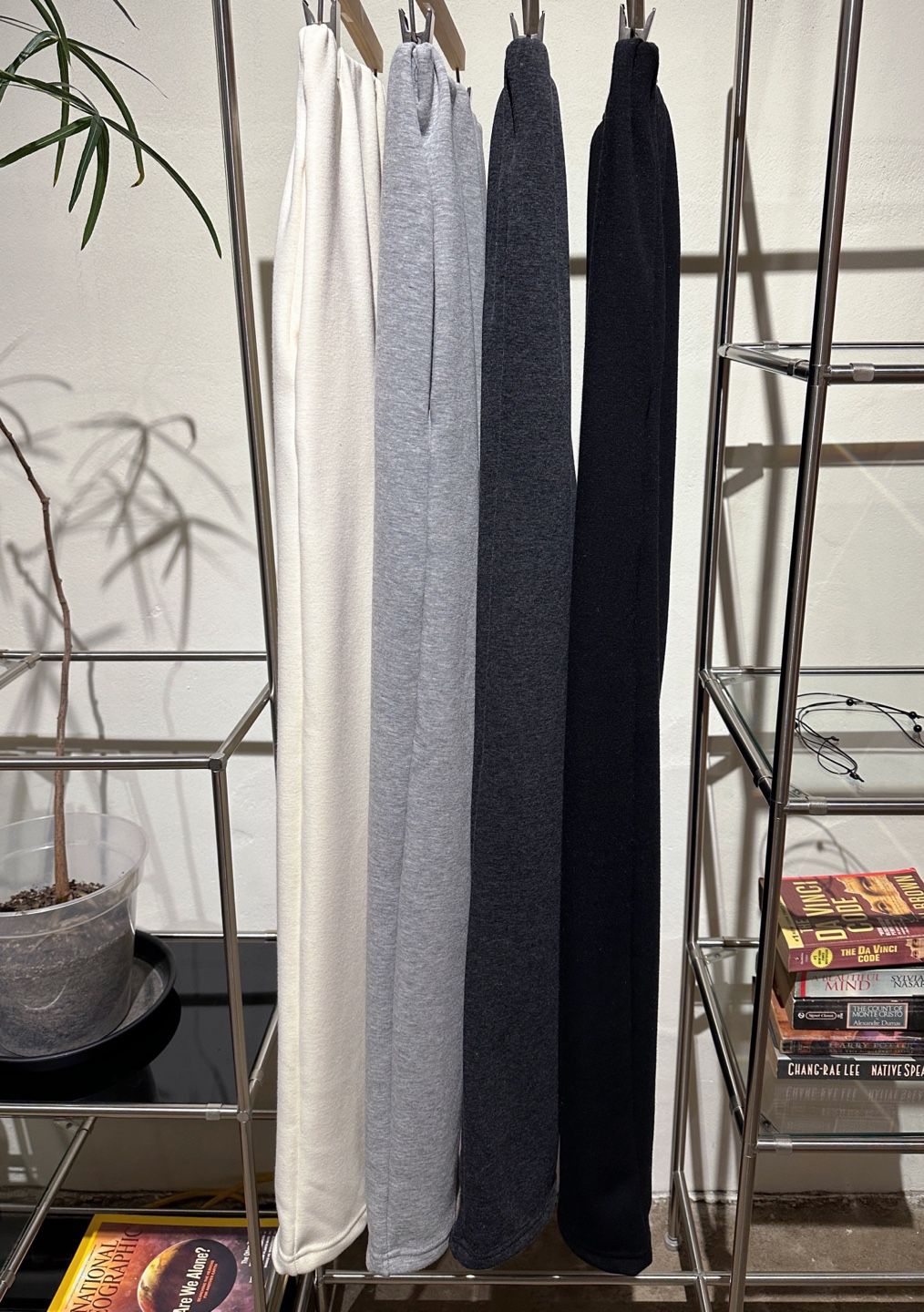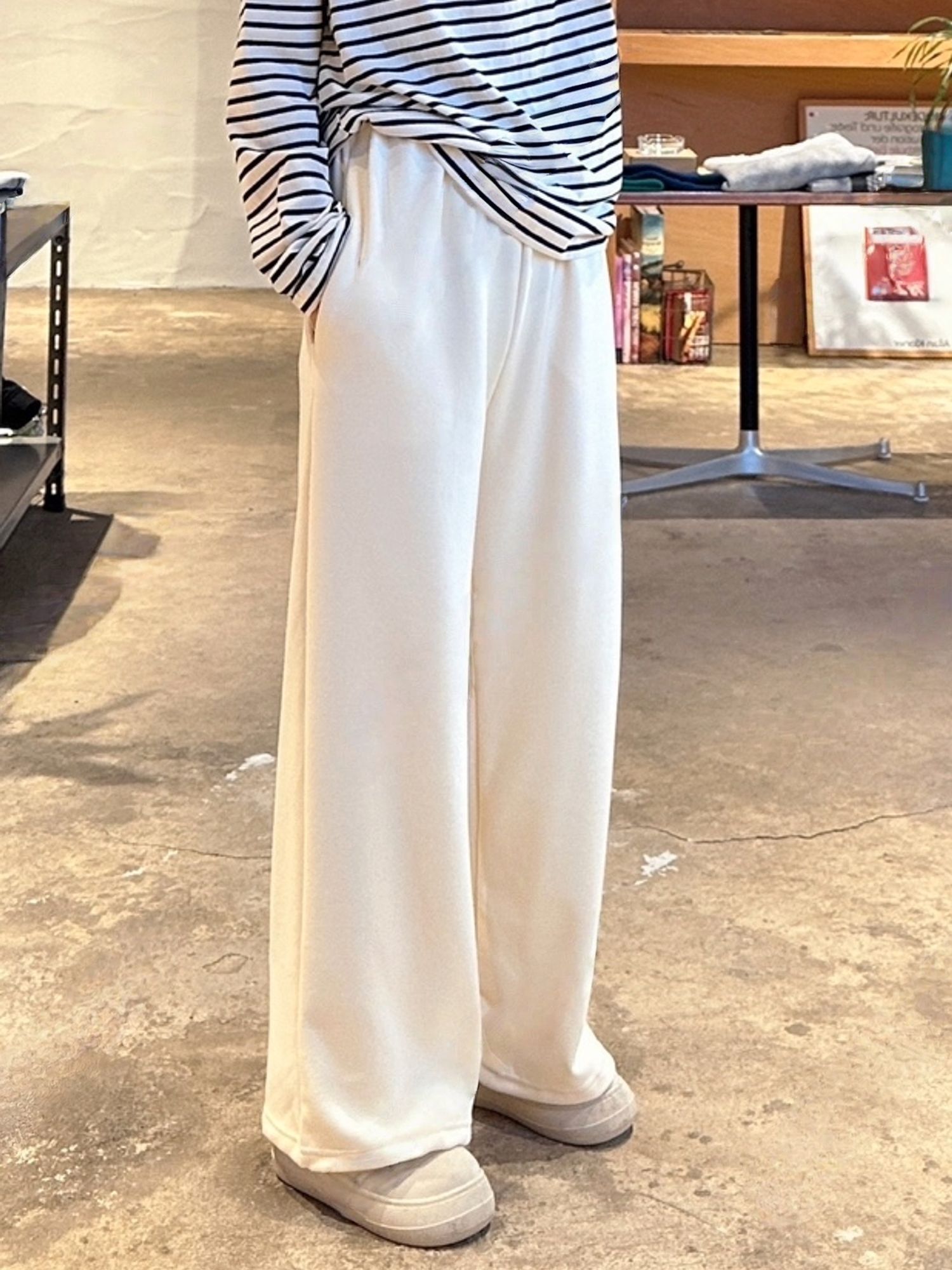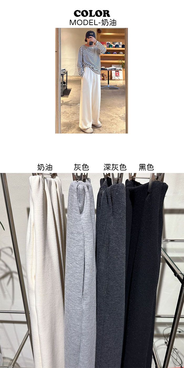 厚磅長褲/內水貂毛/全腰鬆緊/隱形反摺褲頭/雙口袋/直筒褲/寬褲 - 休閒居家簡約百搭素面水貂毛寬褲長褲奶油色黑色深灰色灰色