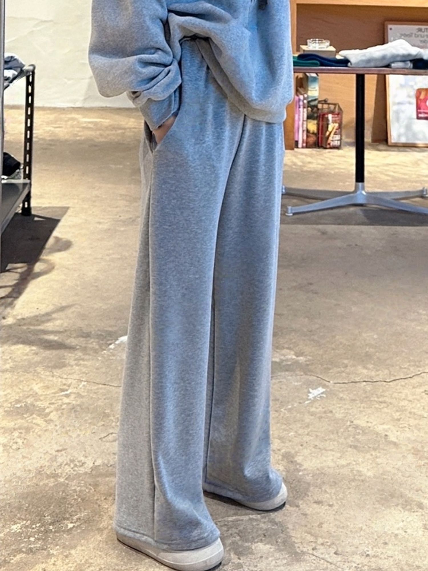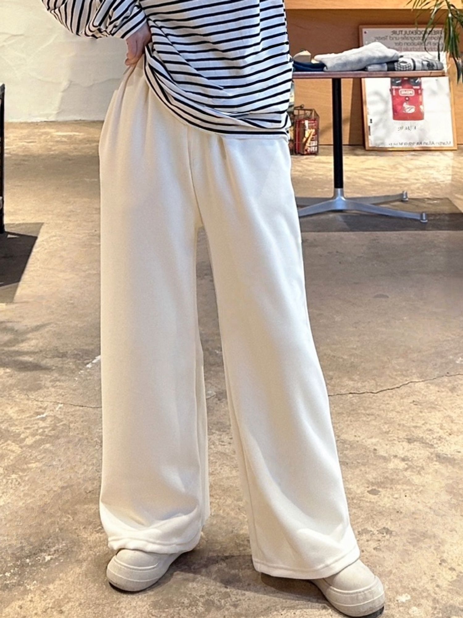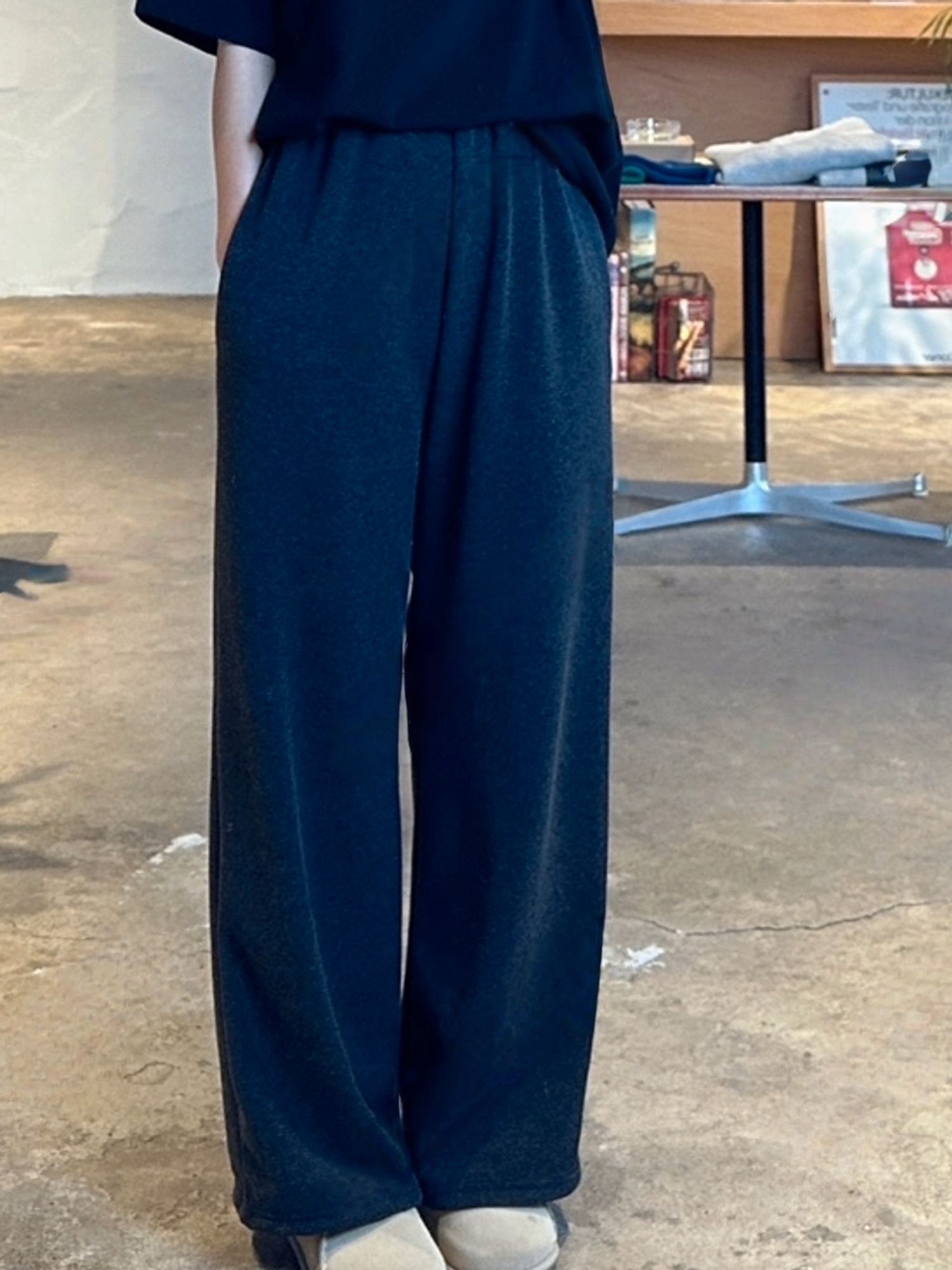 【C55818】韓國TPK 水貂毛寬褲-厚磅內刷毛素面全腰鬆緊直筒長褲★★