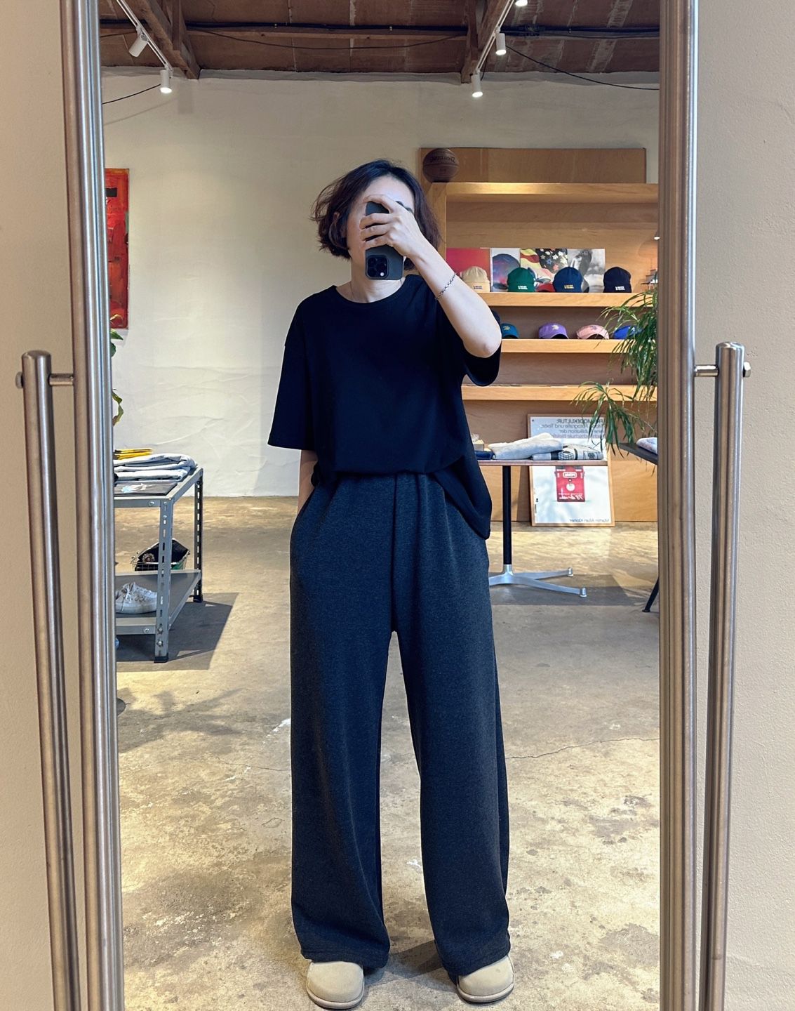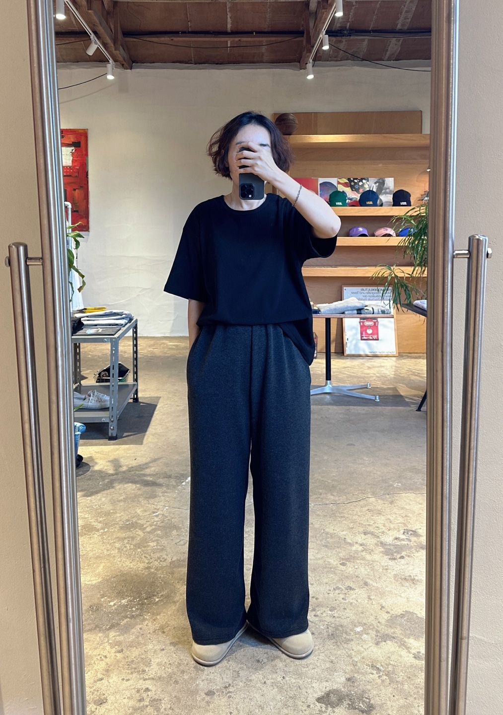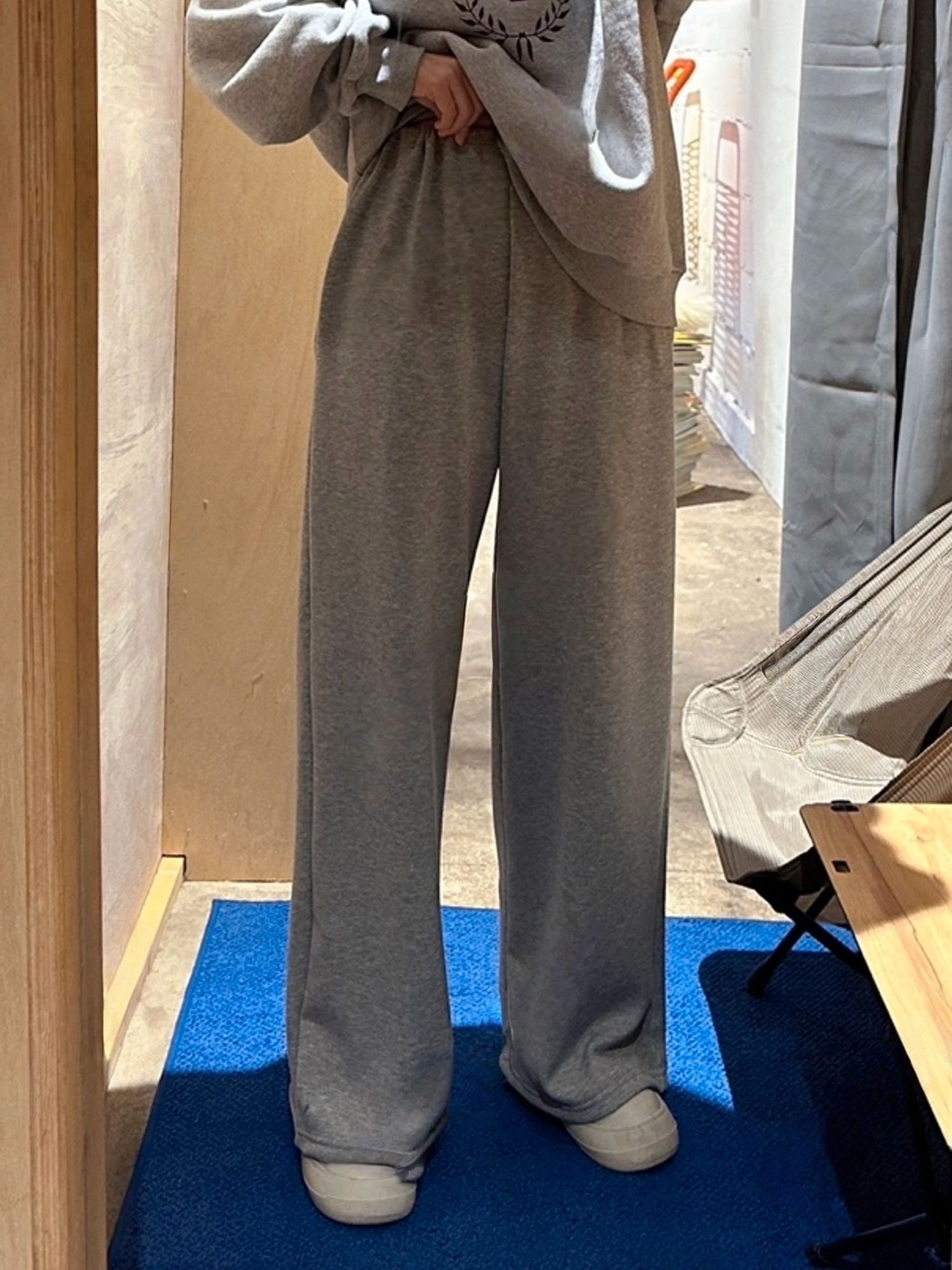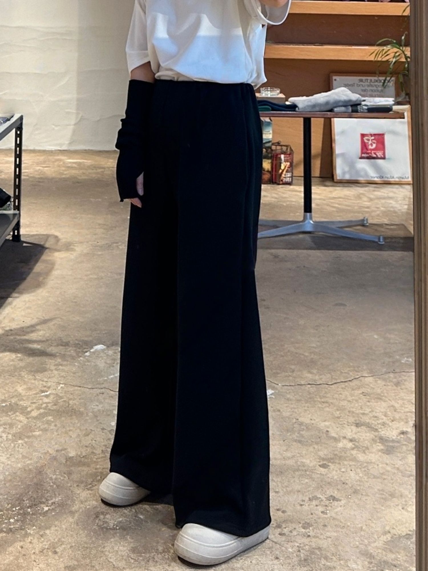 【C55818】韓國TPK 水貂毛寬褲-厚磅內刷毛素面全腰鬆緊直筒長褲★★