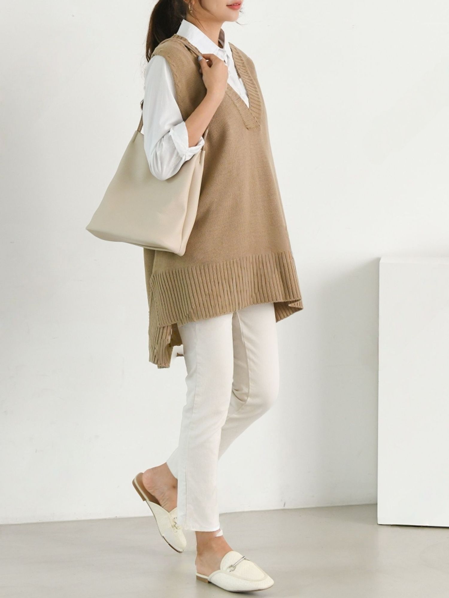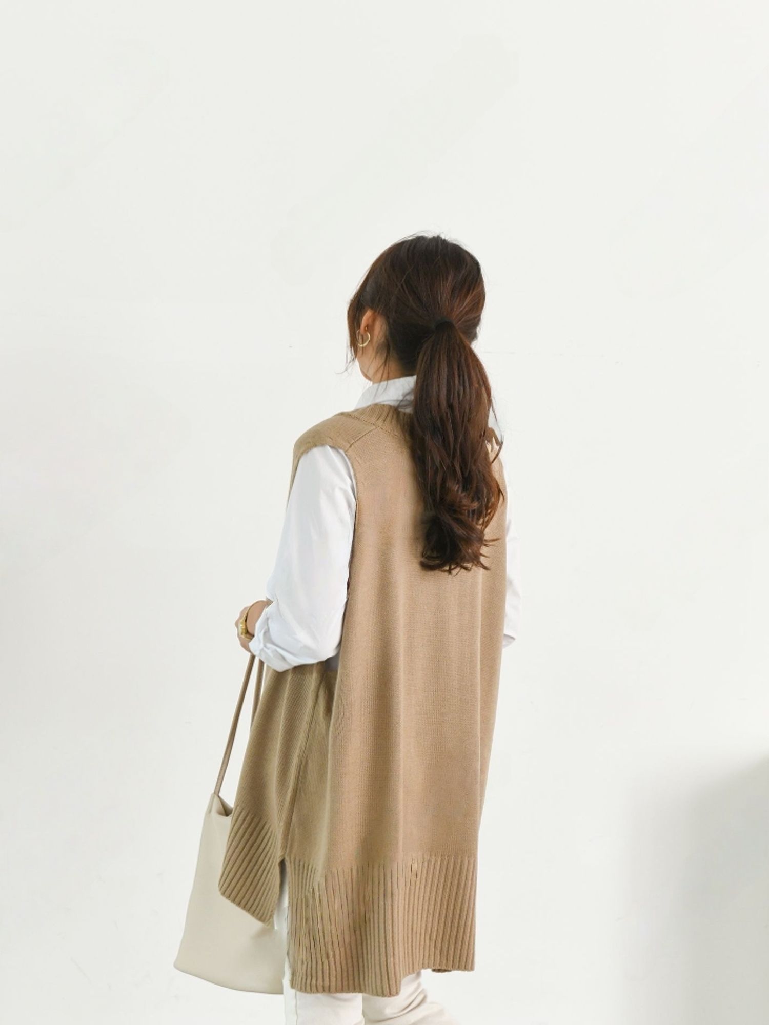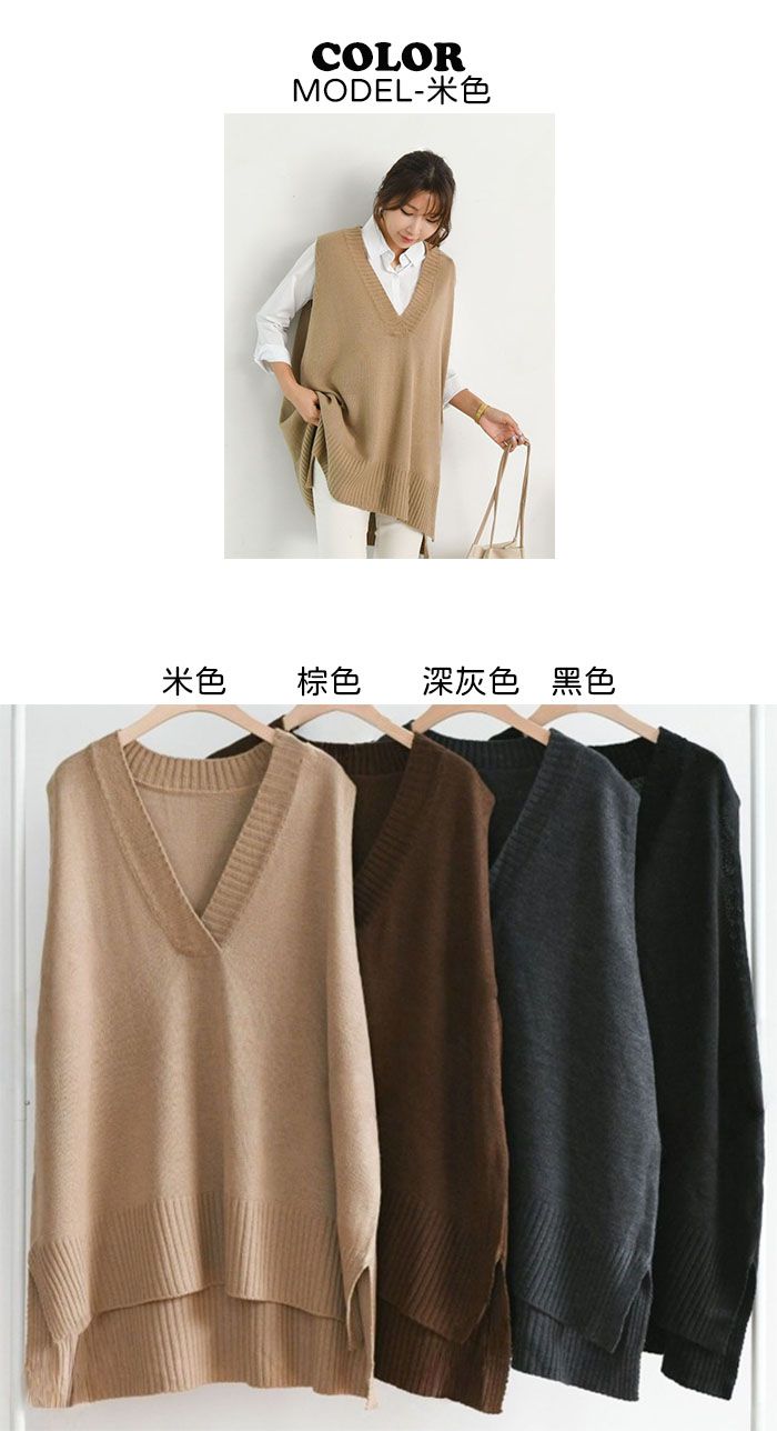 【C55831】韓國NVN 長版針織背心-素面寬鬆A字V領側衩無袖上衣外搭★★