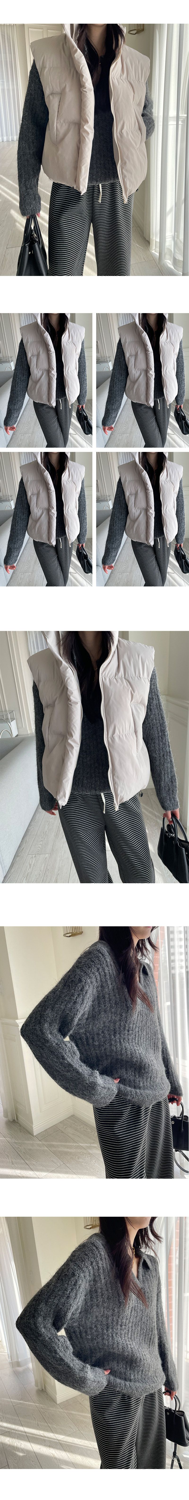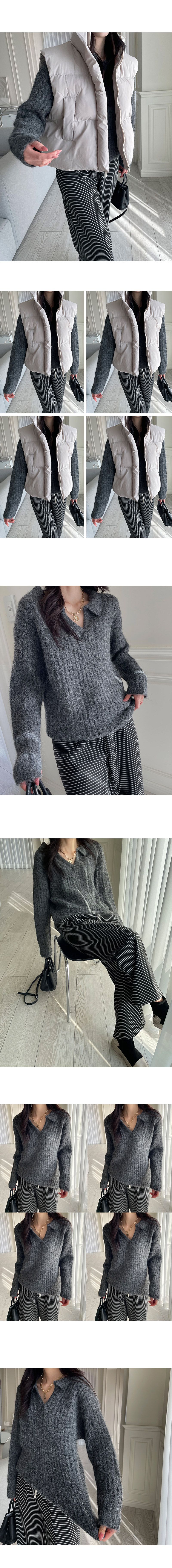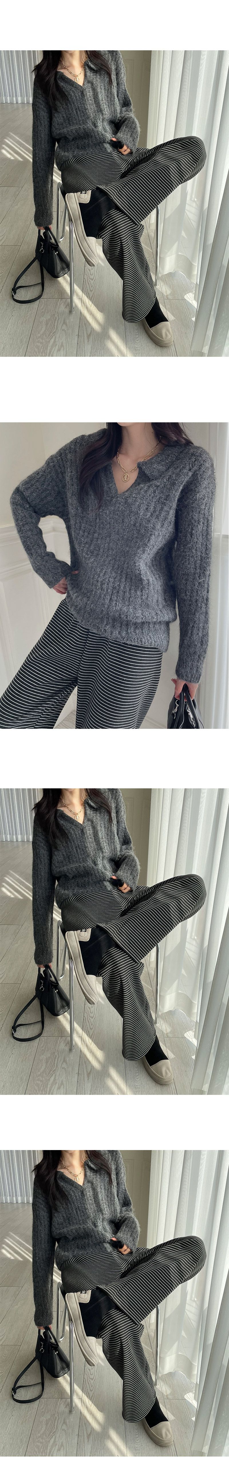 【C55834】韓國MNR 翻領羊毛針織衫-慵懶感素面坑條V領長袖上衣