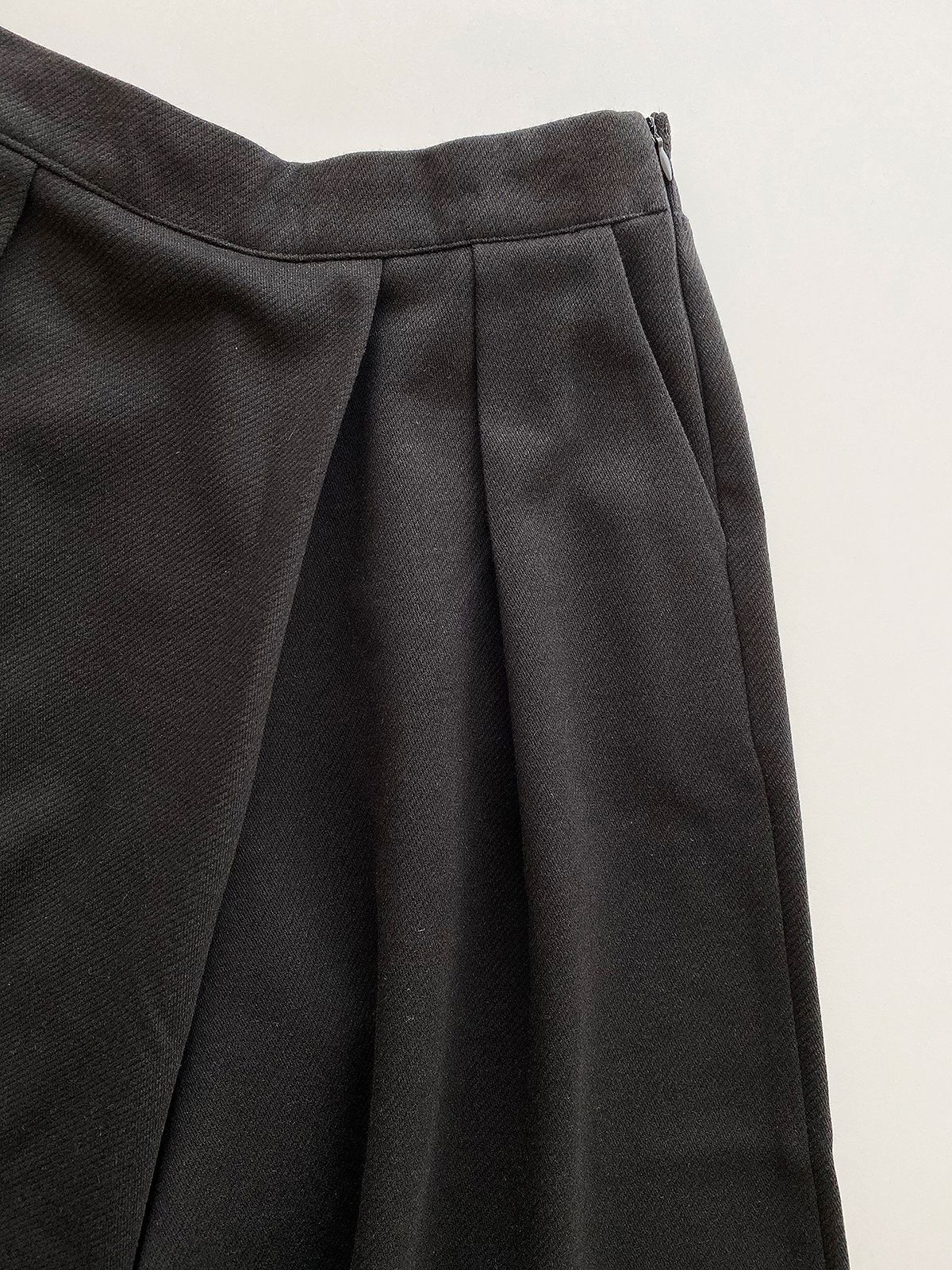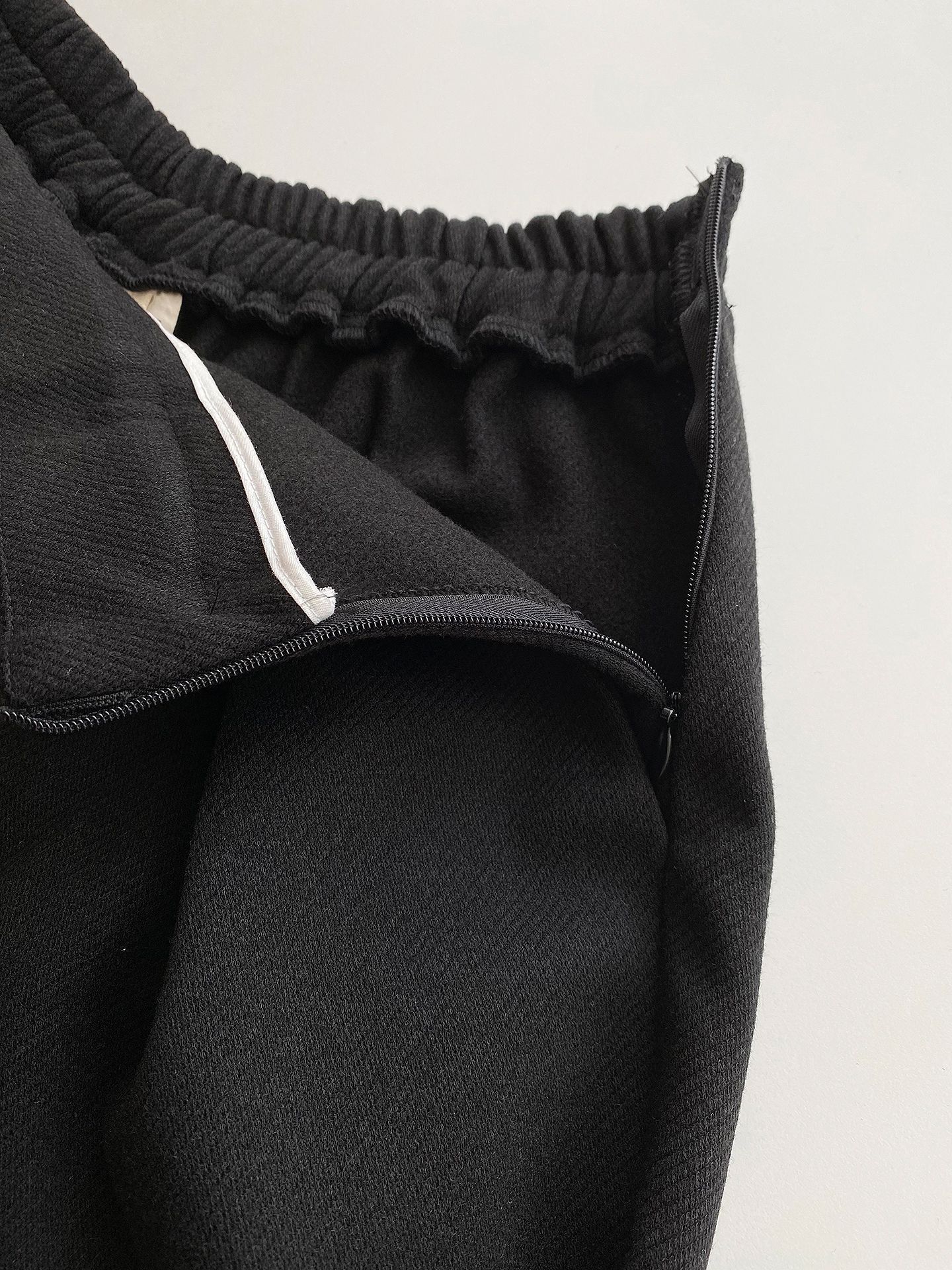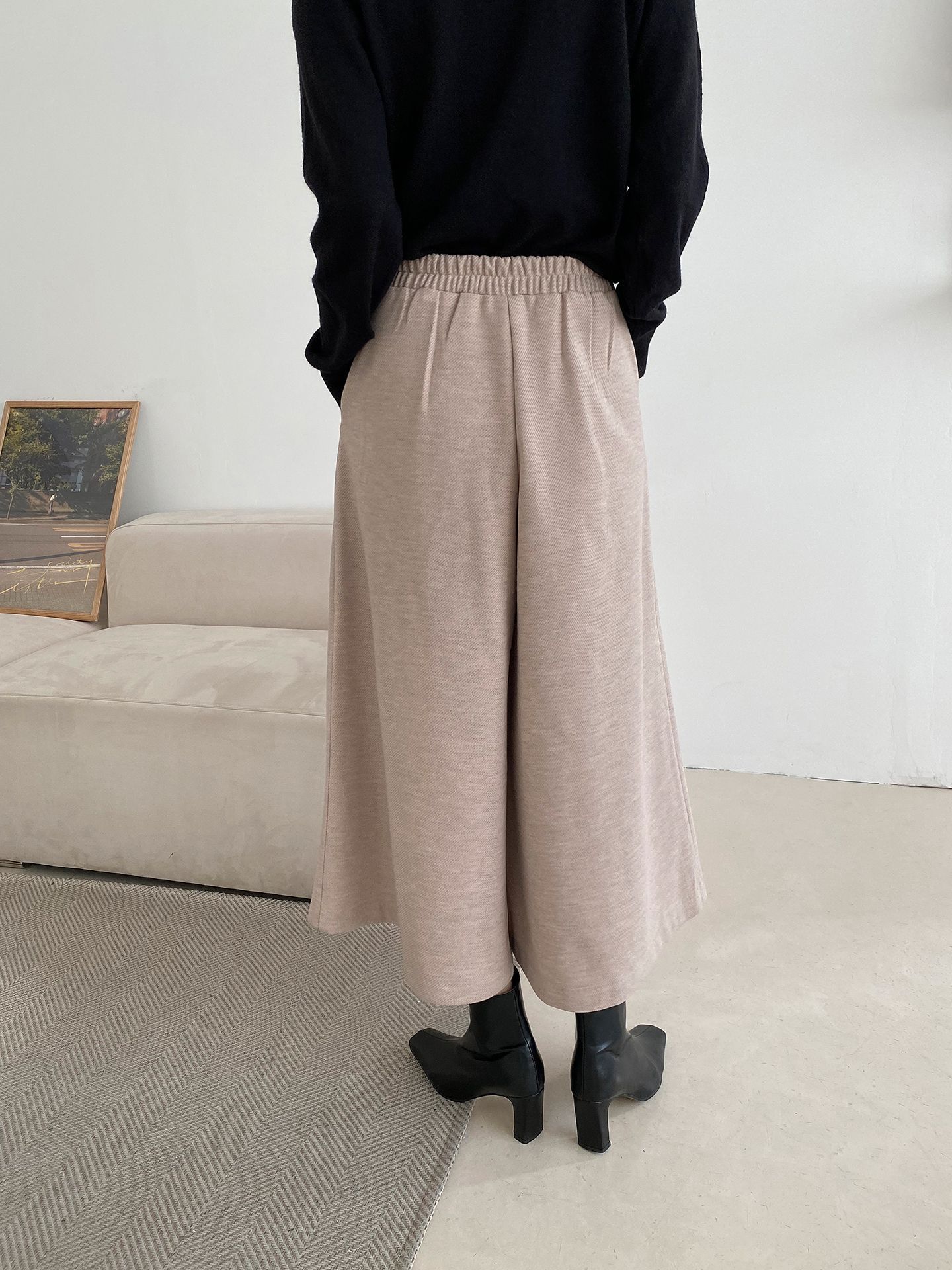 【C55841】韓國HAF 抓褶腰毛呢寬褲-素面厚磅內磨毛後腰鬆緊九分褲裙★★