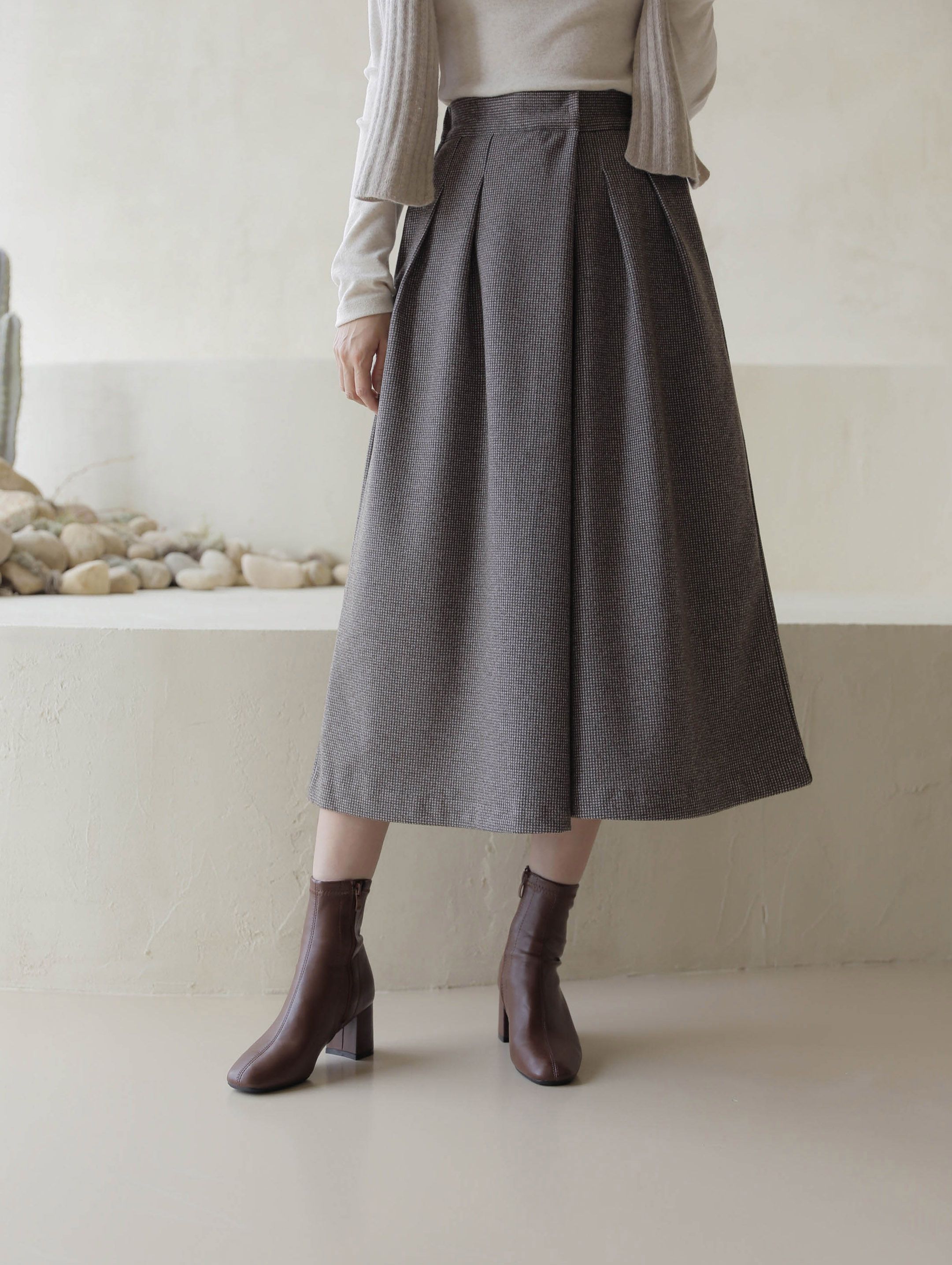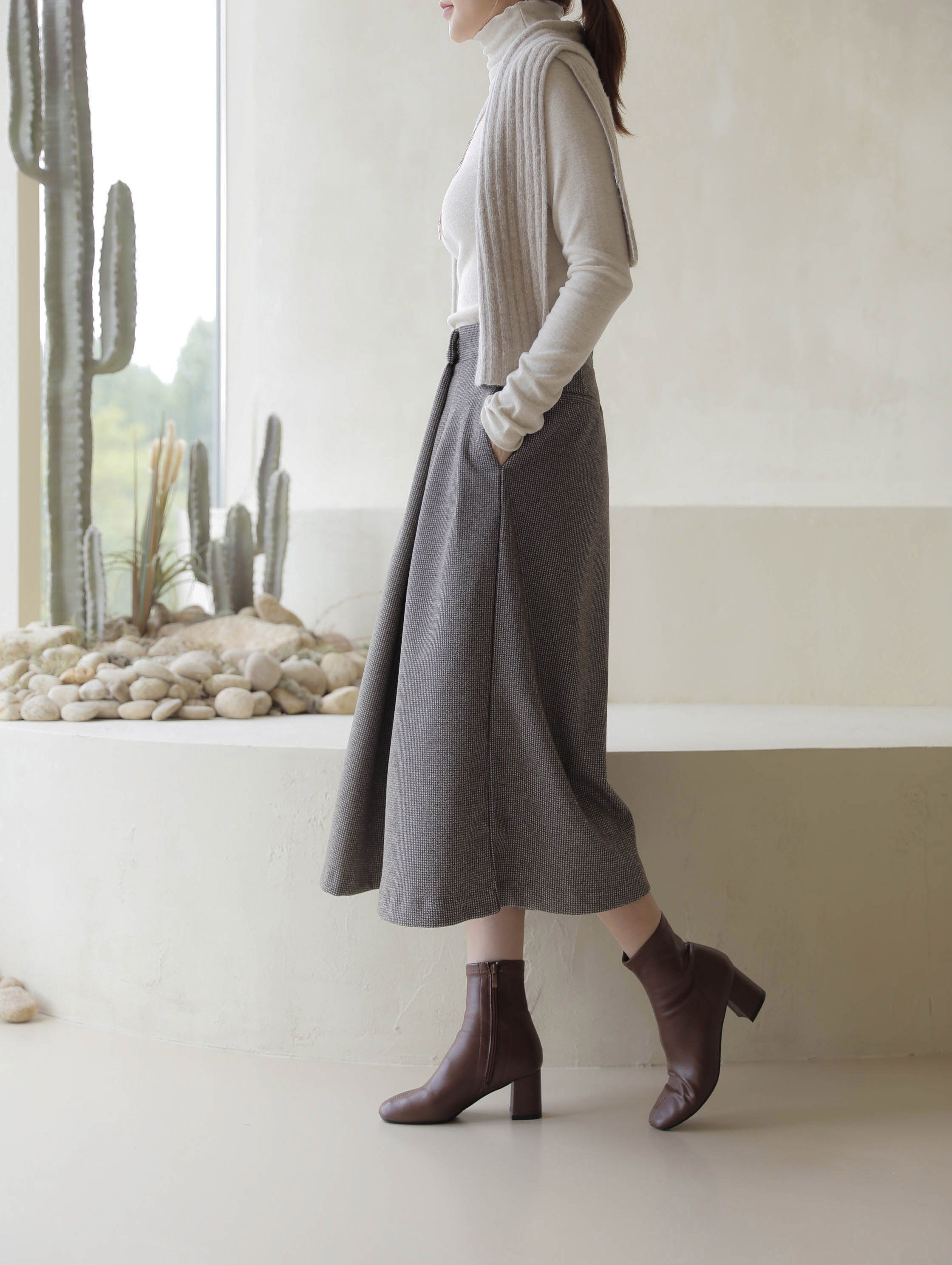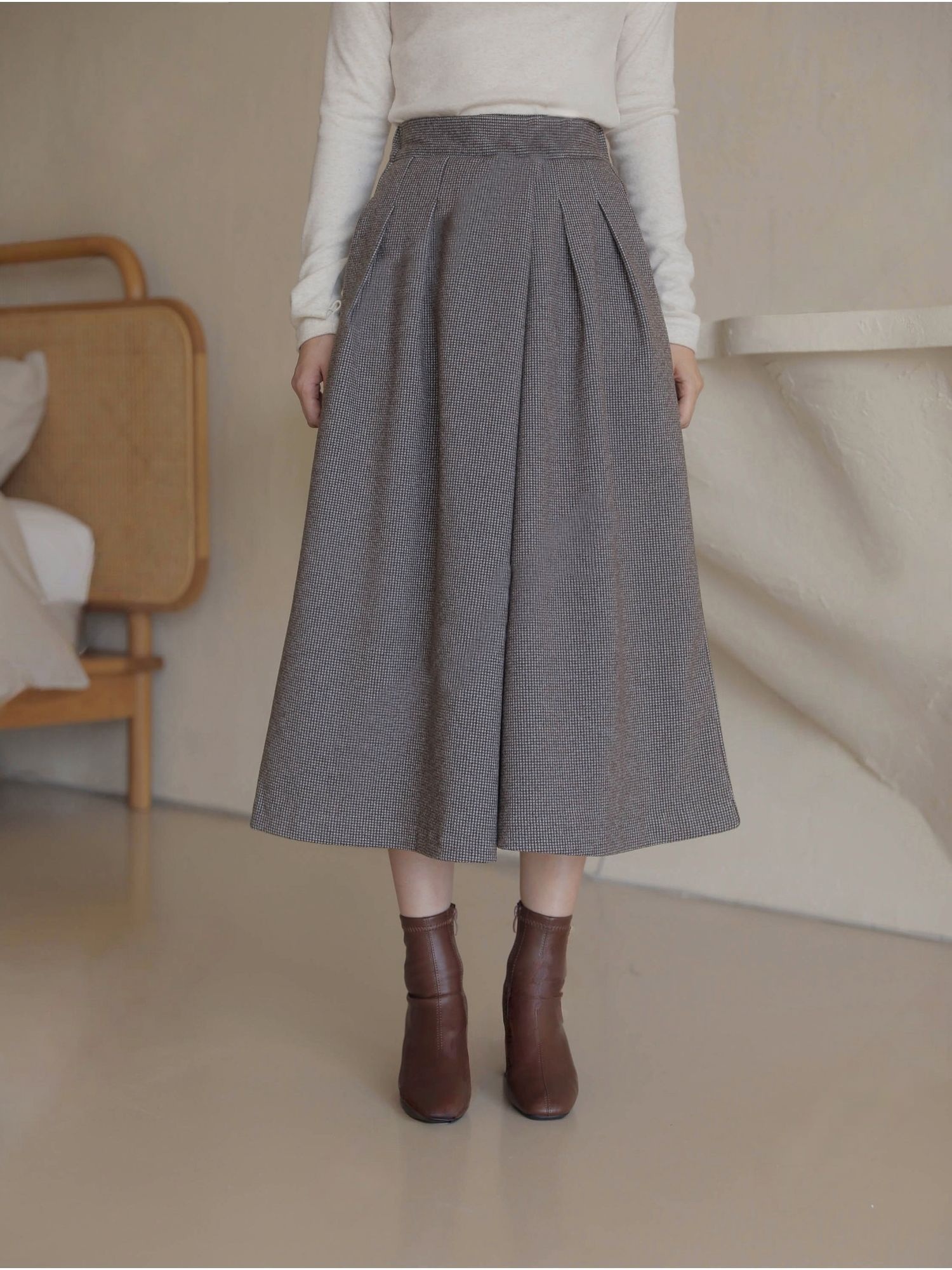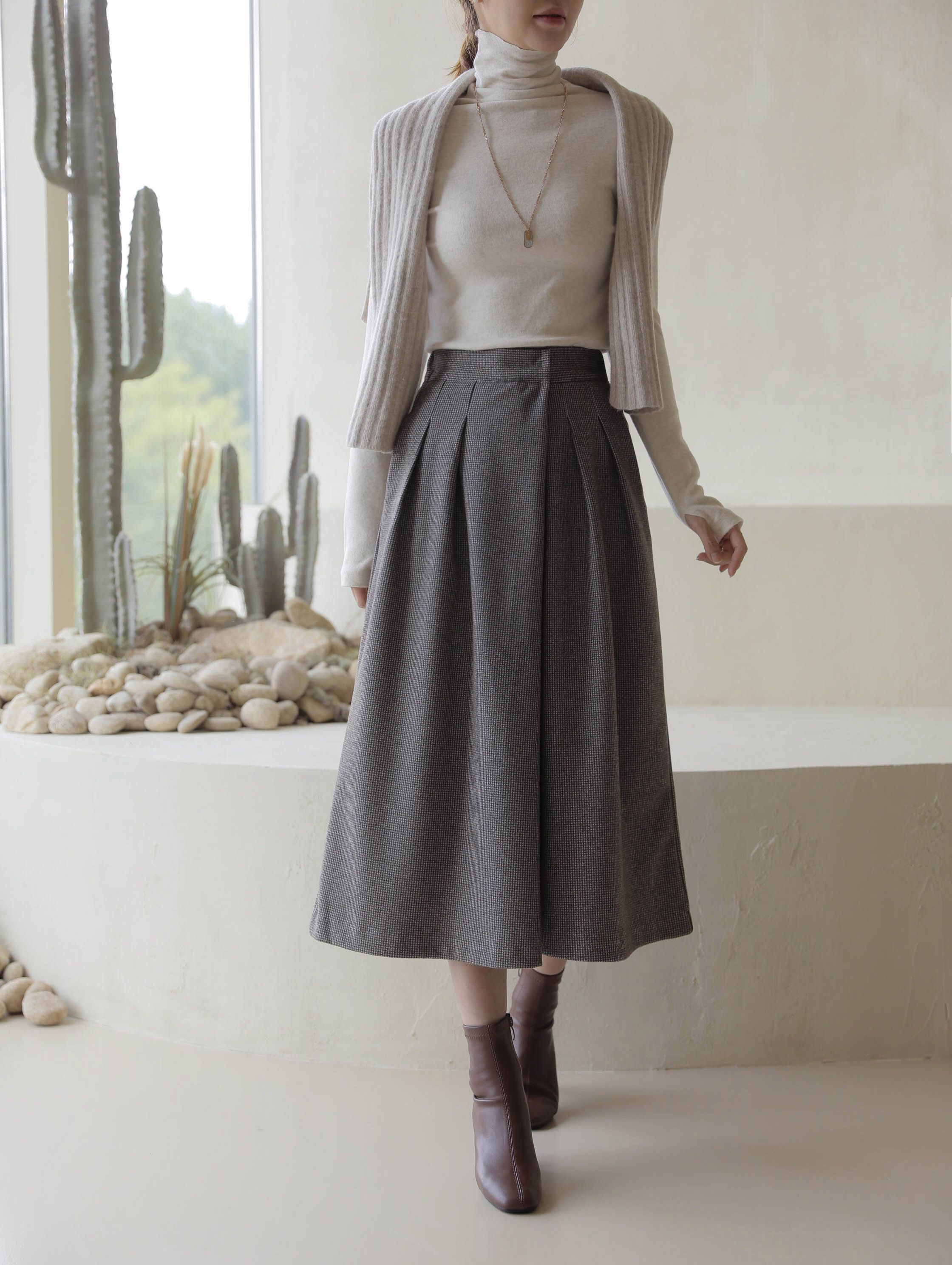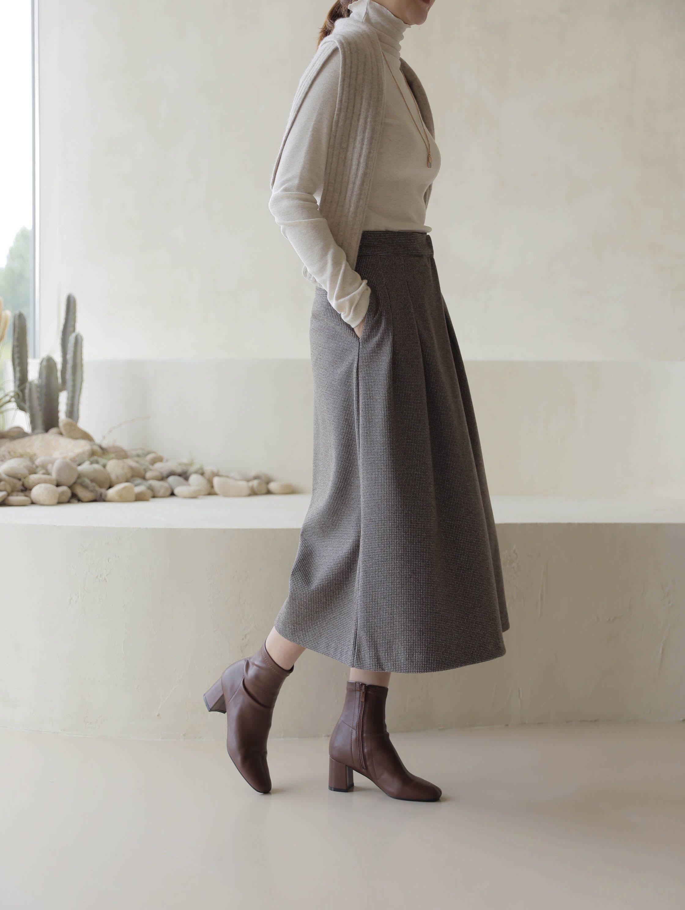 三種尺寸/厚磅毛呢面料/打褶腰/斜邊交叉褲頭/拉鍊隱形勾釦/後腰鬆緊/雙口袋/A字傘狀 - 休閒OL上班族婚禮格紋寬褲格子褲格子寬褲裙七分褲多尺寸SML棕色深灰色